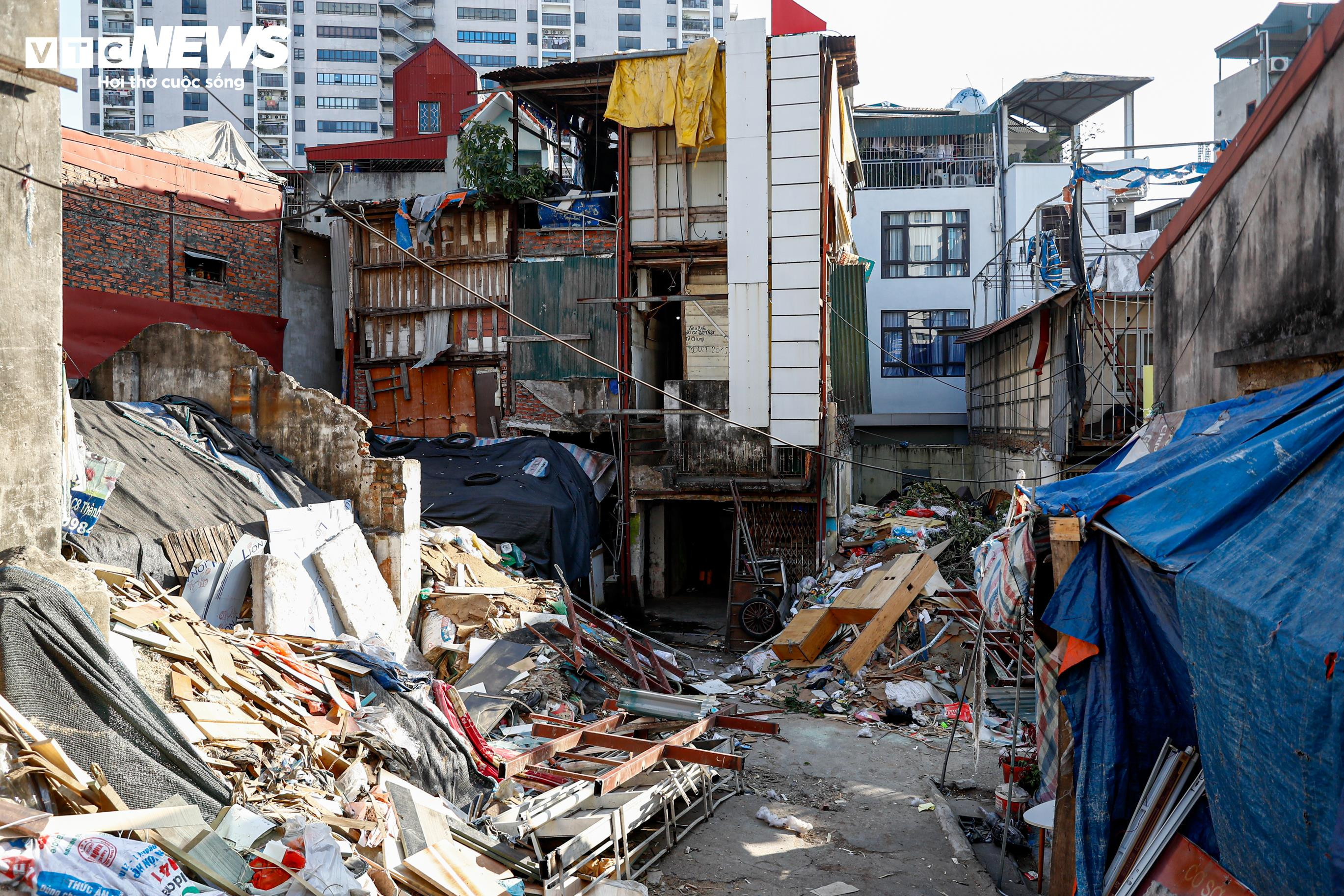 Một phần mặt bằng trên đường Đê La Thành đã được giải phóng, hiện các hộ dân vẫn sử dụng để chứa đồ và kinh doanh.