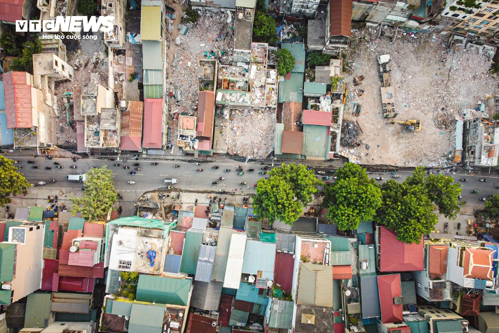 Với những hộ dân đã di dời xong, lực lượng chức năng quây rào tôn và bắt đầu phá dỡ.