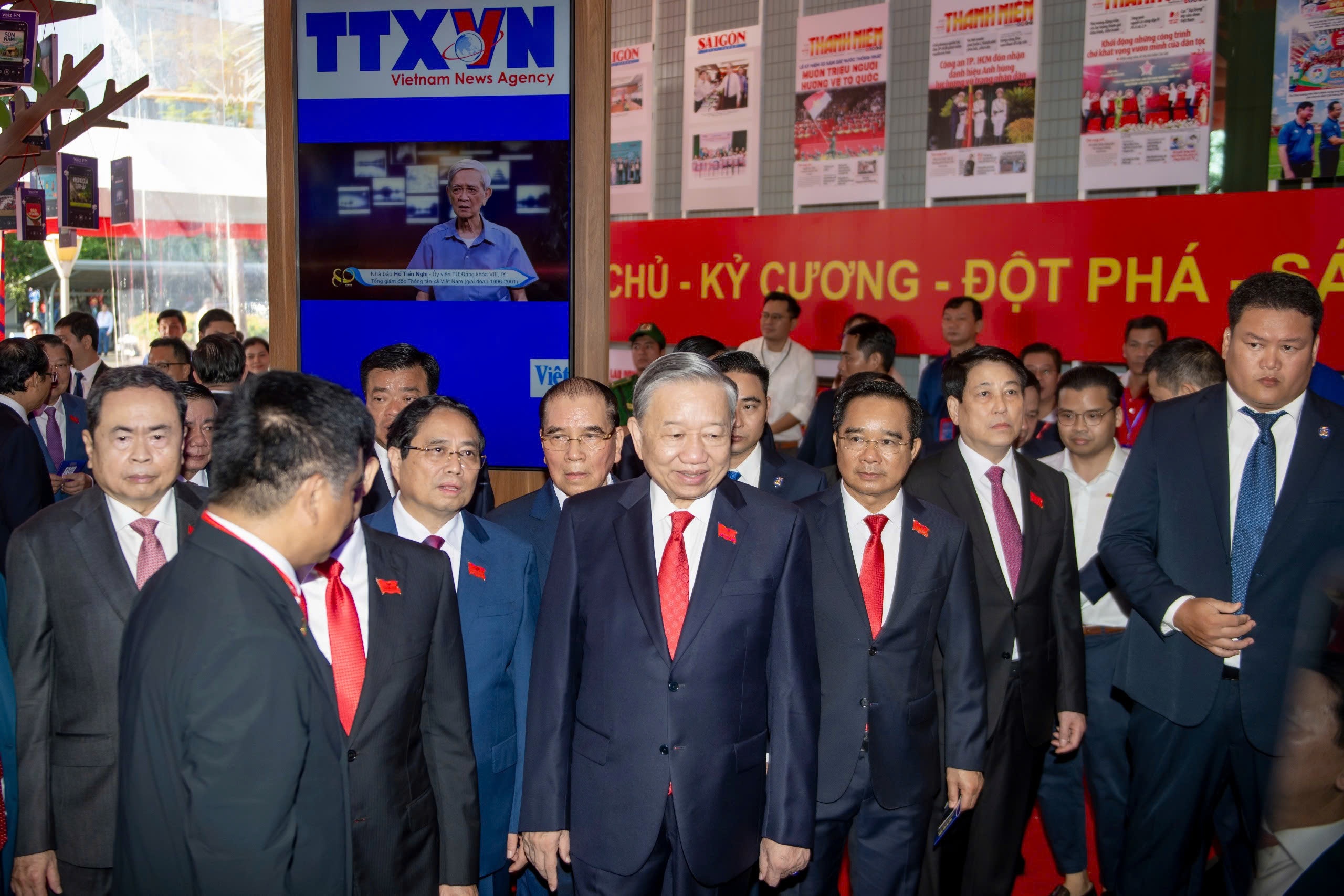 Tổng Bí thư Tô Lâm cùng các lãnh đạo, nguyên lãnh đạo Đảng, Nhà nước đến dự phiên khai mạc Đại hội đại biểu Đảng bộ TP.HCM lần thứ I, nhiệm kì 2025-2030. Ảnh: Duy Hiệu.