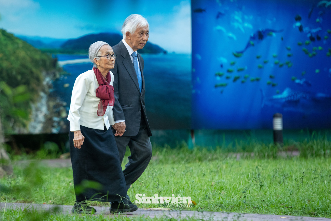 Vợ chồng GS Trần Thanh Vân và GS Lê Kim Ngọc nắm tay, cùng tiến vào buổi lễ.