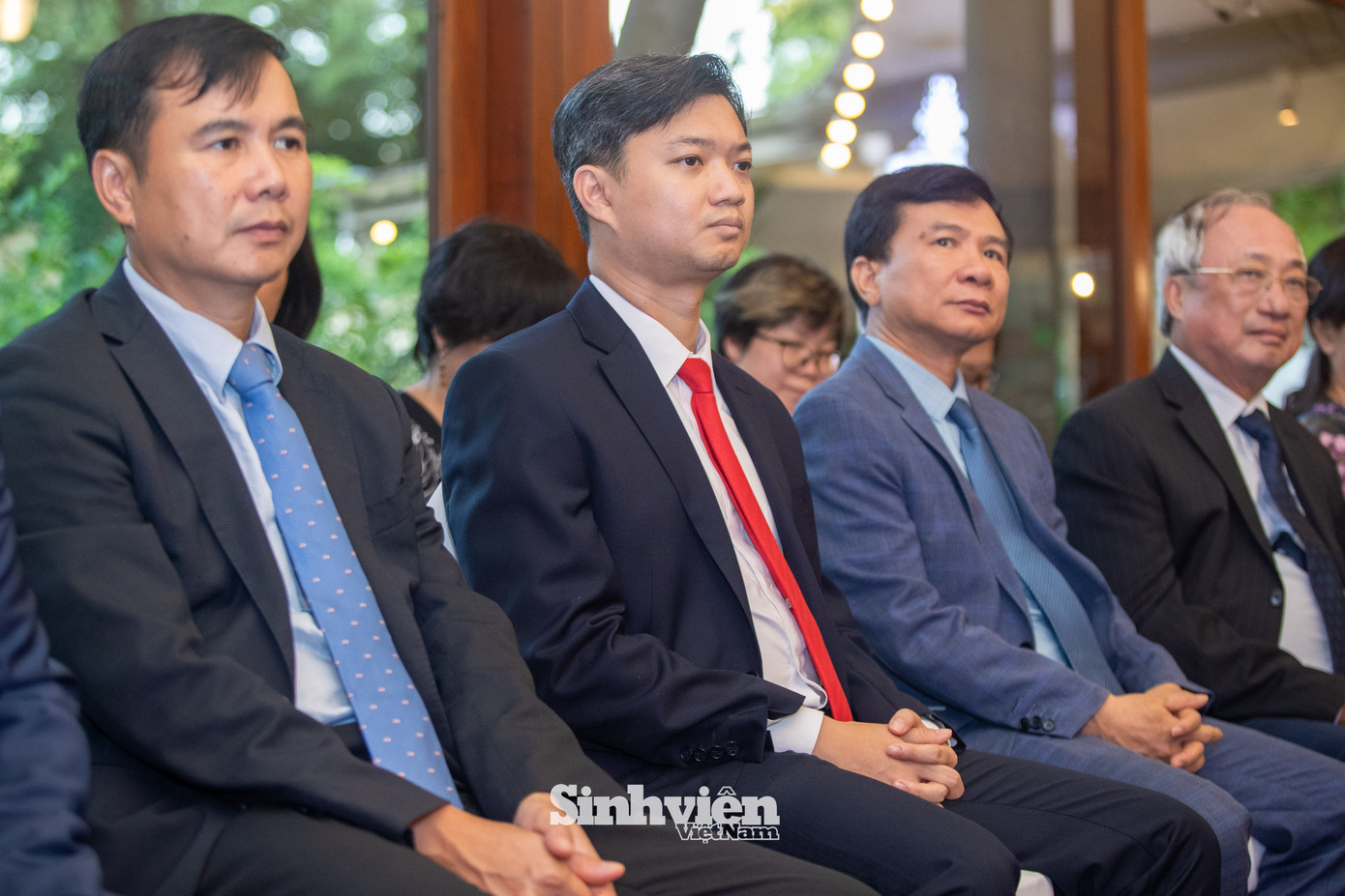 Phó Thủ tướng Nguyễn Chí Dũng; Thứ trưởng Bộ KH&CN Bùi Thế Duy và anh Nguyễn Minh Triết - Bí thư Trung ương Đoàn, Chủ tịch Hội SVVN tặng hoa chúc mừng hai nhà khoa học.