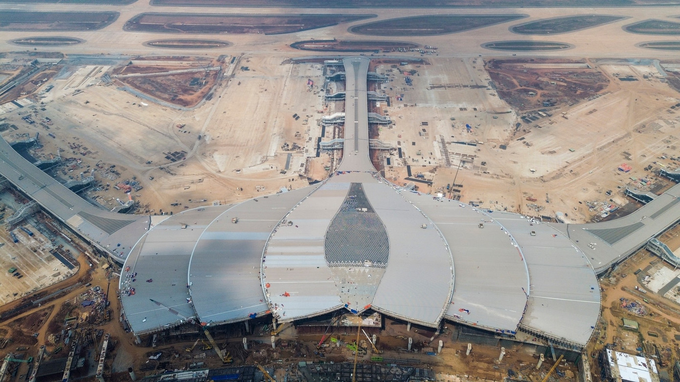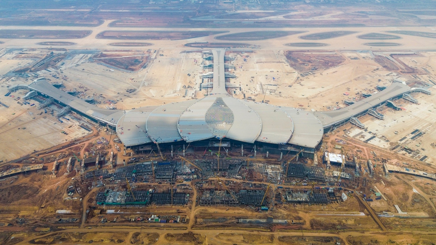 Từ trên cao, nhà ga hành khách Cảng hàng không quốc tế Long Thành đã rõ nét như cánh hoa sen. Đây là công trình được xem là "trái tim" của dự án sân bay Long Thành.