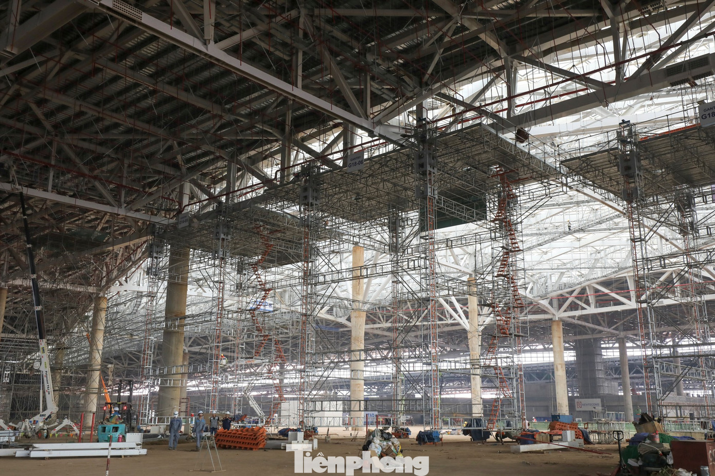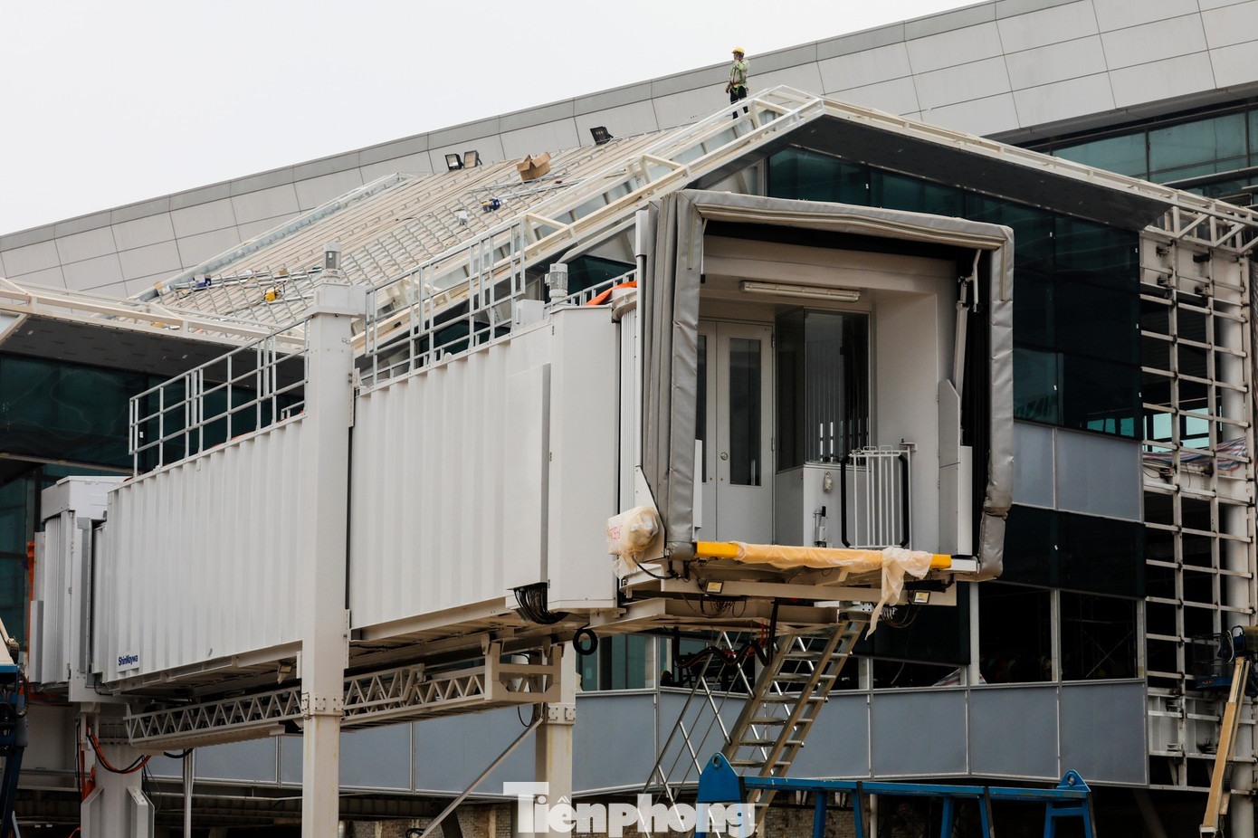 Các đội thi công đang khẩn trương lắp đặt kính để hoàn thiện hạng mục quan trọng này, chuẩn bị cho việc đưa cầu ống lồng vào hoạt động. Theo thiết kế, có 32 cầu ống lồng, bố trí 40 vị trí đỗ gần cho các loại tàu bay Code C, E và F.