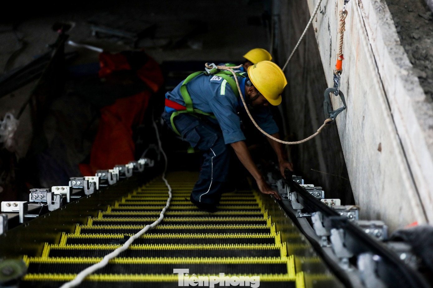 Các hạng mục như thang cuốn, thang máy, cầu thang bộ, đường dẫn hành khách… đang được nhà thầu gấp rút thi công lắp đặt.