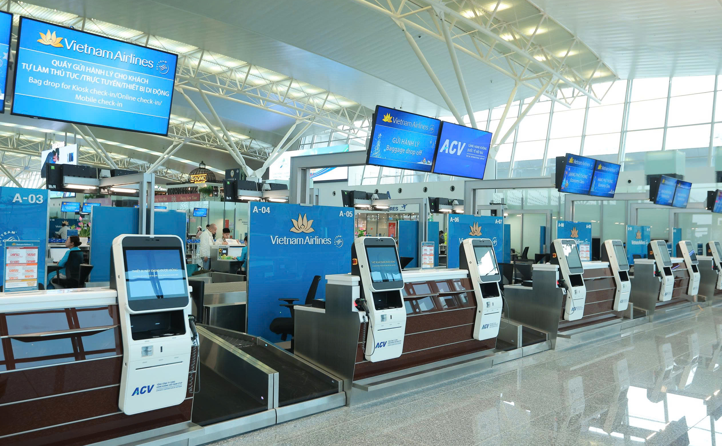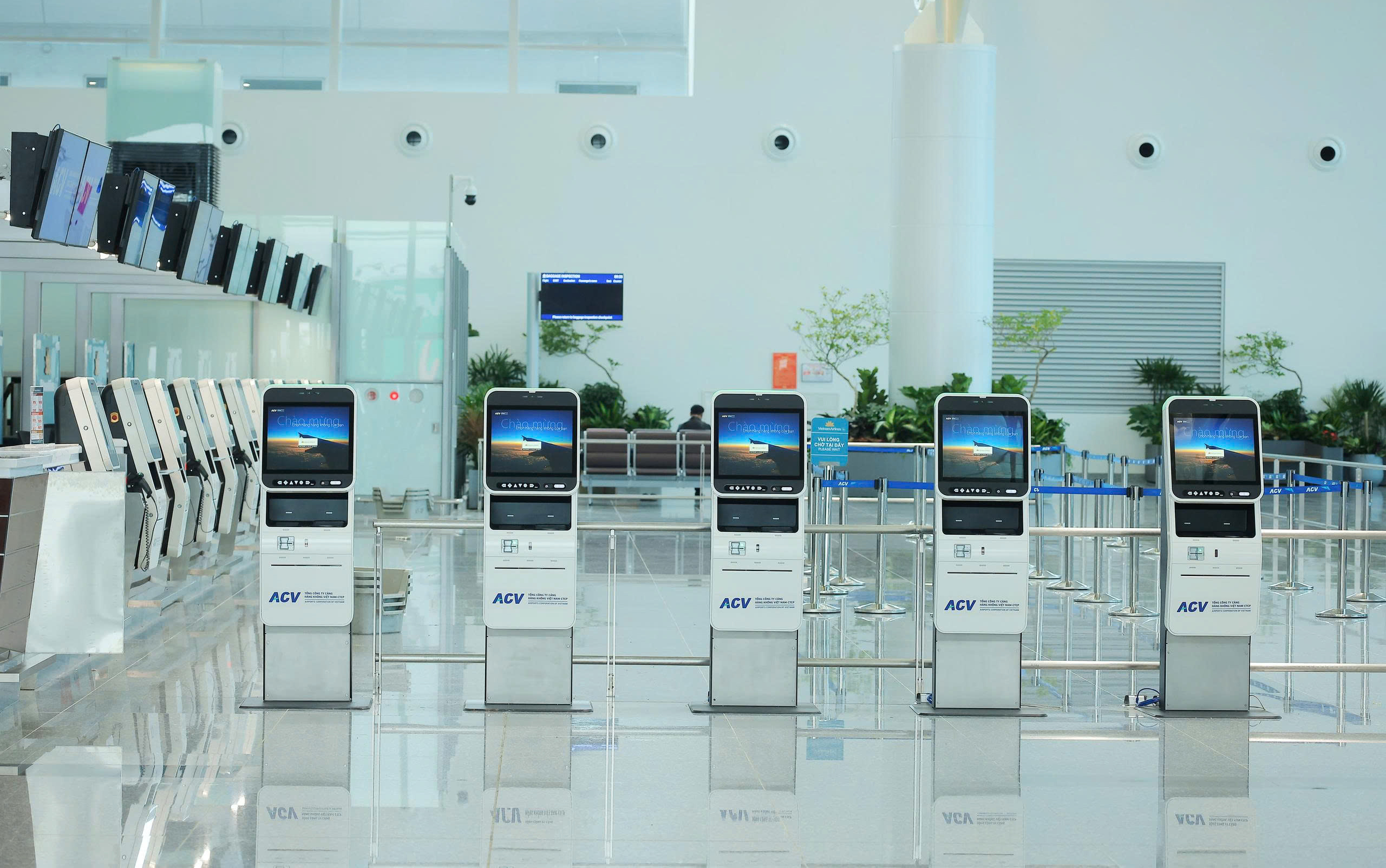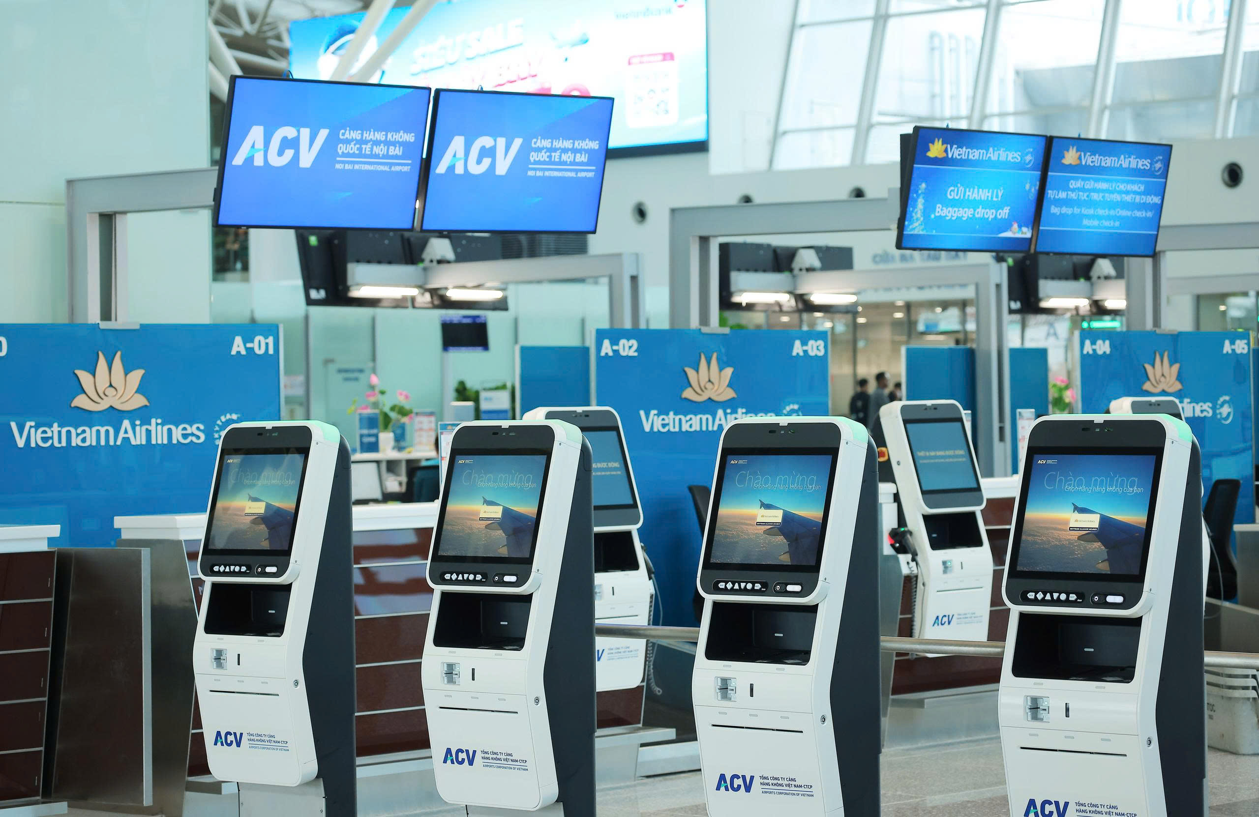 Khu vực mở rộng nhà ga T2 được bố trí 24 kiosk check-in tự động.