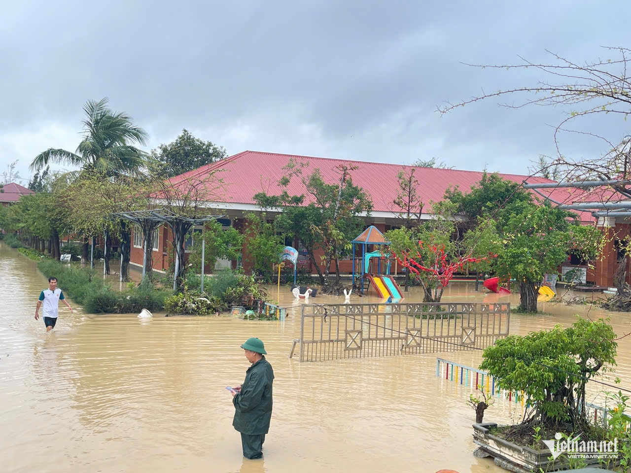 Làng trẻ SOS nước vẫn còn ngập sâu. Ảnh: Trần Hoàn