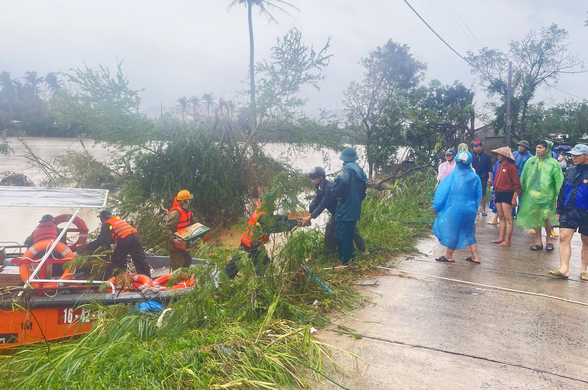 Bộ CHQS tỉnh Đắk Lắk đã dùng xuồng, ca nô vượt dòng nước xiết tiếp cận xã Tuy An Bắc – một trong những địa bàn bị cô lập nặng nề nhất. Ảnh: Dương Tây