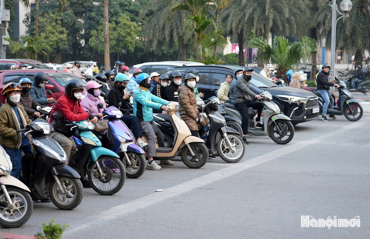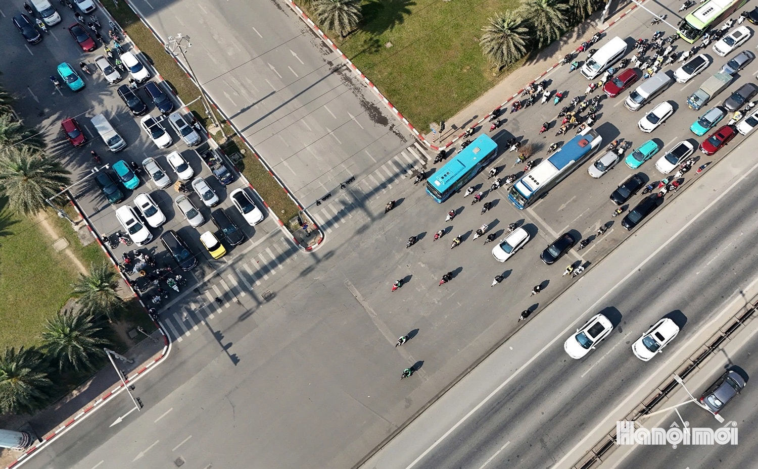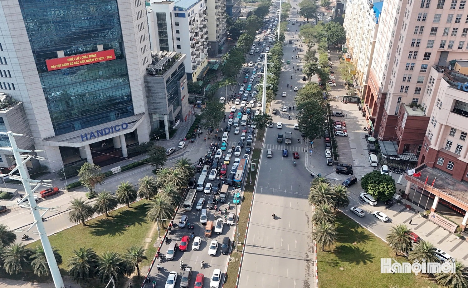 Lượng người và phương tiện giao thông di chuyển qua nút giao Mễ Trì - Dương Đình Nghệ luôn đông đúc.