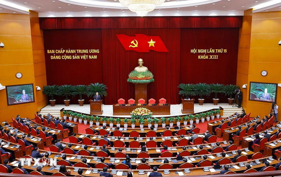 Các đại biểu dự phiên bế mạc Hội nghị lần thứ 15 Ban Chấp hành Trung ương khóa XIII. (Ảnh: Thống Nhất/TTXVN)