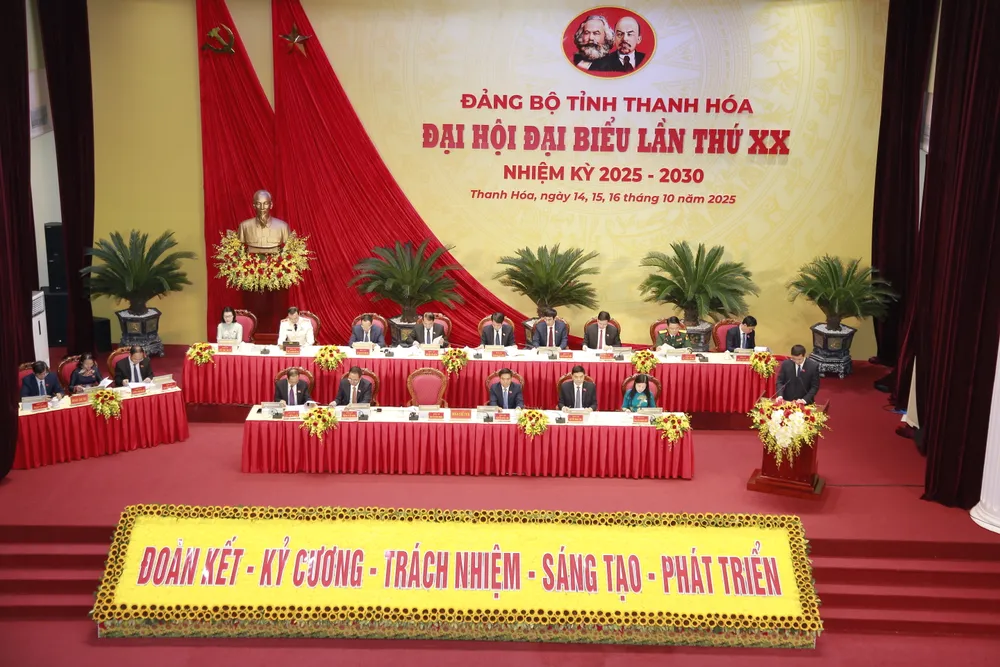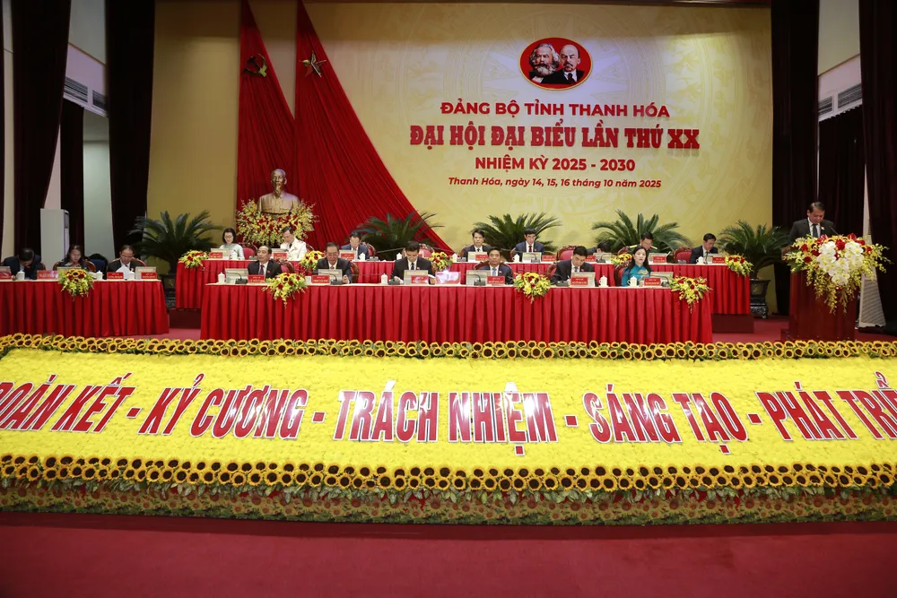 Đại hội đại biểu Đảng bộ tỉnh Thanh Hóa diễn ra từ ngày 14 đến 16-10 tại Trung tâm hội nghị 25B, phường Hạc Thành, tỉnh Thanh Hóa.