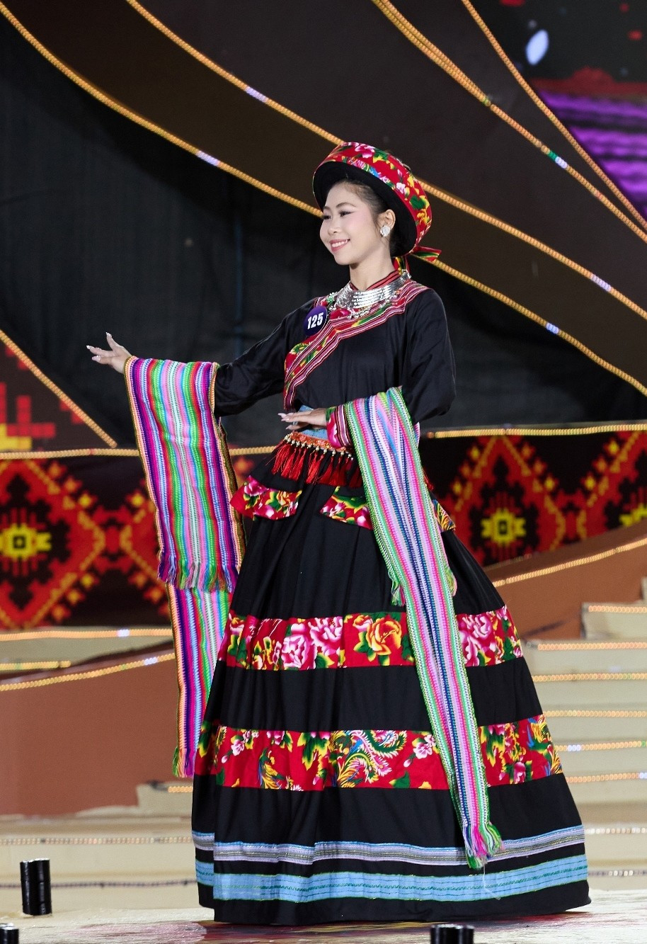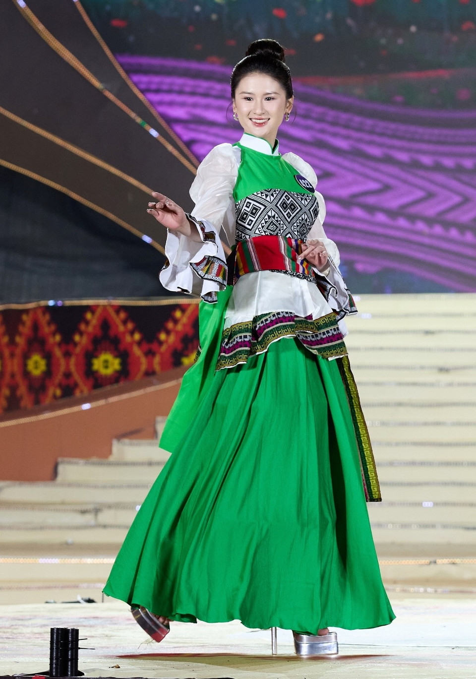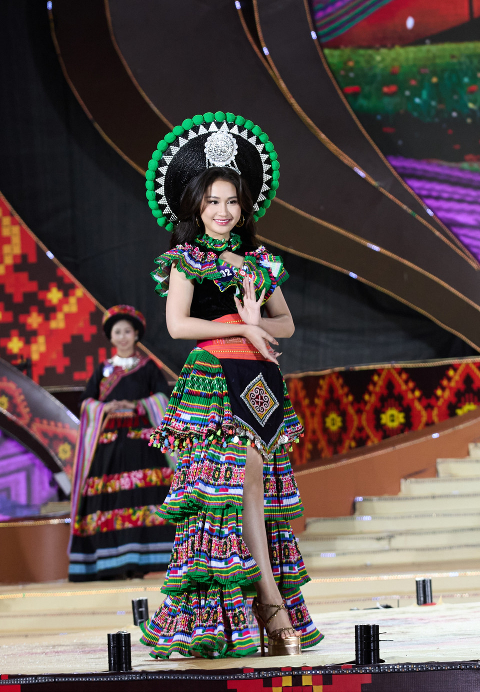 Những sắc màu dân tộc trên sân khấu đêm chung kết cuộc thi (Ảnh: CTV/Vietnam+)