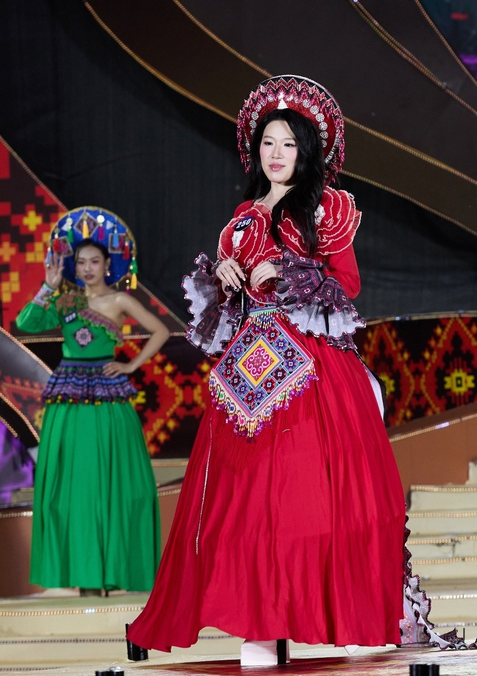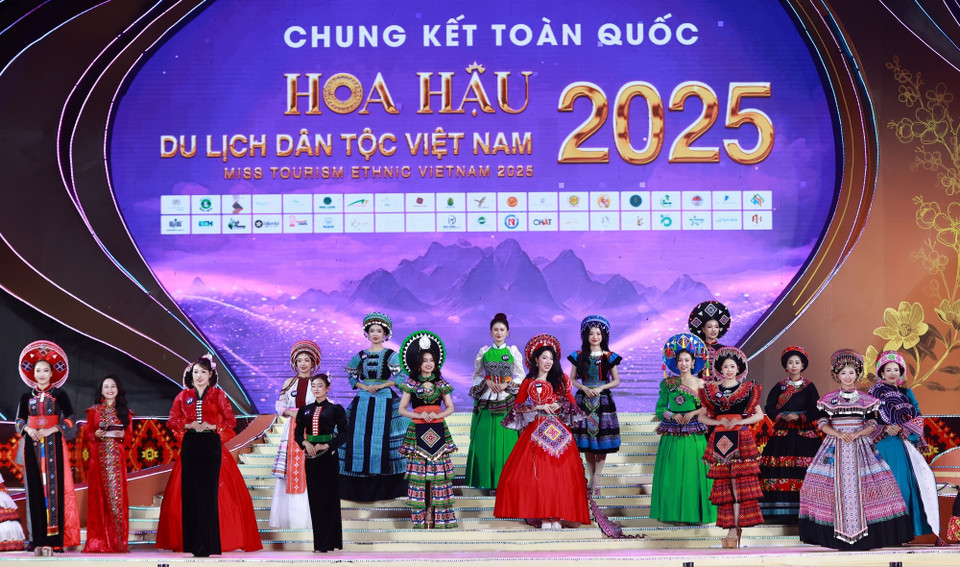 Phần thi trình diễn trang phục dạ hội sắc màu dân tộc là một trong những điểm nhấn giàu cảm xúc tại vòng chung kết Hoa hậu Du lịch Dân tộc Việt Nam năm 2025. (Ảnh: CTV/Vietnam+)