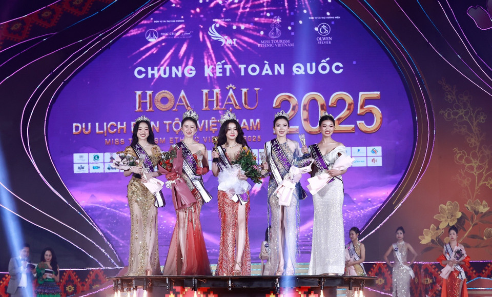 Ban tổ chức đã trao vương miện Hoa hậu Du lịch Dân tộc Việt Nam 2025 cho thí sinh Trần Minh Phương (SBD 402, sinh năm 2005), đến từ Hà Nội. Cô cũng giành giải phụ Người đẹp có gương mặt đẹp nhất. (Ảnh: CTV/Vietnam+)