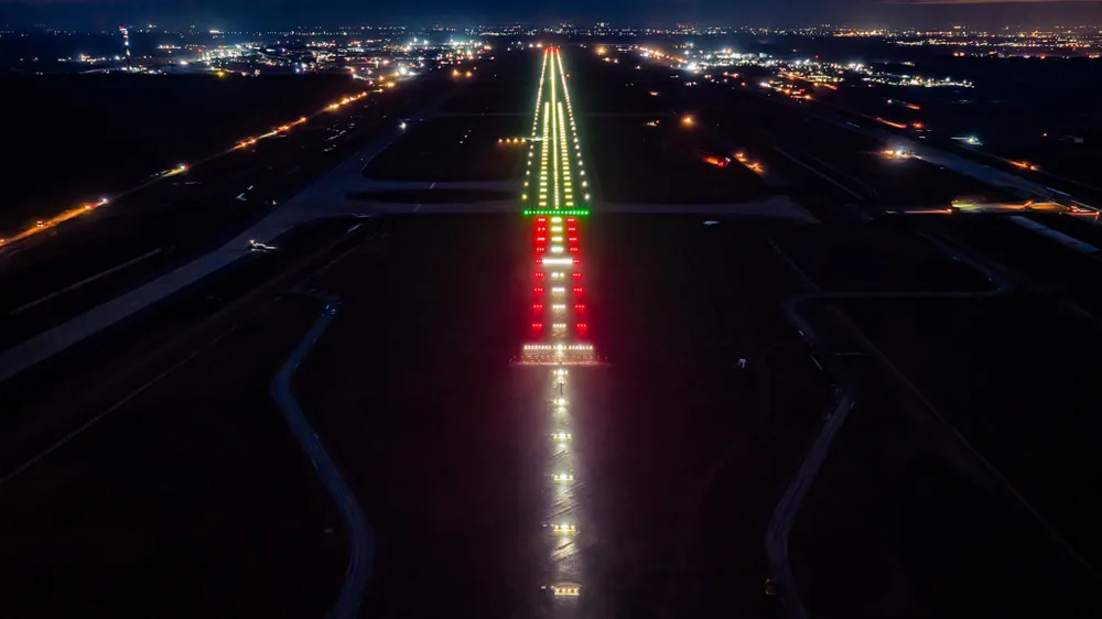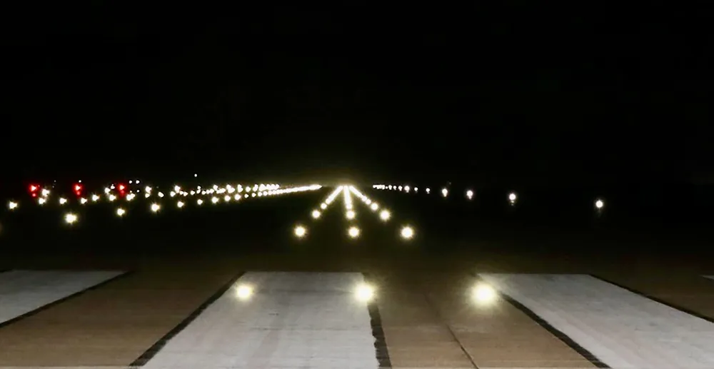 Hệ thống đèn tín hiệu trên đường băng số 1 của sân bay Long Thành được bật sáng.
