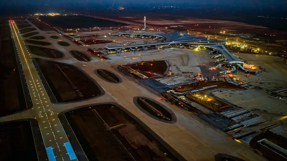 Sân bay Long Thành rộng khoảng 5.000 ha, giai đoạn một rộng 1.810 ha, khởi công ngày đầu năm 2021, công suất thiết kế 25 triệu hành khách và 1,2 triệu tấn hàng hóa mỗi năm. Theo dự kiến ngày 19-12, sân bay Long Thành sẽ có chuyến bay kỹ thuật đầu tiên và khai thác thương mại giữa năm 2026.