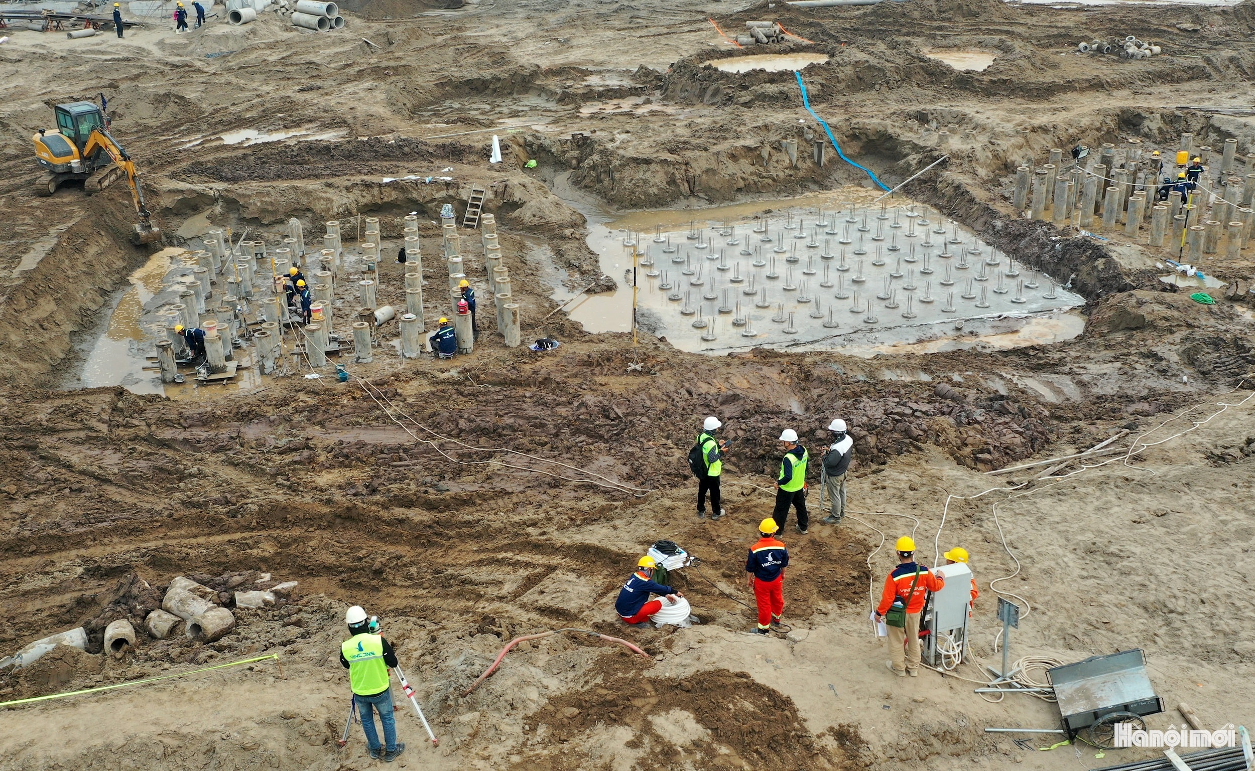 Những cụm móng cùng hệ thống cọc bê tông đang dần hiện rõ, phác họa hình hài ban đầu của công trình.