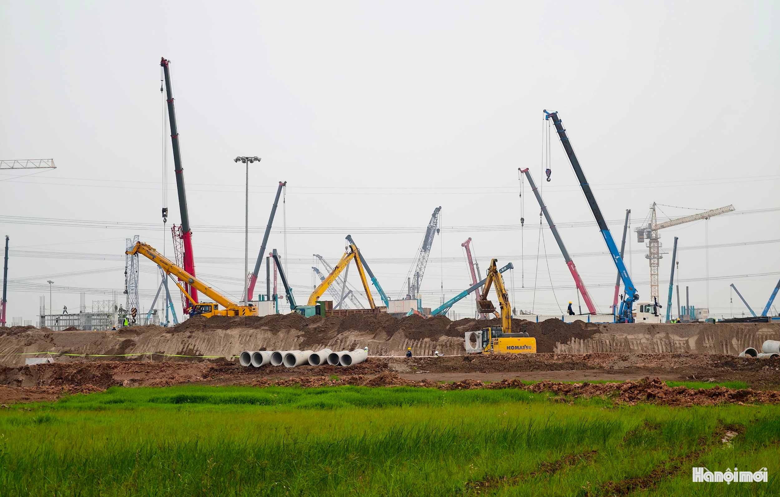 Trên đại công trường trải rộng hàng chục hecta, máy xúc, máy ủi vận hành hết công suất, đào đắp và san gạt mặt bằng, từng bước định hình diện mạo dự án.