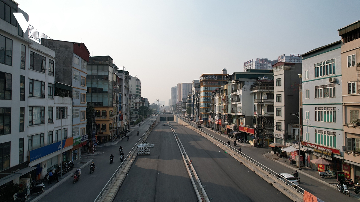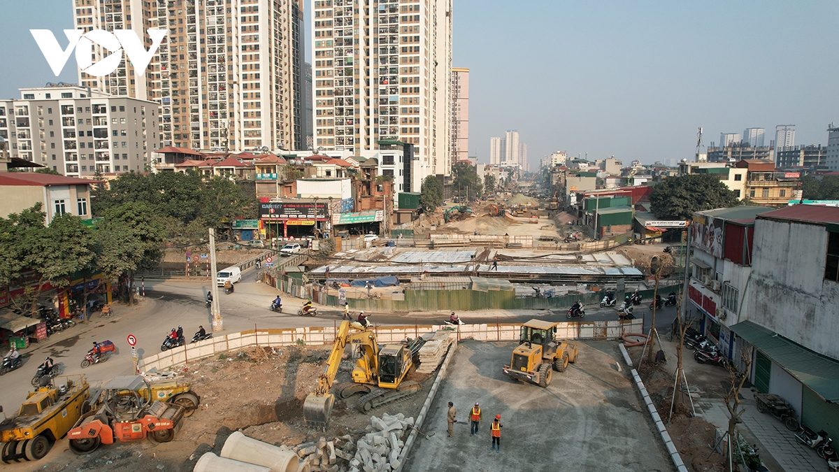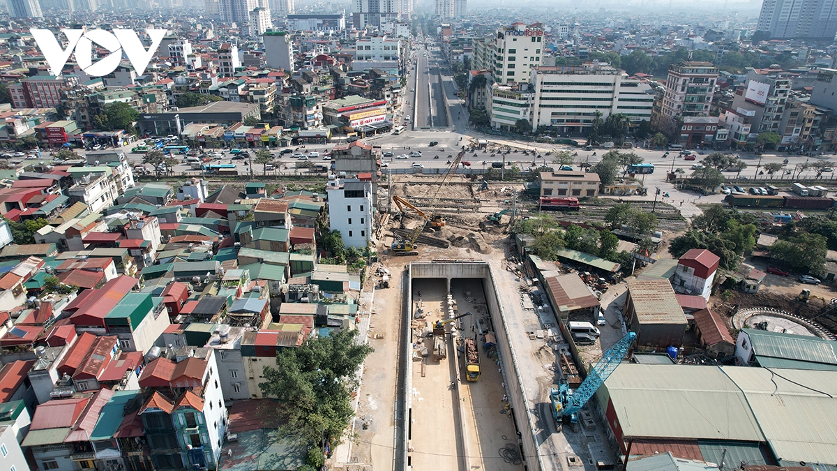 Nhà thầu huy động tối đa nhân lực, thiết bị thi công các hạng mục cuối, hướng tới mốc thông xe kỹ thuật ngày 10/2. Hiện đoạn hầm kín đi ngầm dưới tuyến đường sắt đang đang được thi công.