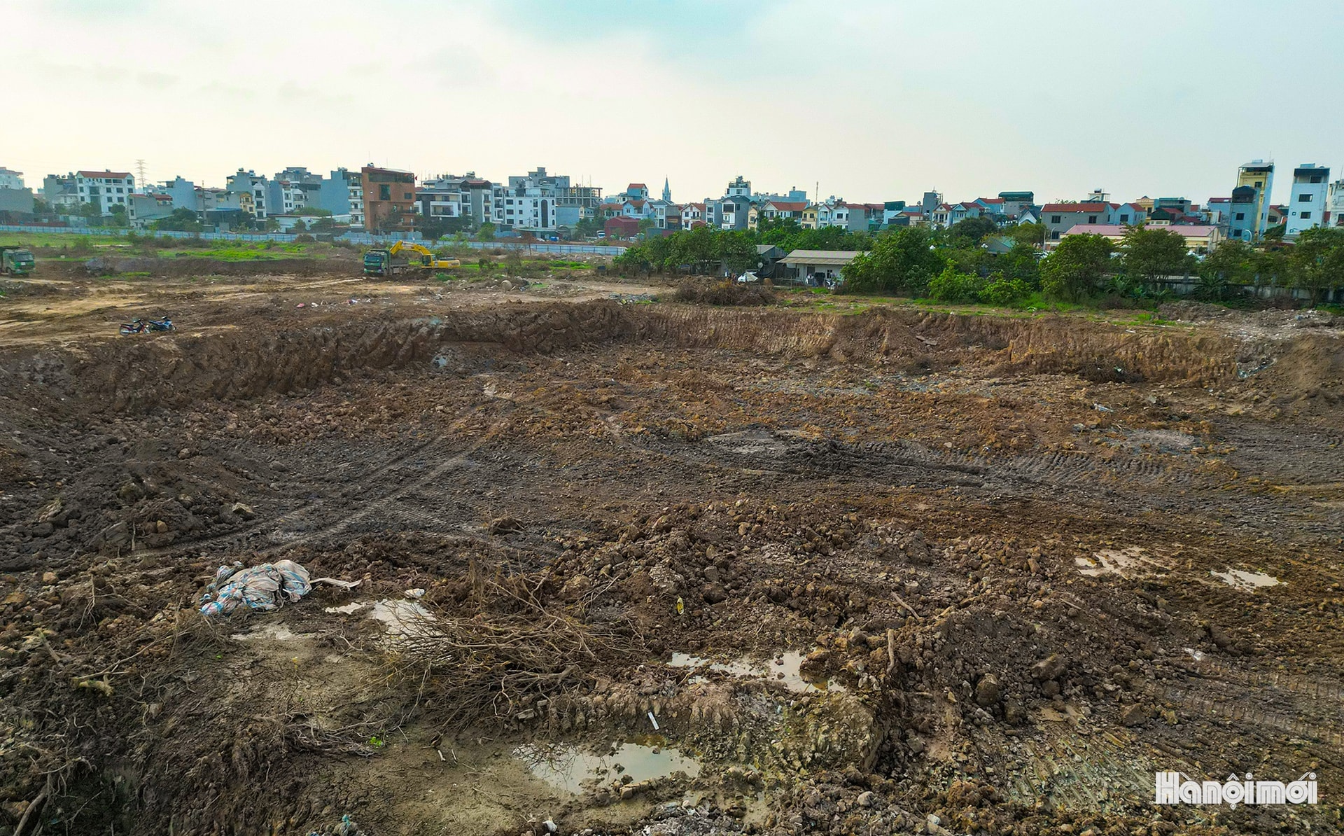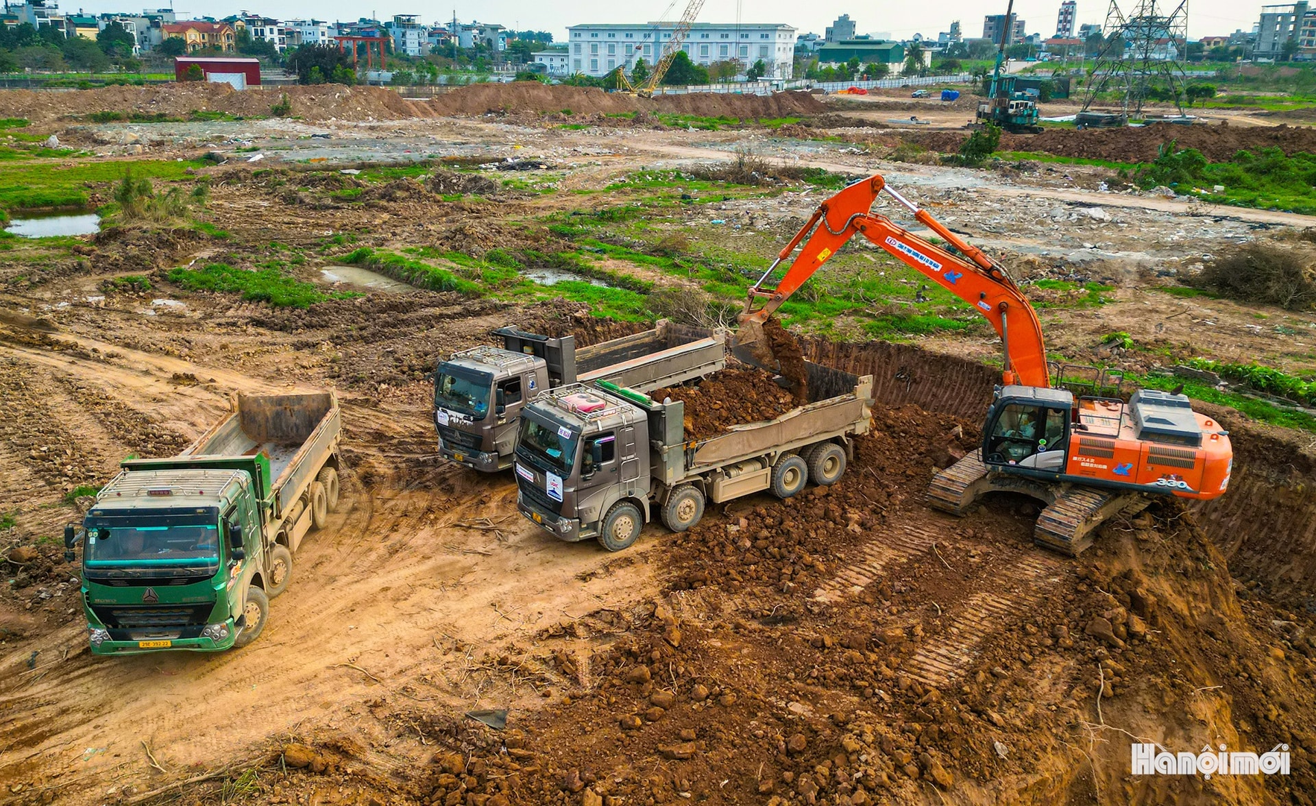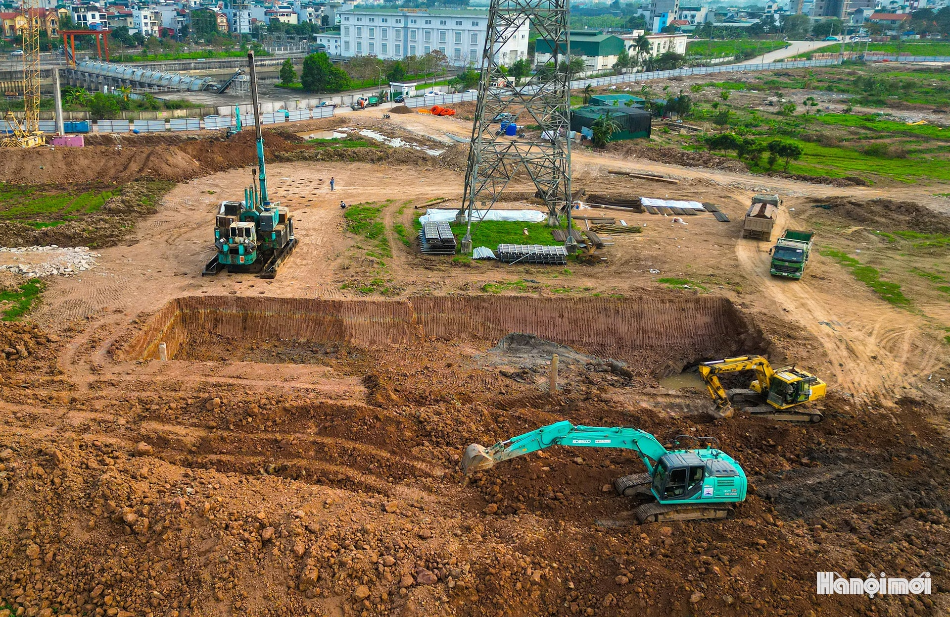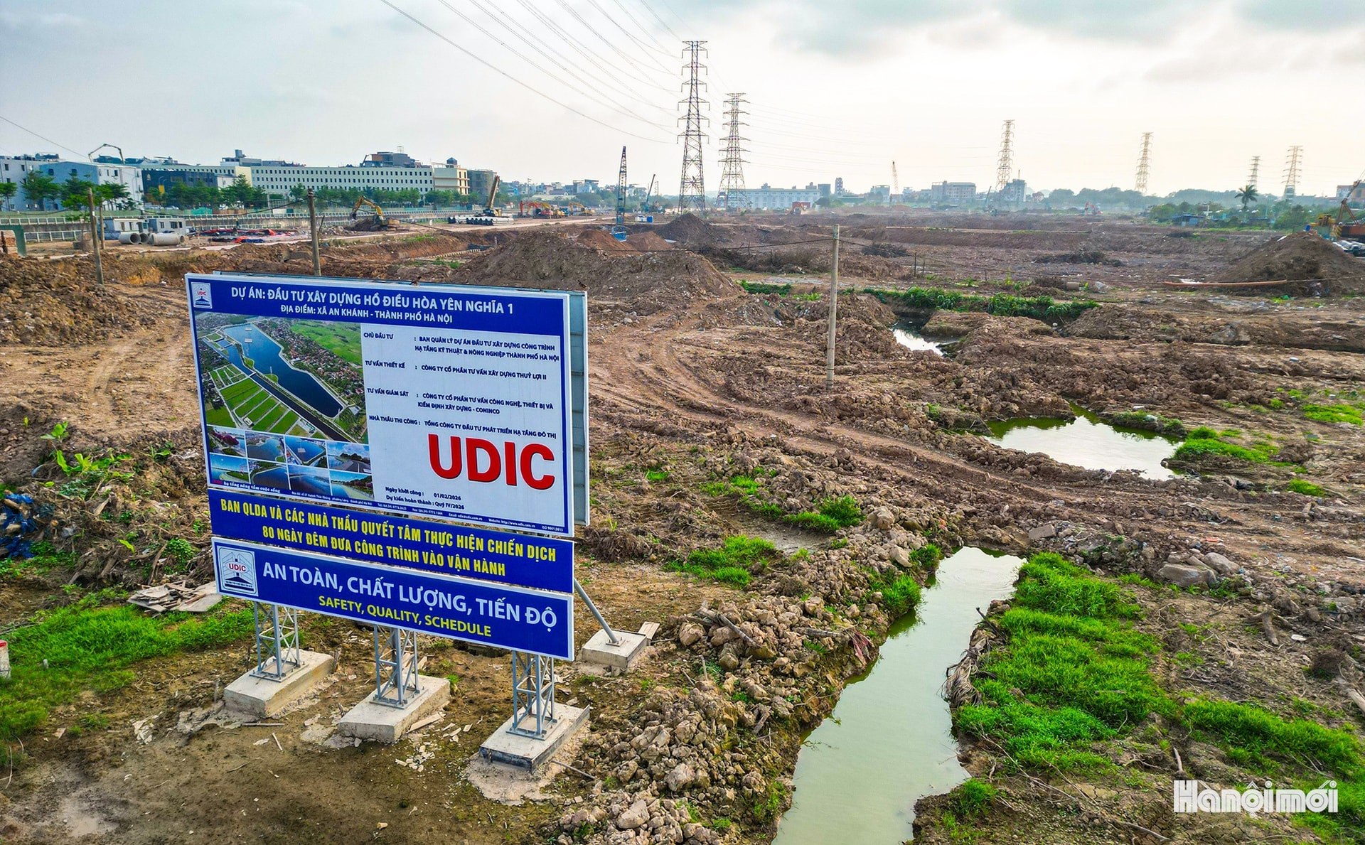 Toàn cảnh công trường thi công hồ điều hòa Yên Nghĩa 1 (xã An Khánh).