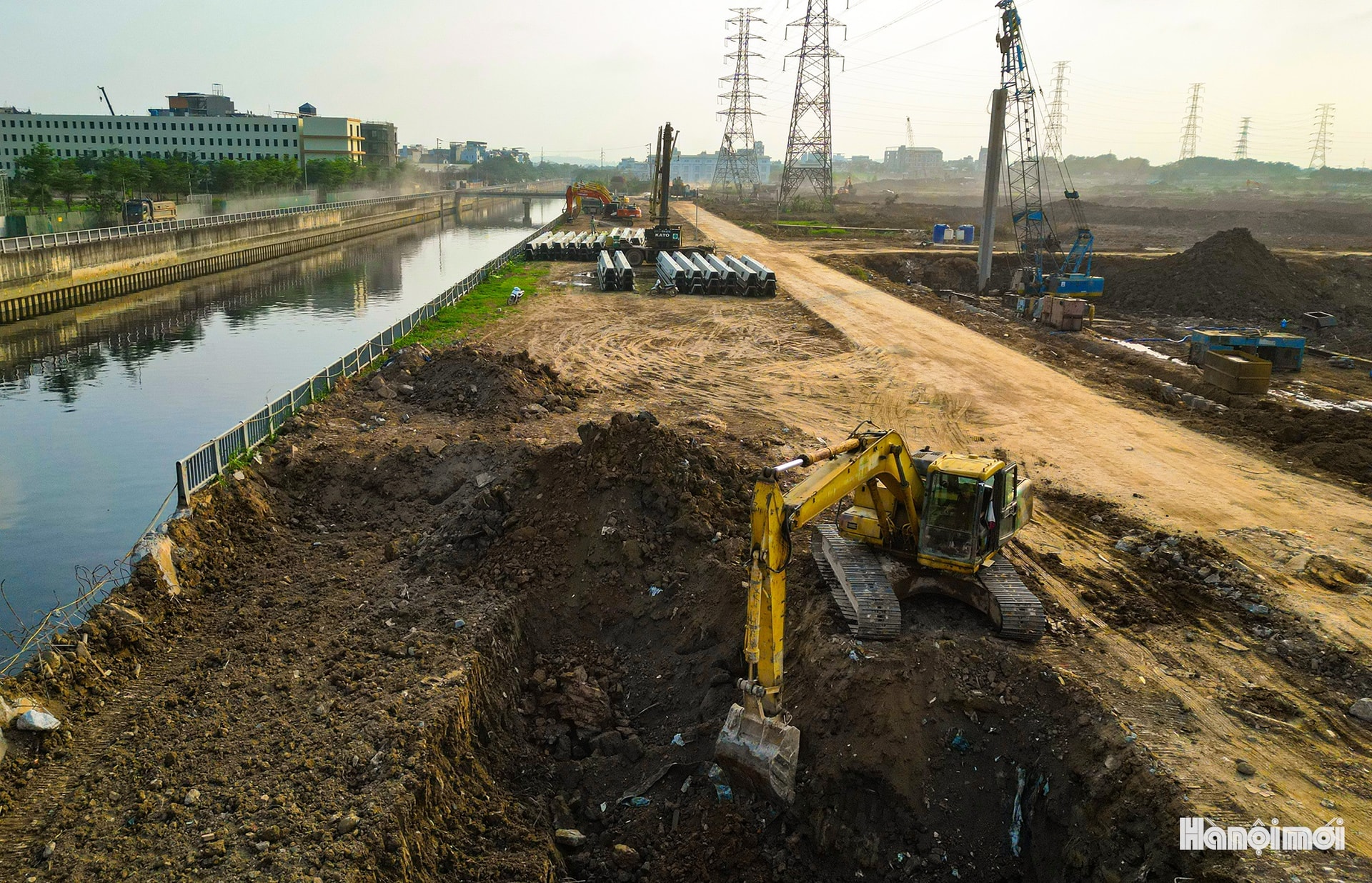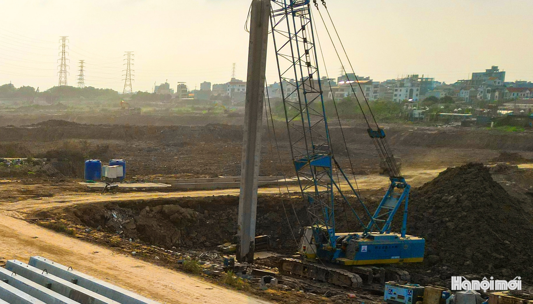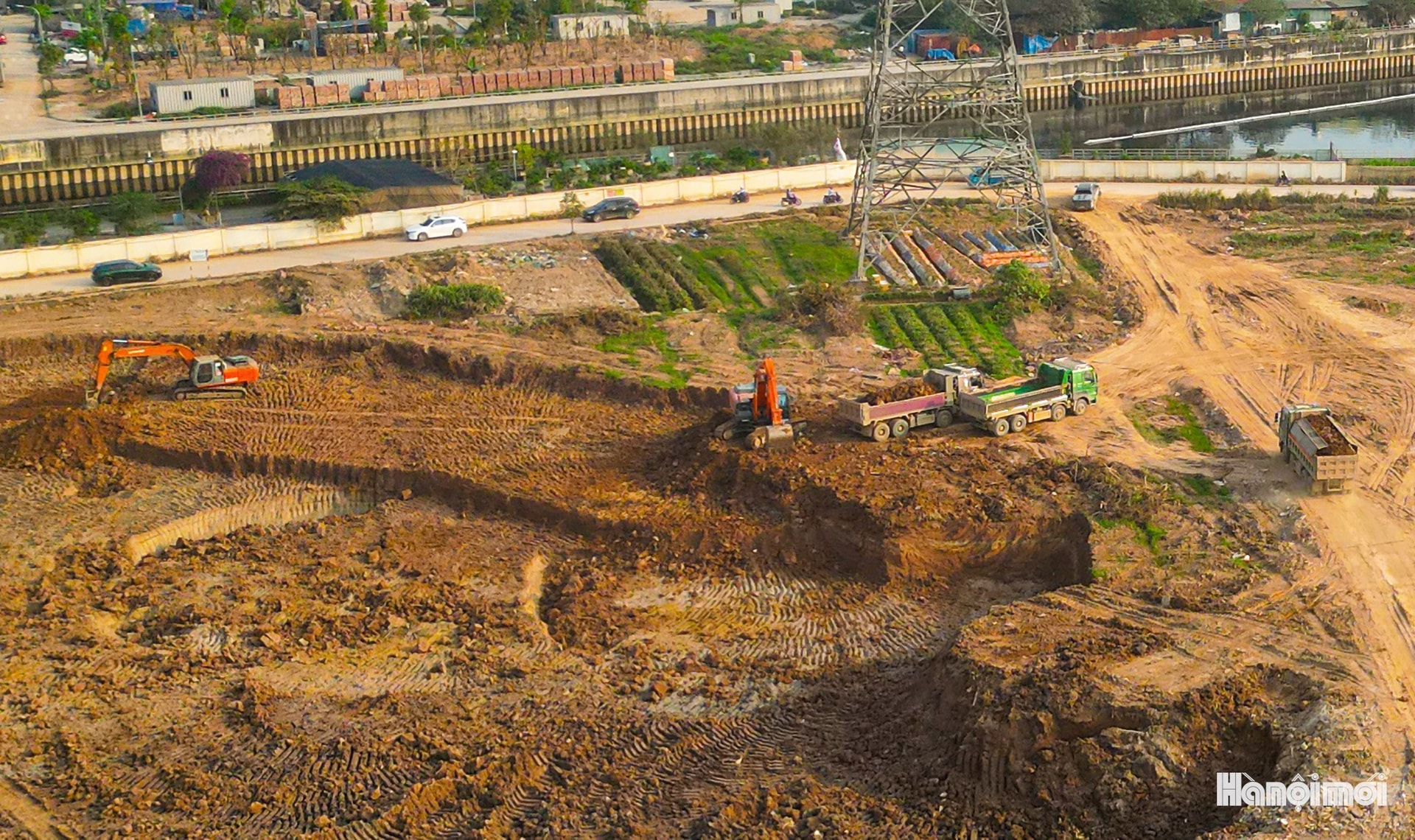 Toàn cảnh công trường thi công hồ điều hòa Yên Nghĩa 1 (xã An Khánh).