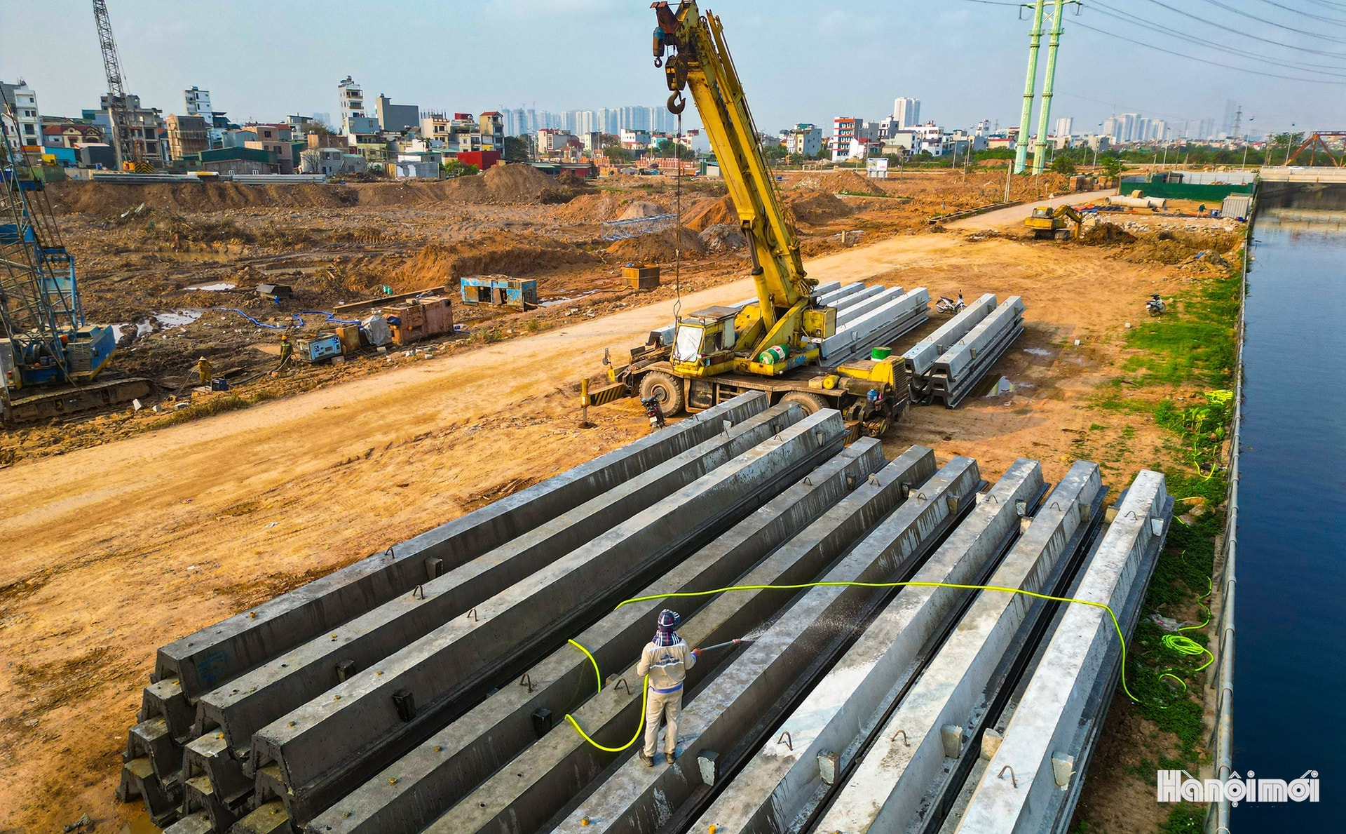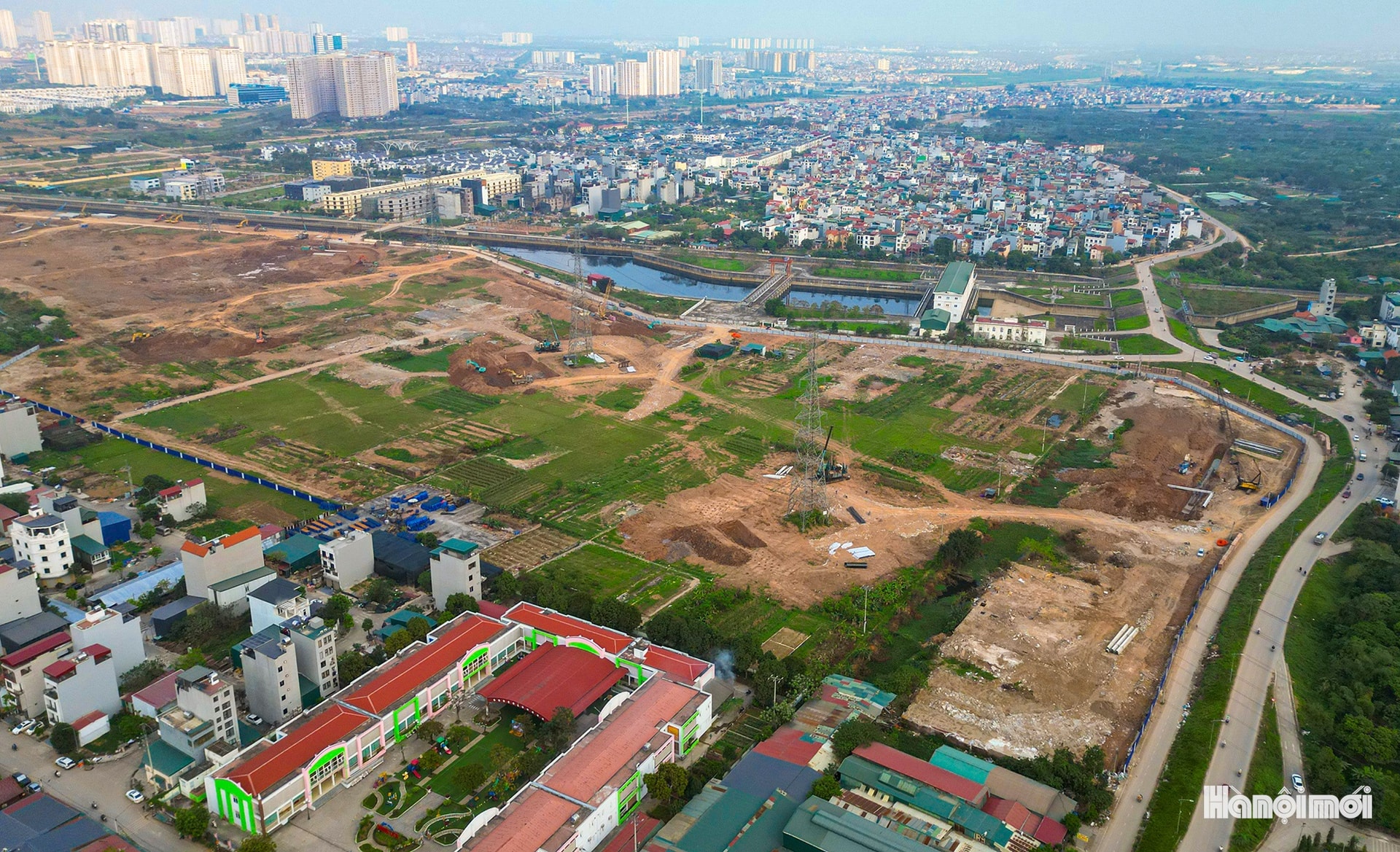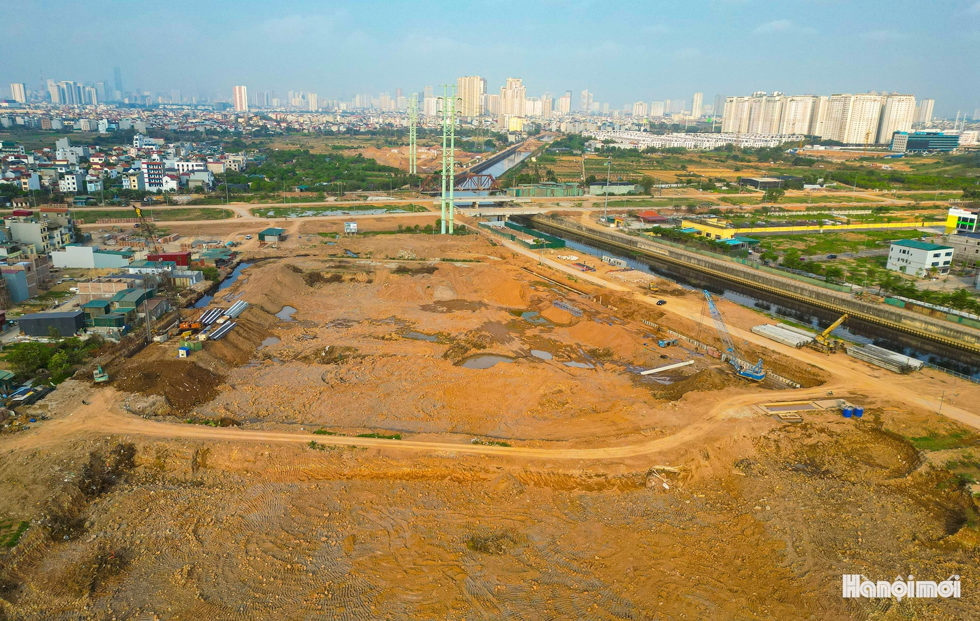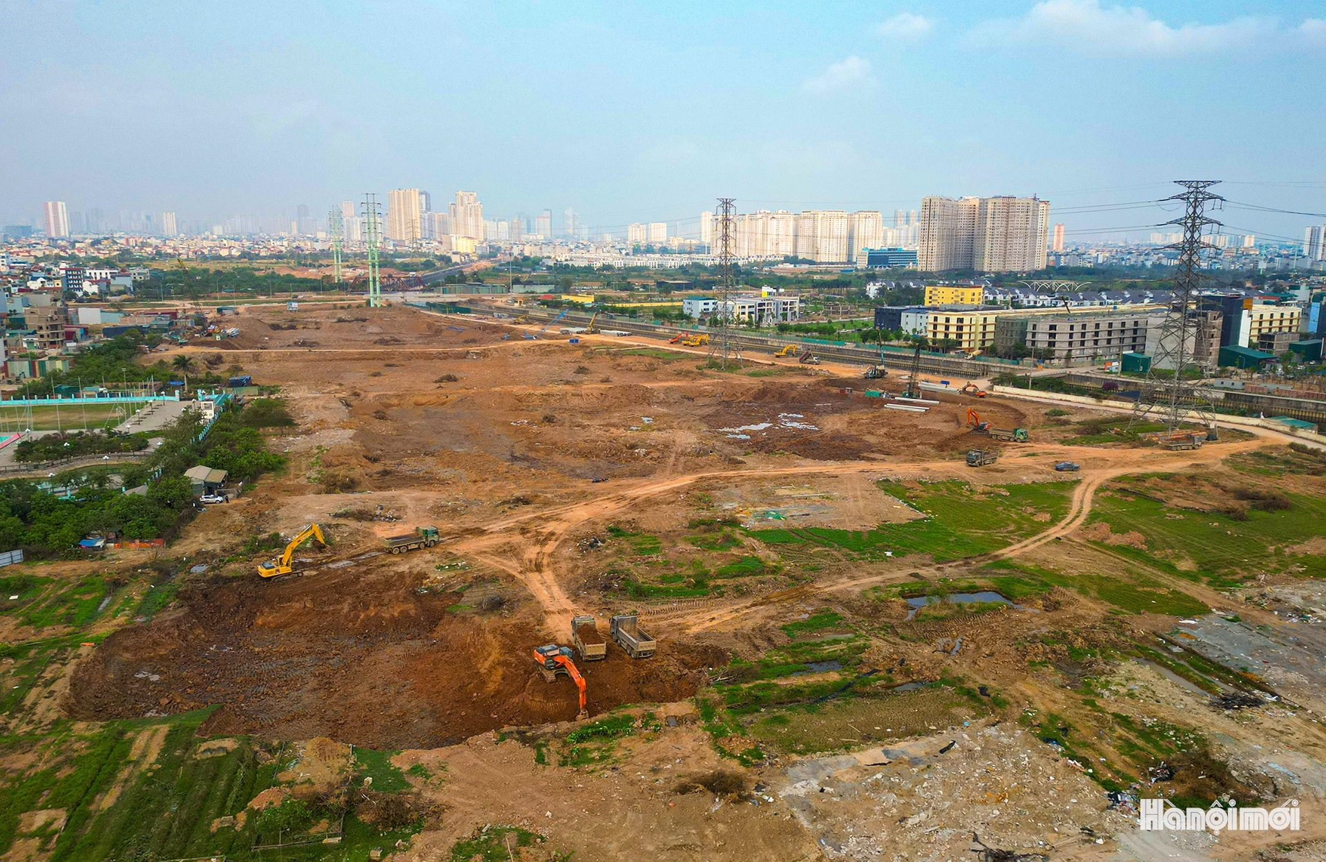 Toàn cảnh công trường thi công hồ điều hòa Yên Nghĩa 1 (xã An Khánh).