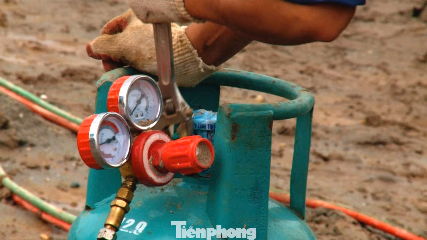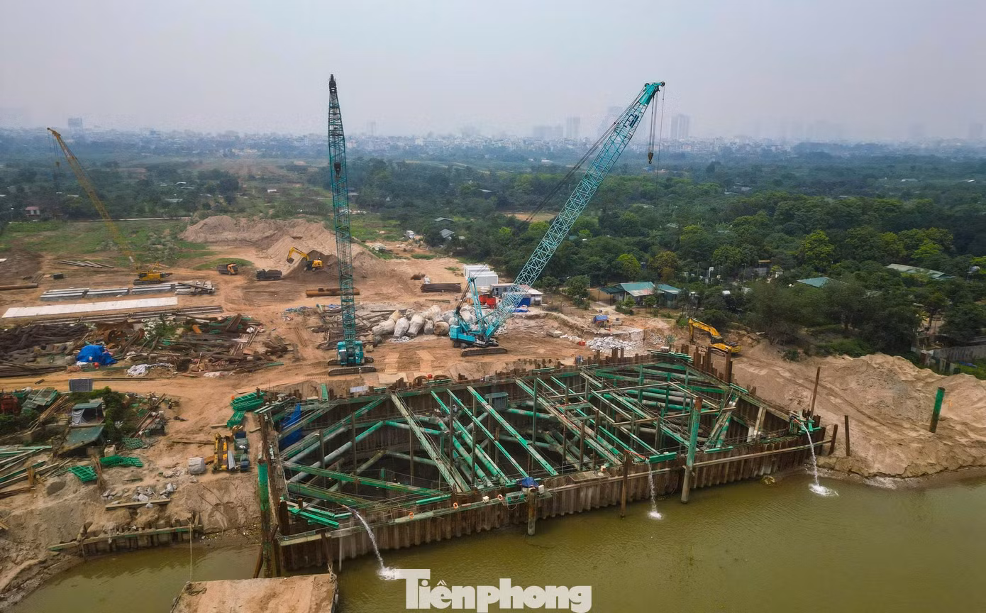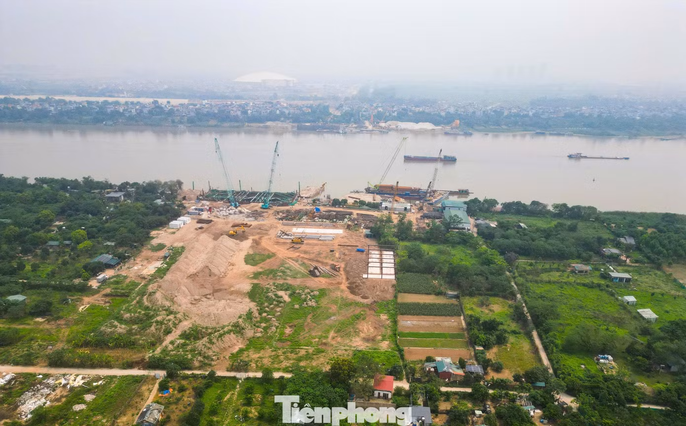 Thời gian này, hệ thống sà lan, trạm trộn và máy móc thiết bị hạng nặng được huy động tối đa ra công trường. Nhịp độ vận chuyển vật liệu như cát, đá, xi măng diễn ra liên tục trên mặt sông để phục vụ thi công.