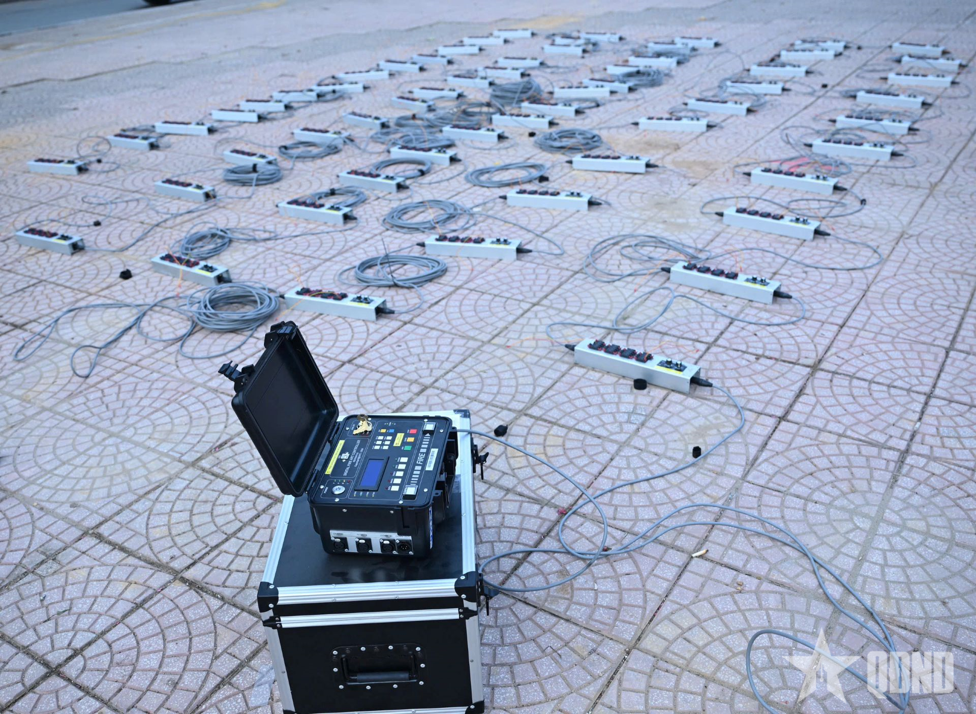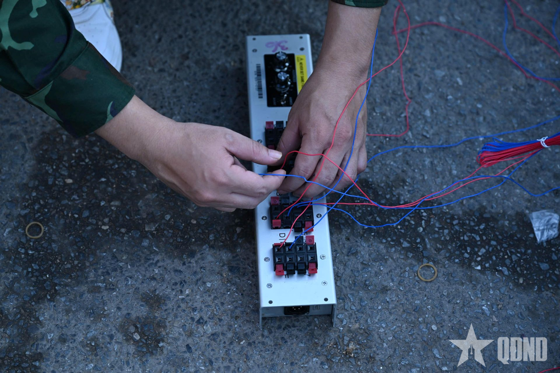 Lực lượng chức năng chuẩn bị hệ thống mạch điện kích hoạt pháo hoa.