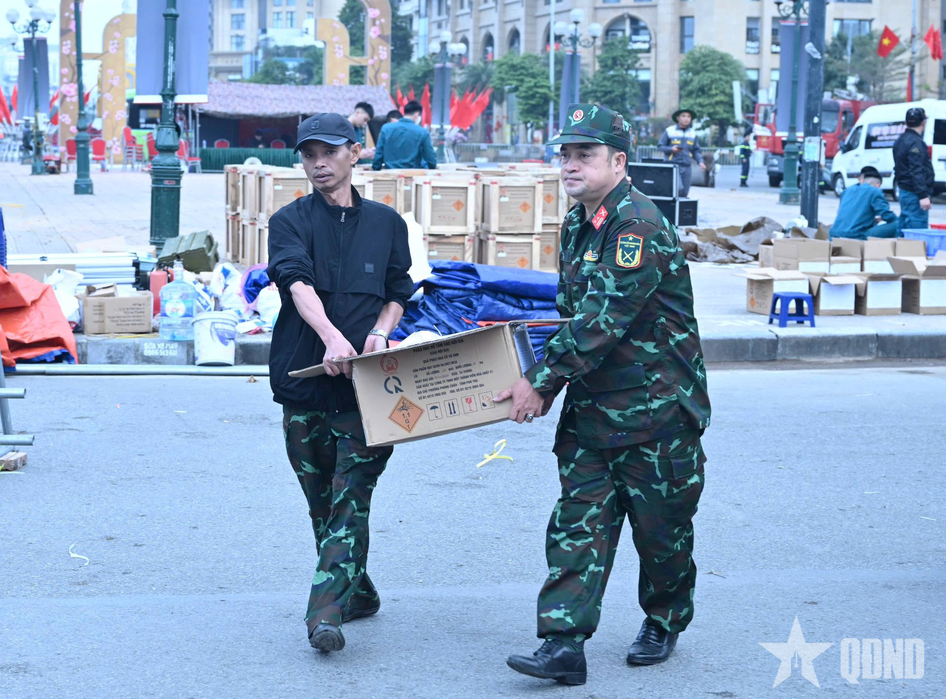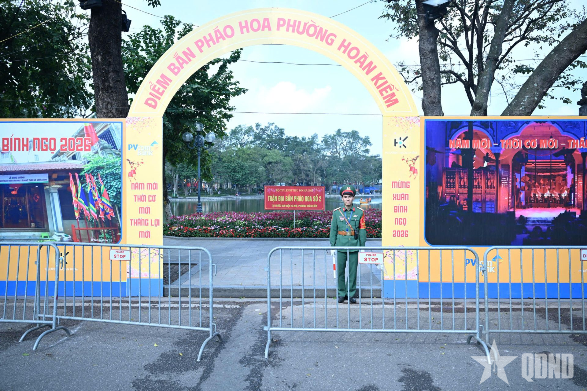 Tại điểm bắn pháo ở khu vực vườn hoa Lạc Long Quân (phường Tây Hồ), Thượng tá Nguyễn Đình Thắng, Chỉ huy trưởng Ban Chỉ huy Quân sự phường Tây Hồ cho biết, tại điểm bắn pháo hoa này bố trí 700 giàn pháo hoa tầm cao, 60 giàn tầm thấp và 30 giàn hỏa thuật. Để thực hiện nhiệm vụ, đơn vị đã huy động hơn 120 cán bộ, chiến sĩ phối hợp cùng Công an phường, lực lượng dân quân tự vệ và dân quân cơ động triển khai lắp đặt pháo hoa tầm cao theo kế hoạch. Toàn bộ quá trình được thực hiện đúng quy trình, tuân thủ nghiêm các yêu cầu an toàn, nhận được sự đồng thuận của chính quyền địa phương và người dân.