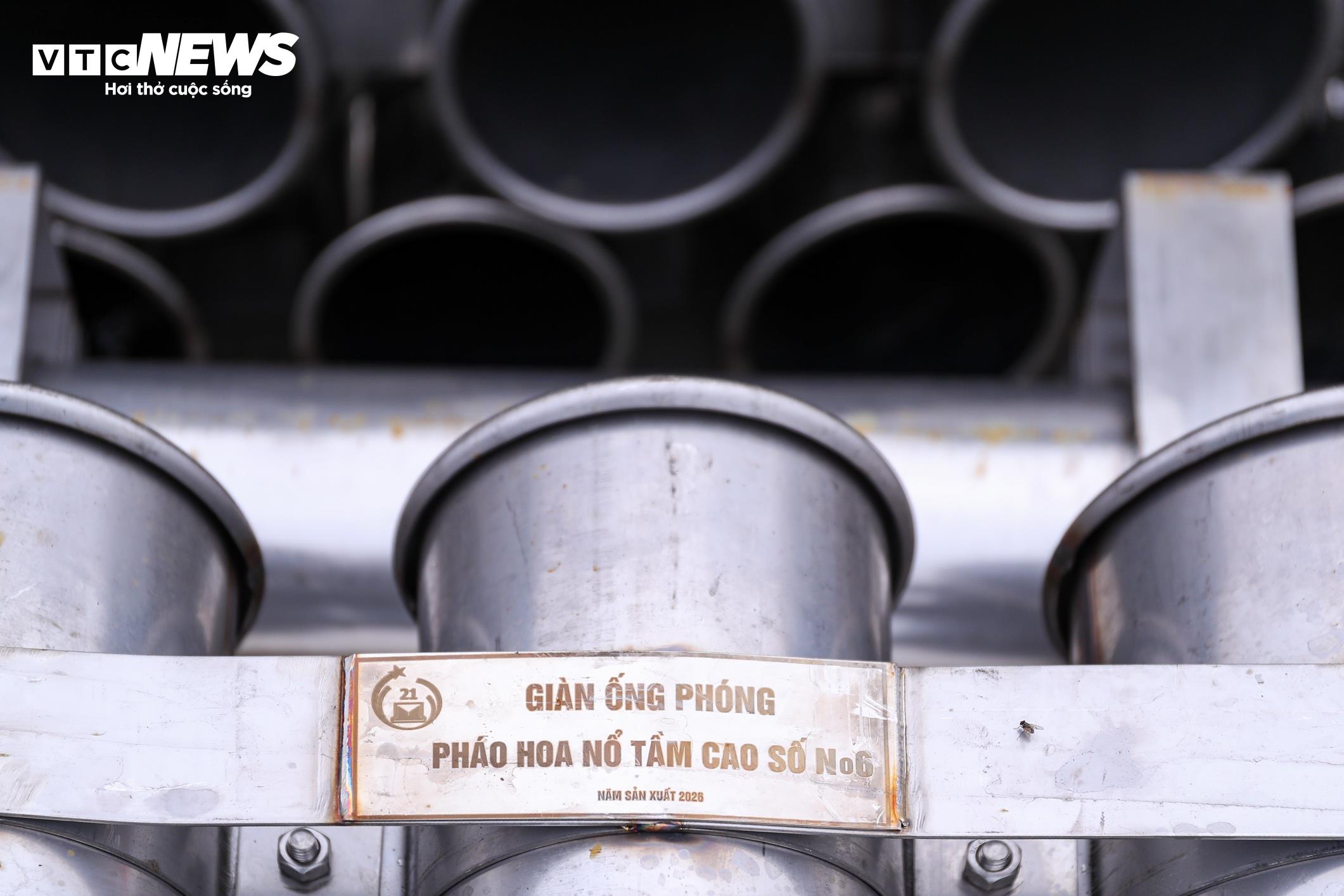 Toàn bộ hệ thống ống phóng pháo hoa đã được lắp đặt và căn chỉnh kỹ lưỡng trên khu vực trận địa, sẵn sàng cho thời khắc Giao thừa.