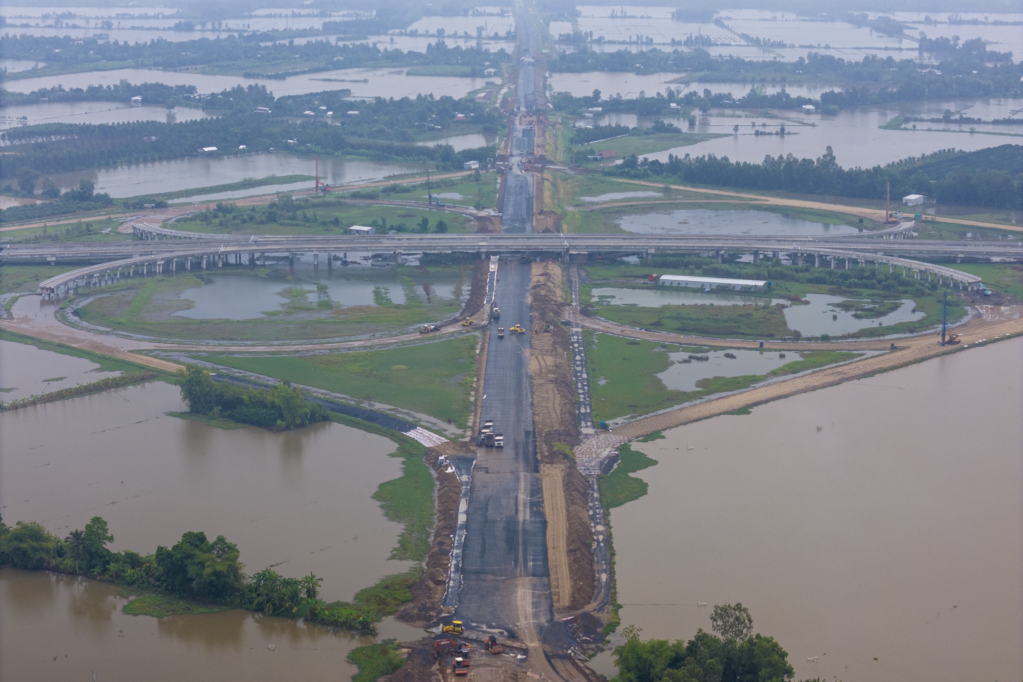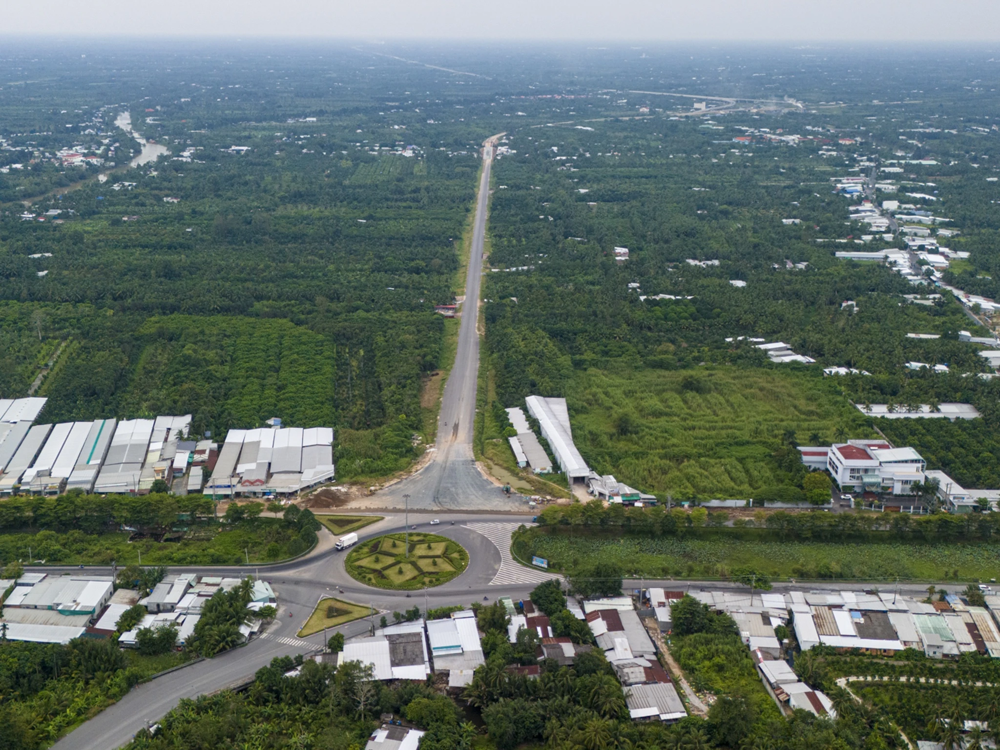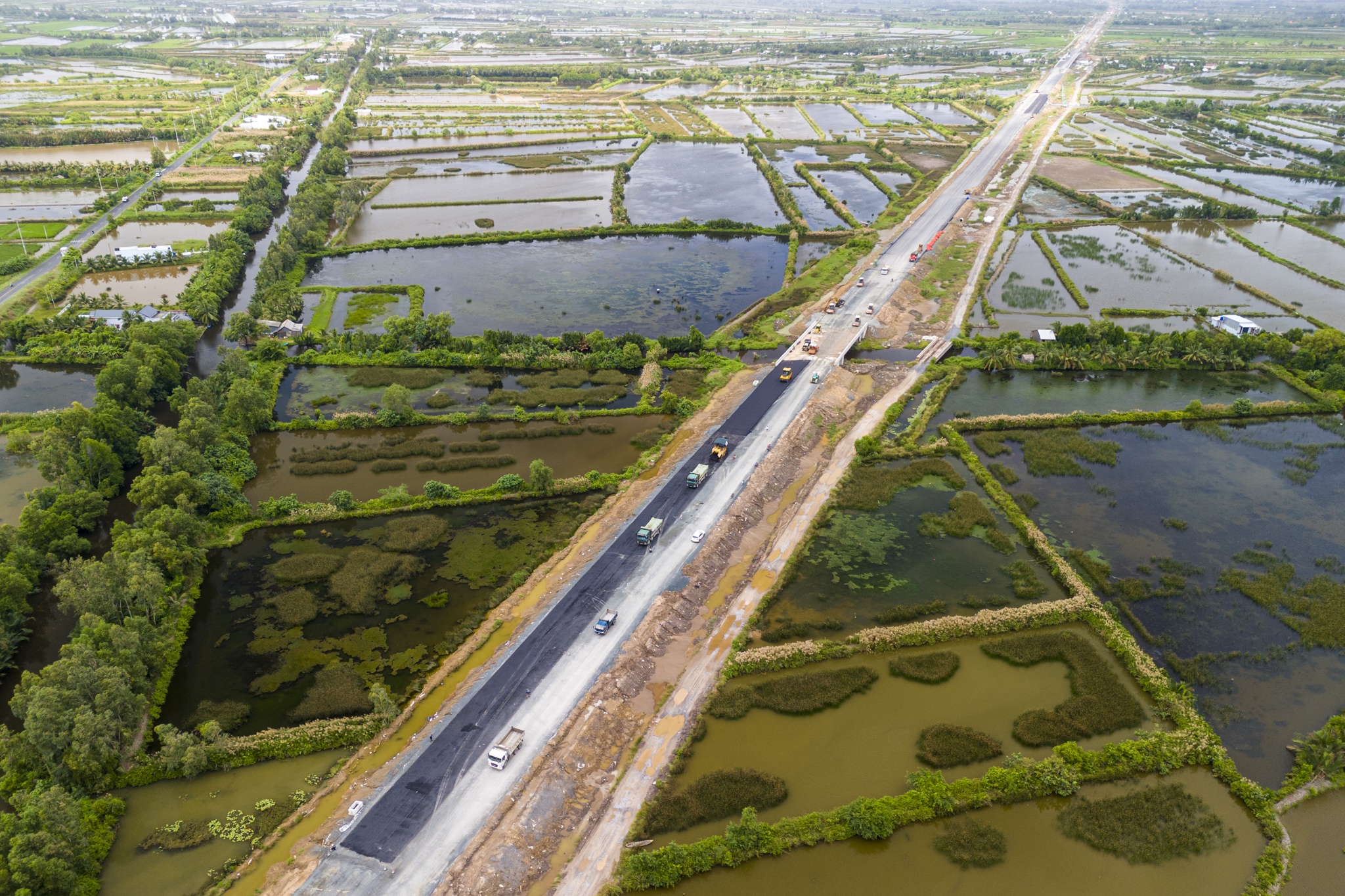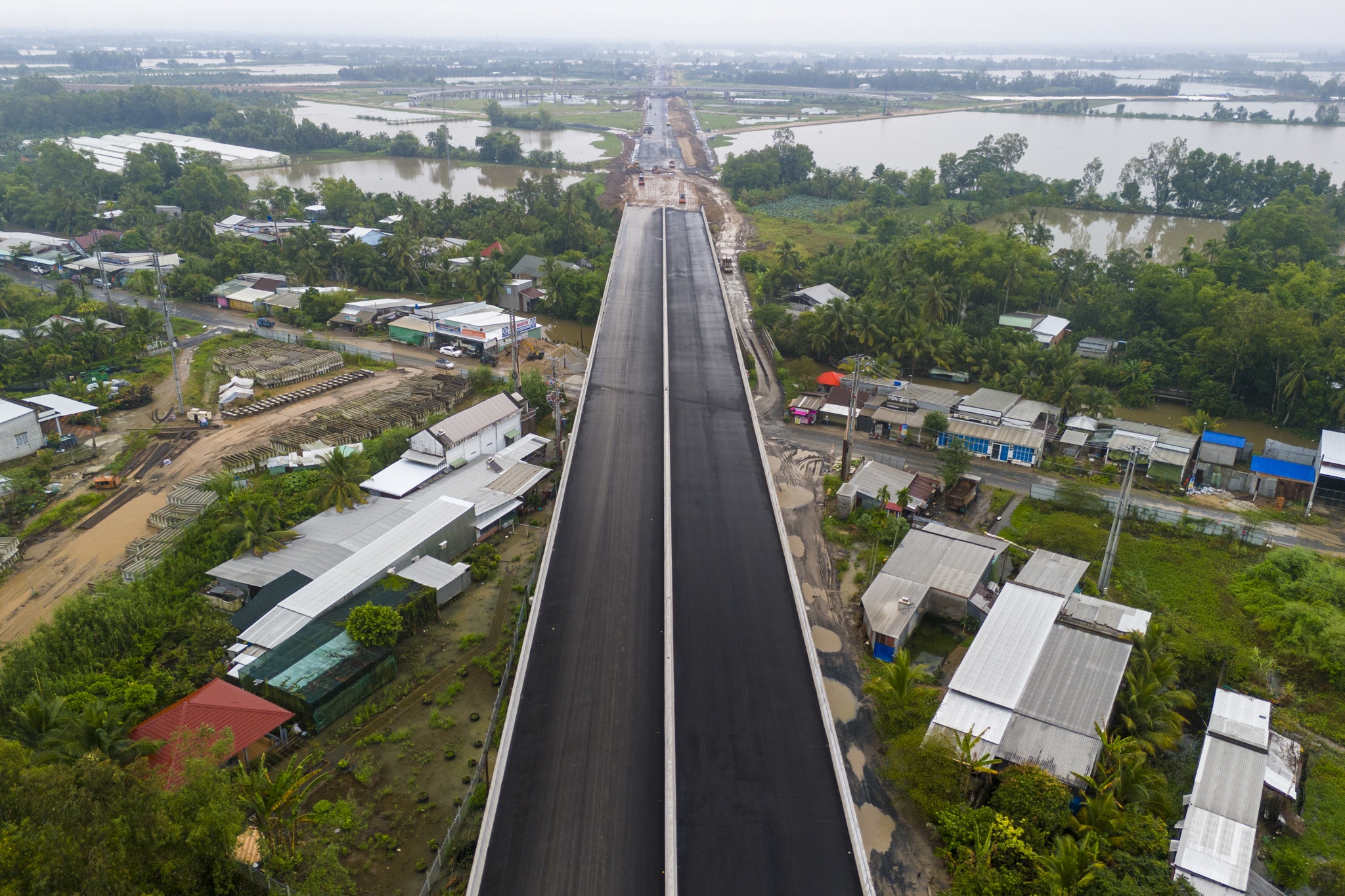 Nút giao hình hoa thị với cao tốc Cần Thơ - Châu Đốc - Sóc Trăng đã được triển khai thi công xong phần lao lắp dầm cầu, bê tông bản mặt cầu. Trên tuyến chính đang được nhà thầu khẩn trương thi công thảm nhựa.