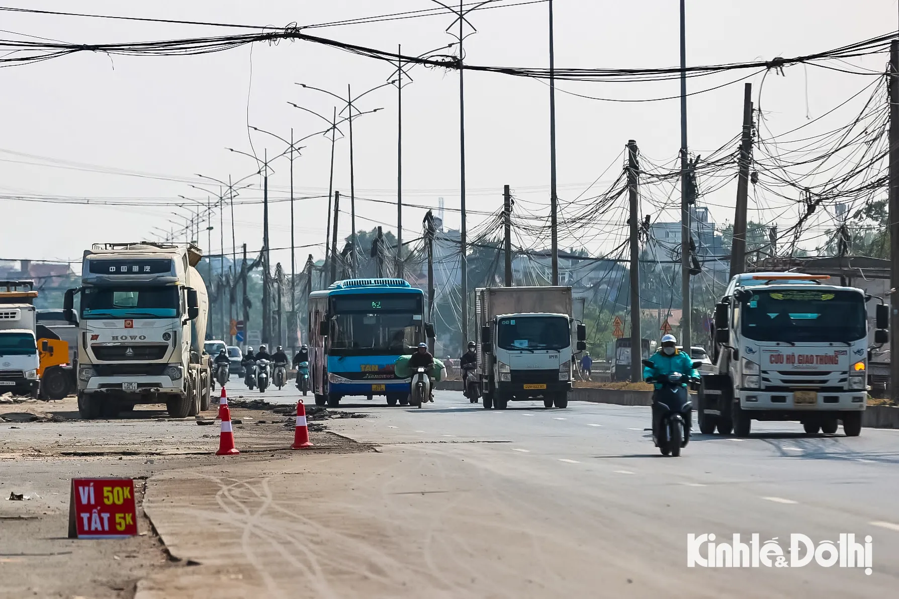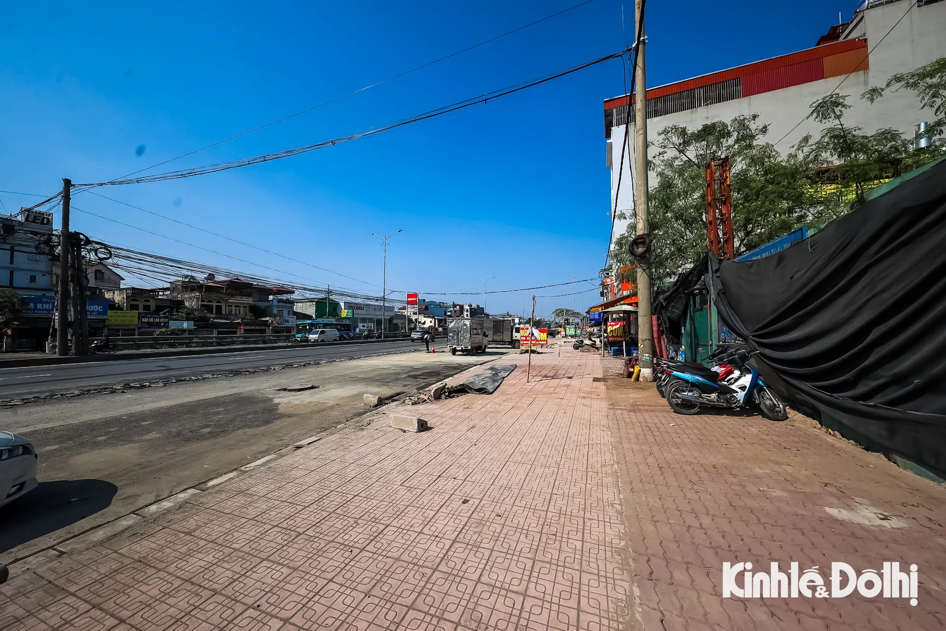 Hệ thống cáp viễn thông và đường điện đang chờ được hạ ngầm, riêng đèn chiếu sáng cũ được giữ lại. Dải phân cách đang được hoàn thiện.