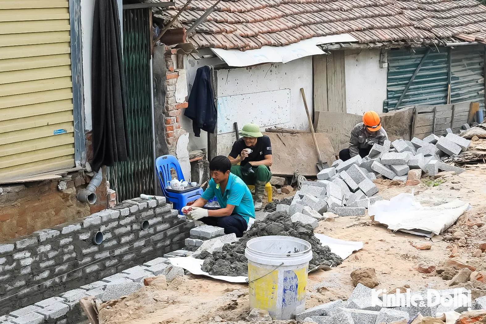 Máy móc, nhân lực của nhà thầu đang tích cực triển khai các hạng mục như: Cống thoát nước, lát bó vỉa hè…