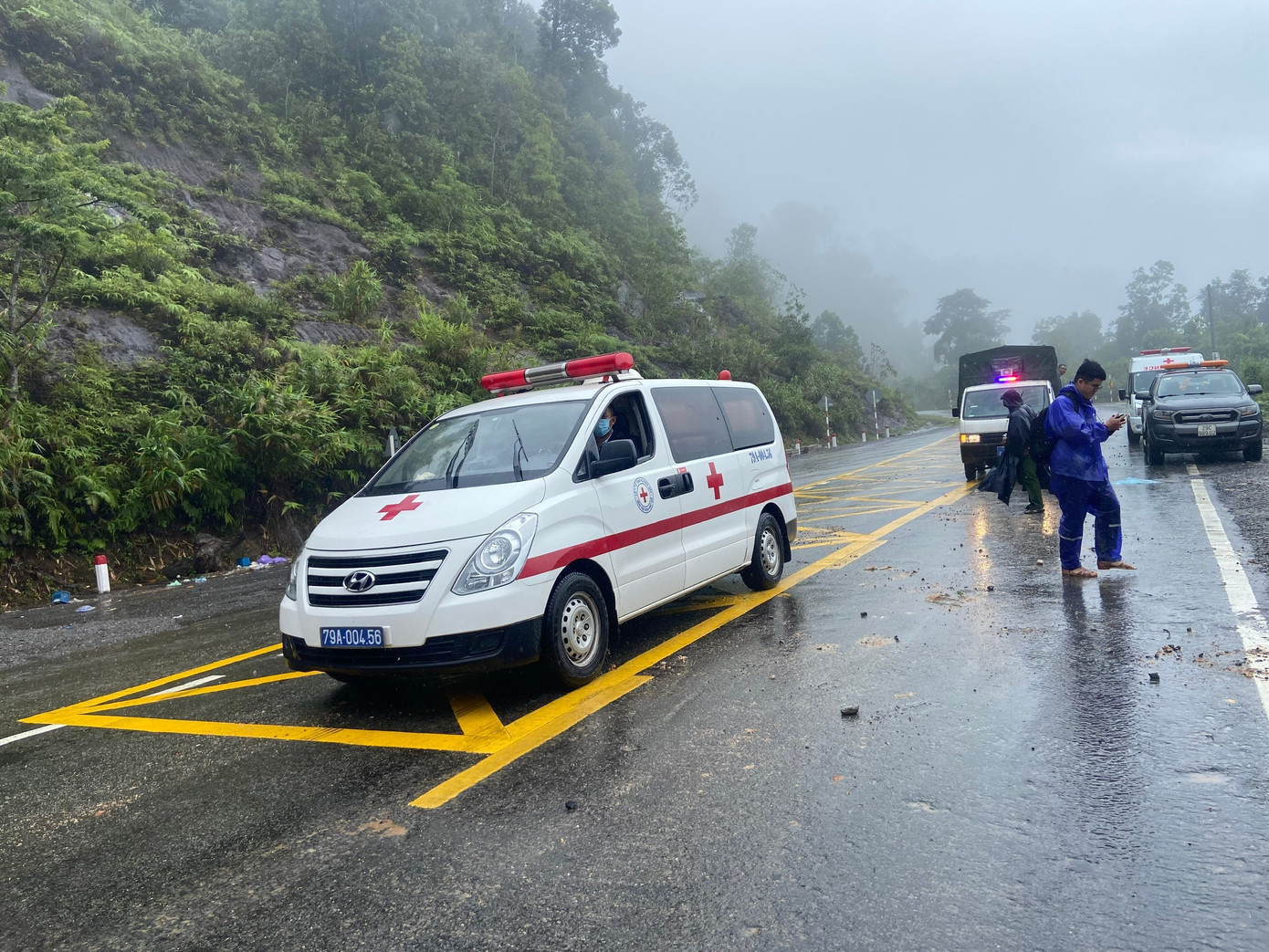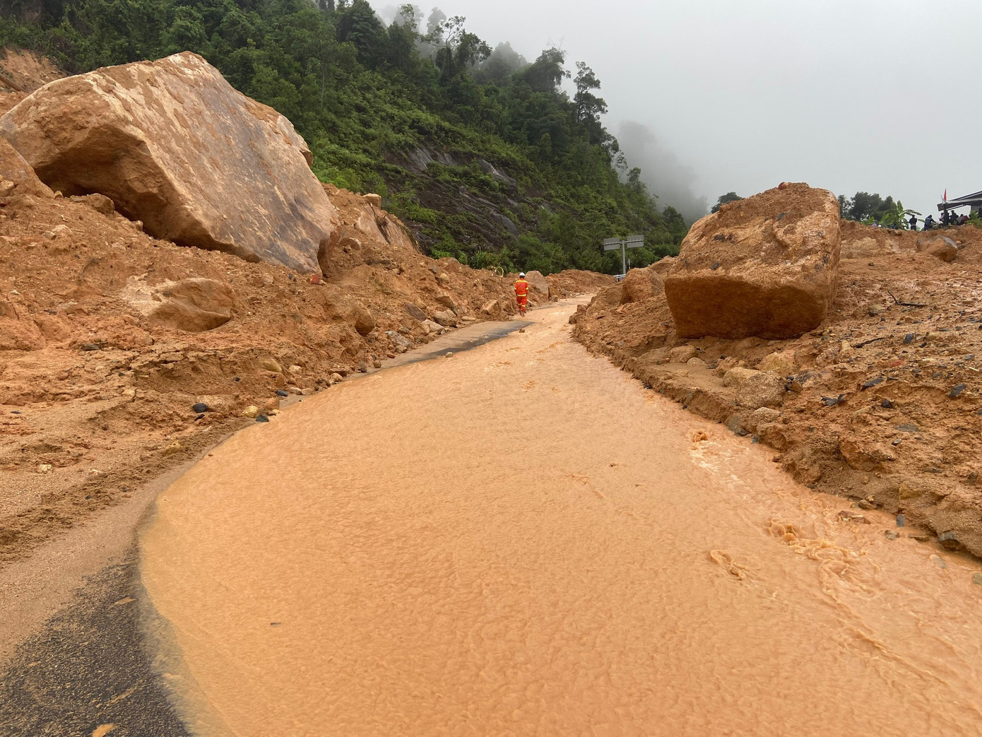 Hiện tại công tác giải tỏa hiện trường sạt lở rất khó khăn do mưa lớn, thời tiết diễn biến phức tạp.