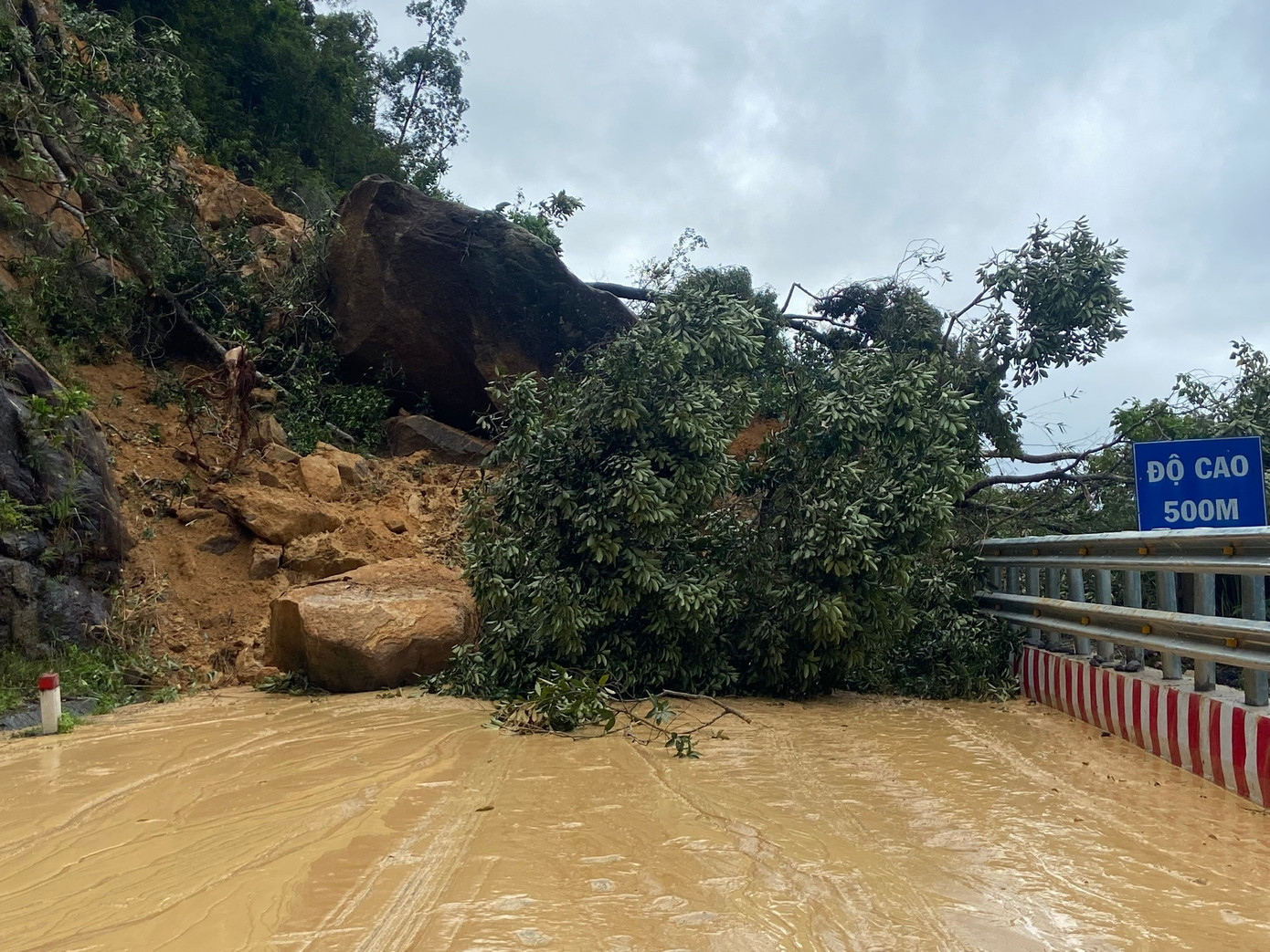 Trong đêm 16 rạng sáng 17/11, hàng nghìn khối đất đá tràn xuống đèo Khánh Lê khiến giao thông trên cả 2 chiều tại tuyến Nha Trang - Đà Lạt bị chia cắt.