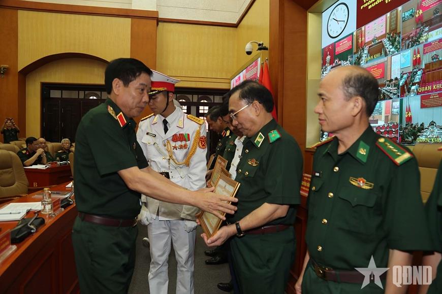 Thượng tướng Nguyễn Văn Gấu trao Bằng khen của Bộ Quốc phòng tặng các tập thể, cá nhân có thành tích tiêu biểu trong thực hiện đợt cao điểm. Ảnh: qdnd.vn