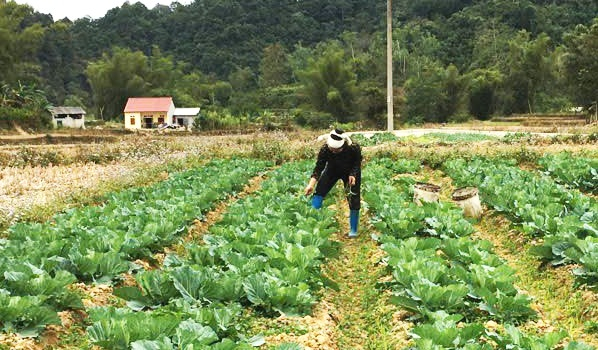 Nông dân xã Độc Lập chăm sóc rau màu vụ đông.