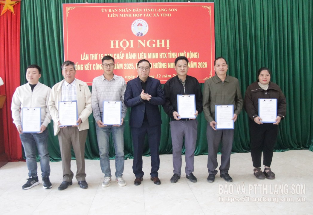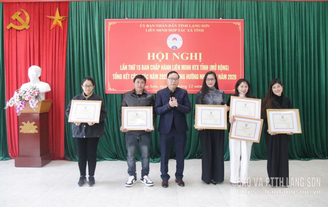Nhân dịp này, lãnh đạo Liên minh HTX tỉnh đã trao quyết định công nhận thành viên Liên minh HTX tỉnh cho một số HTX trên địa bàn tỉnh; tặng giấy khen cho các tập thể, cá nhân có thành tích tiêu biểu trong xây dựng và phát triển HTX năm 2025.