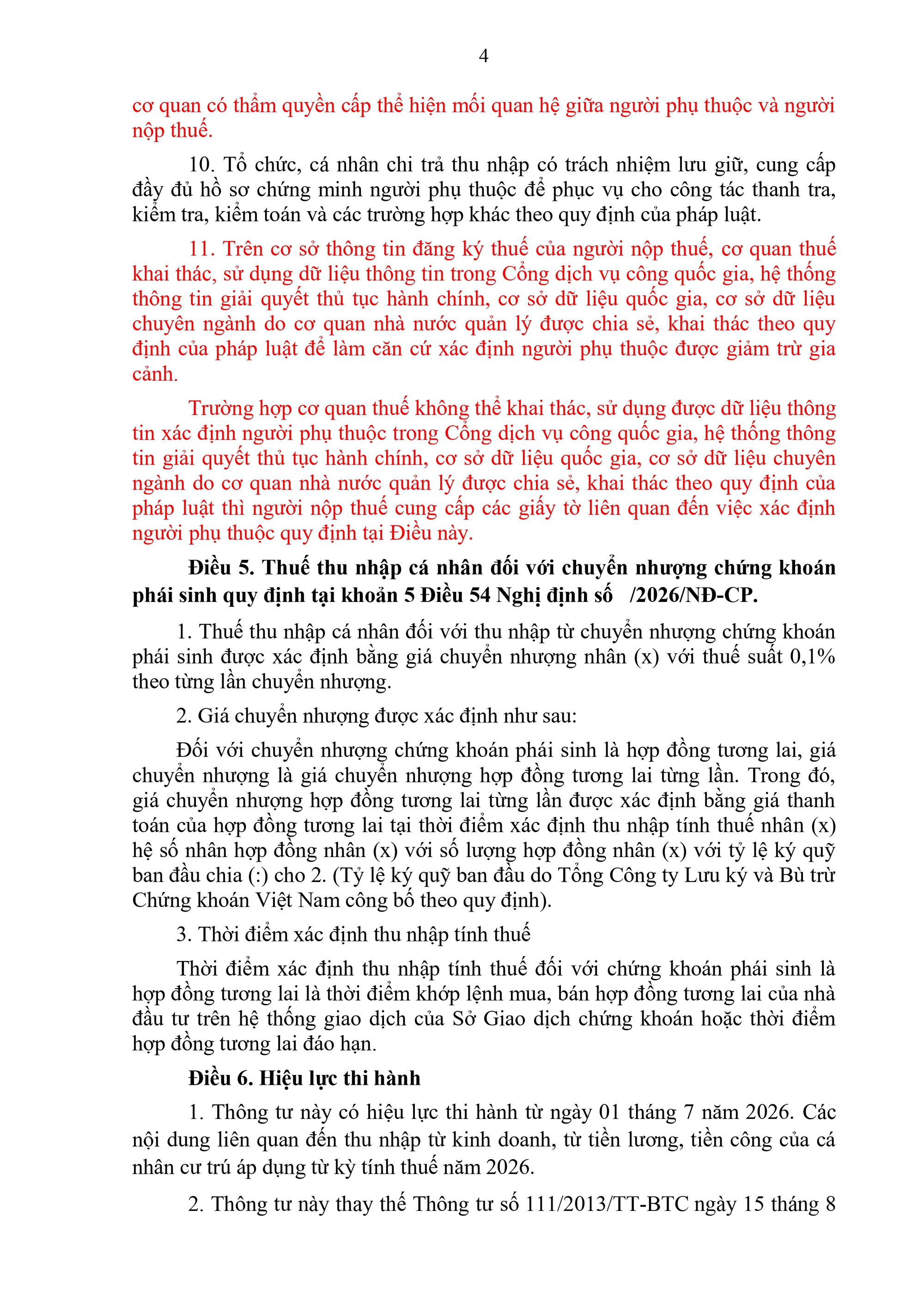 Thuế thu nhập cá nhân đối với chuyển nhượng chứng khoán phái sinh quy định tại khoản 5 Điều 54 Nghị định số /2026/NĐ-CP.