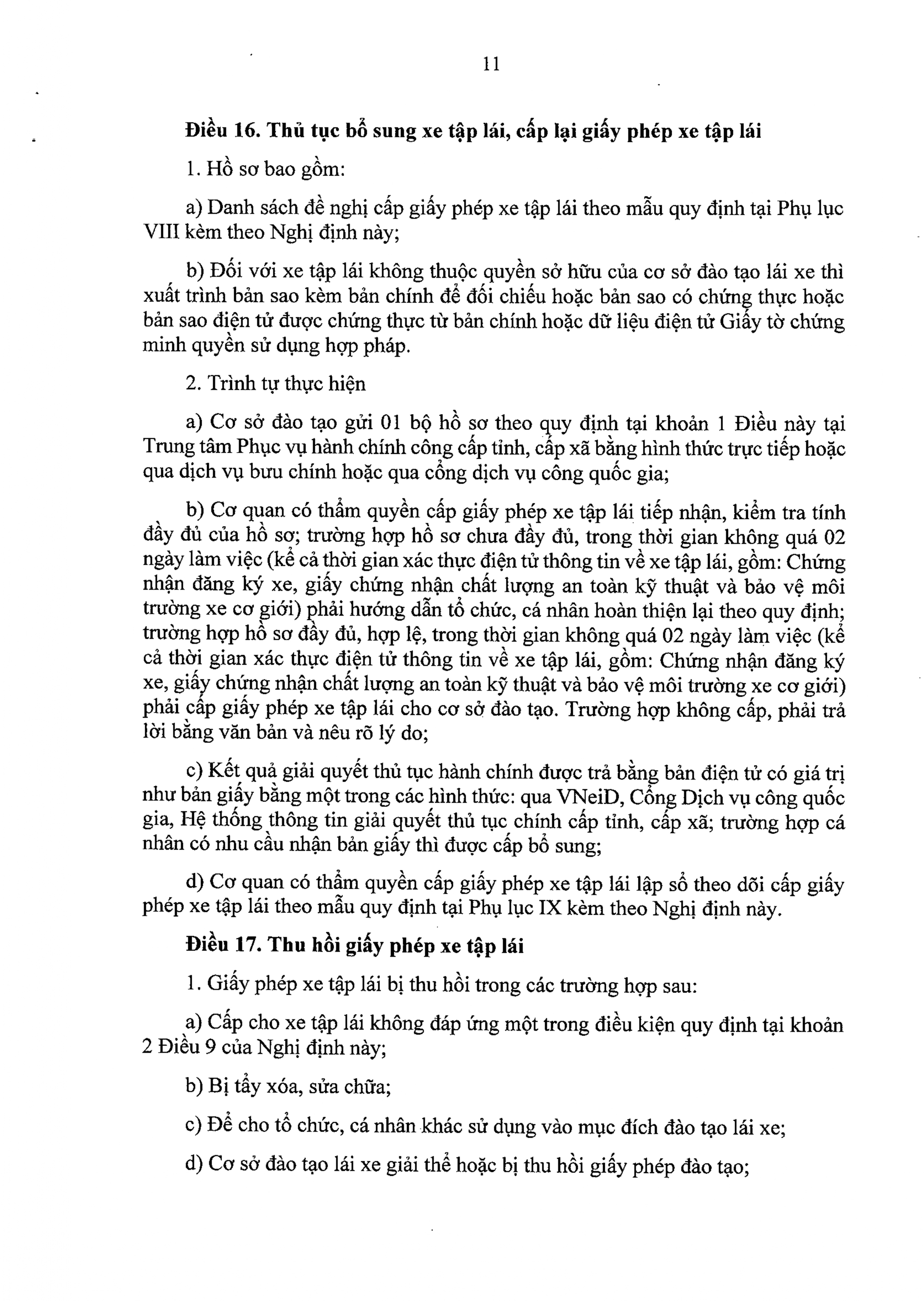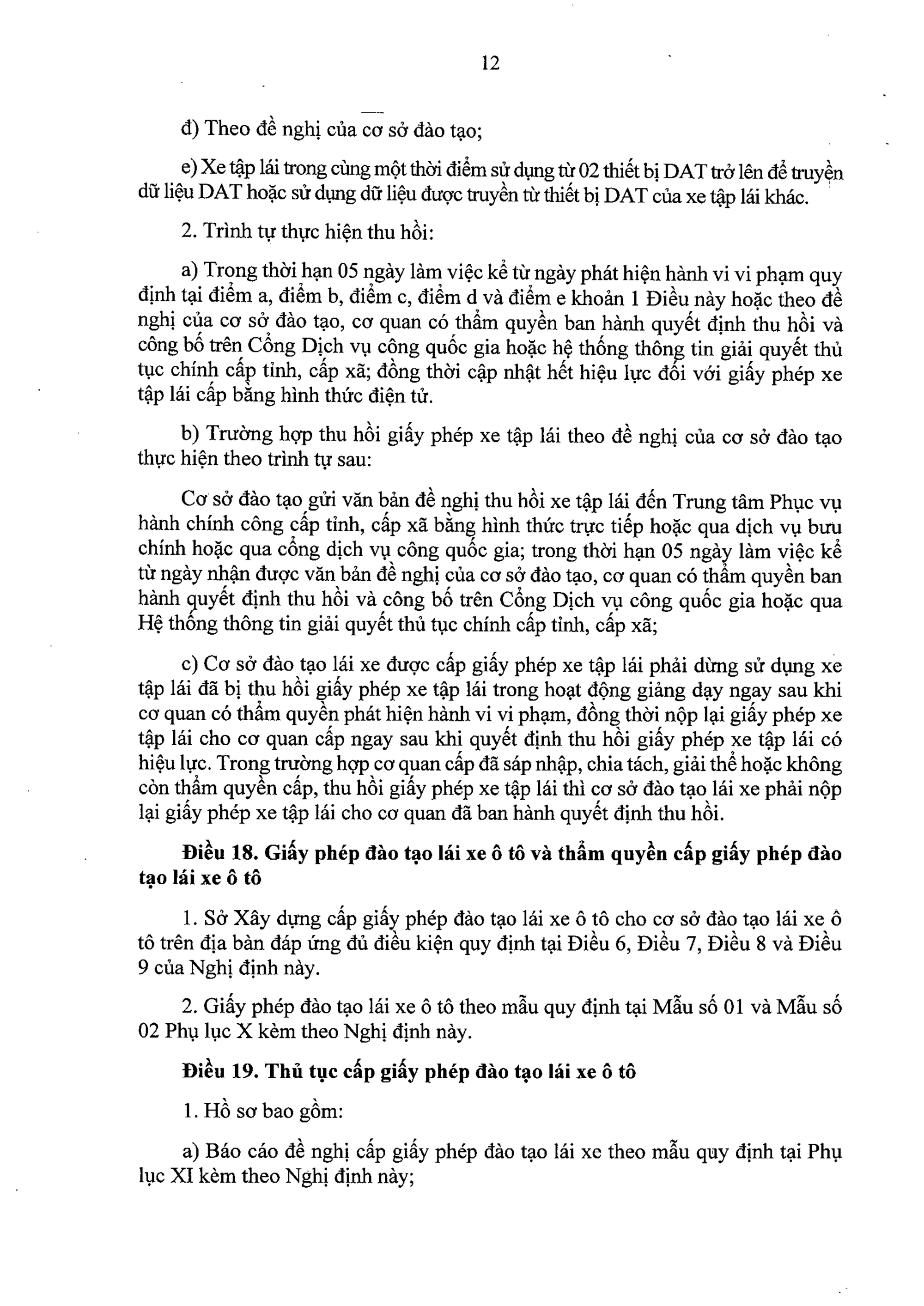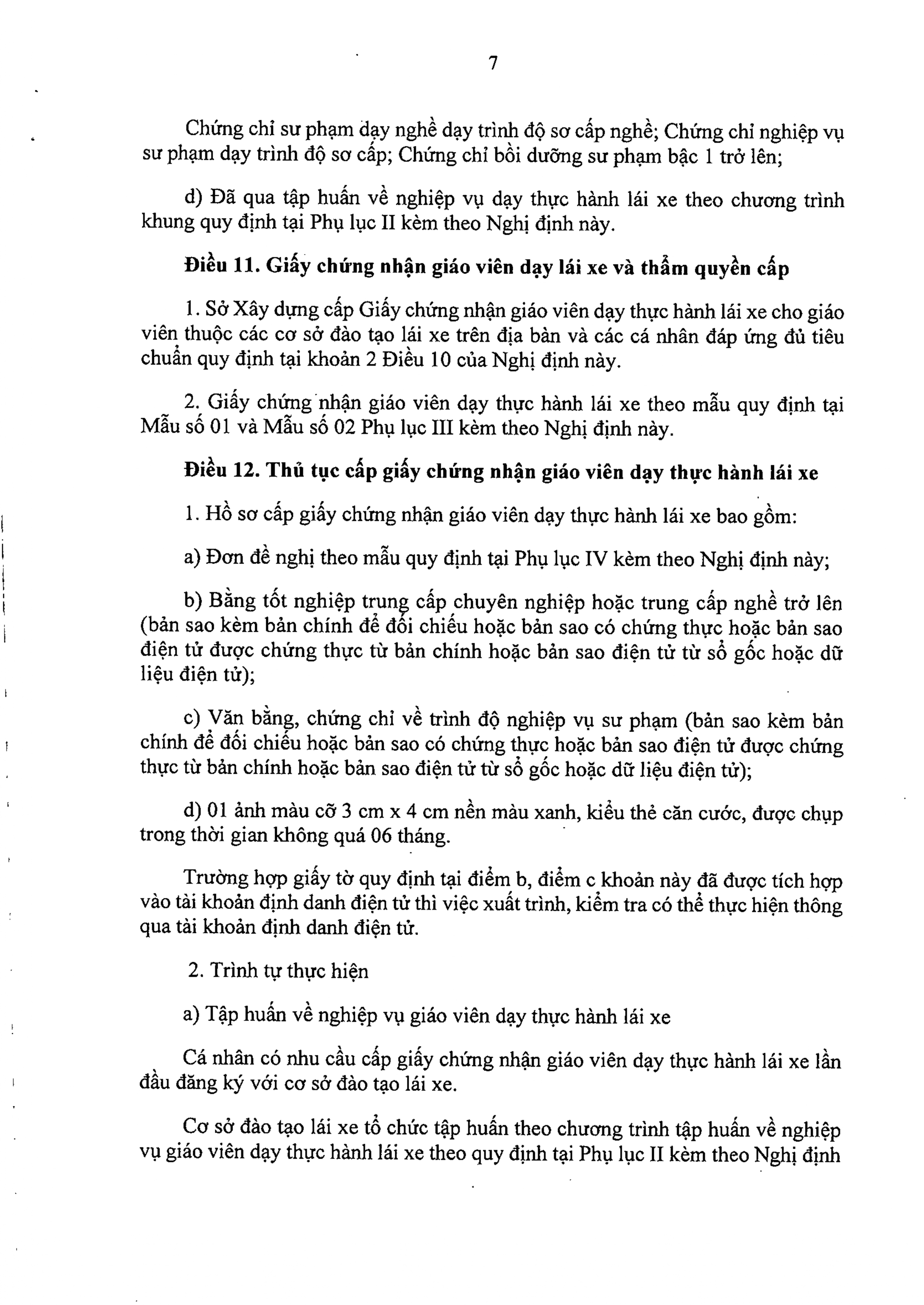 Cơ sở đào tạo lái xe tổ chức tập huấn theo chương trình tập huấn về nghiệp vụ giáo viên dạy thực hành lái xe theo quy định tại Phụ lục II kèm theo Nghị định này và bảo đảm tiêu chuẩn, thành phần hồ sơ đối với người tham dự tập huấn theo quy định tại khoản 2 Điều 10 và khoản 1 Điều này của Nghị định này;