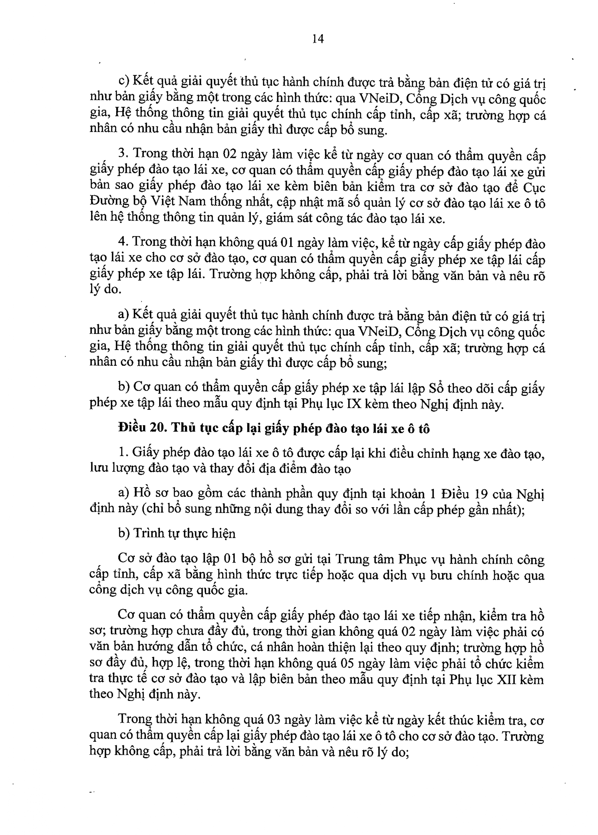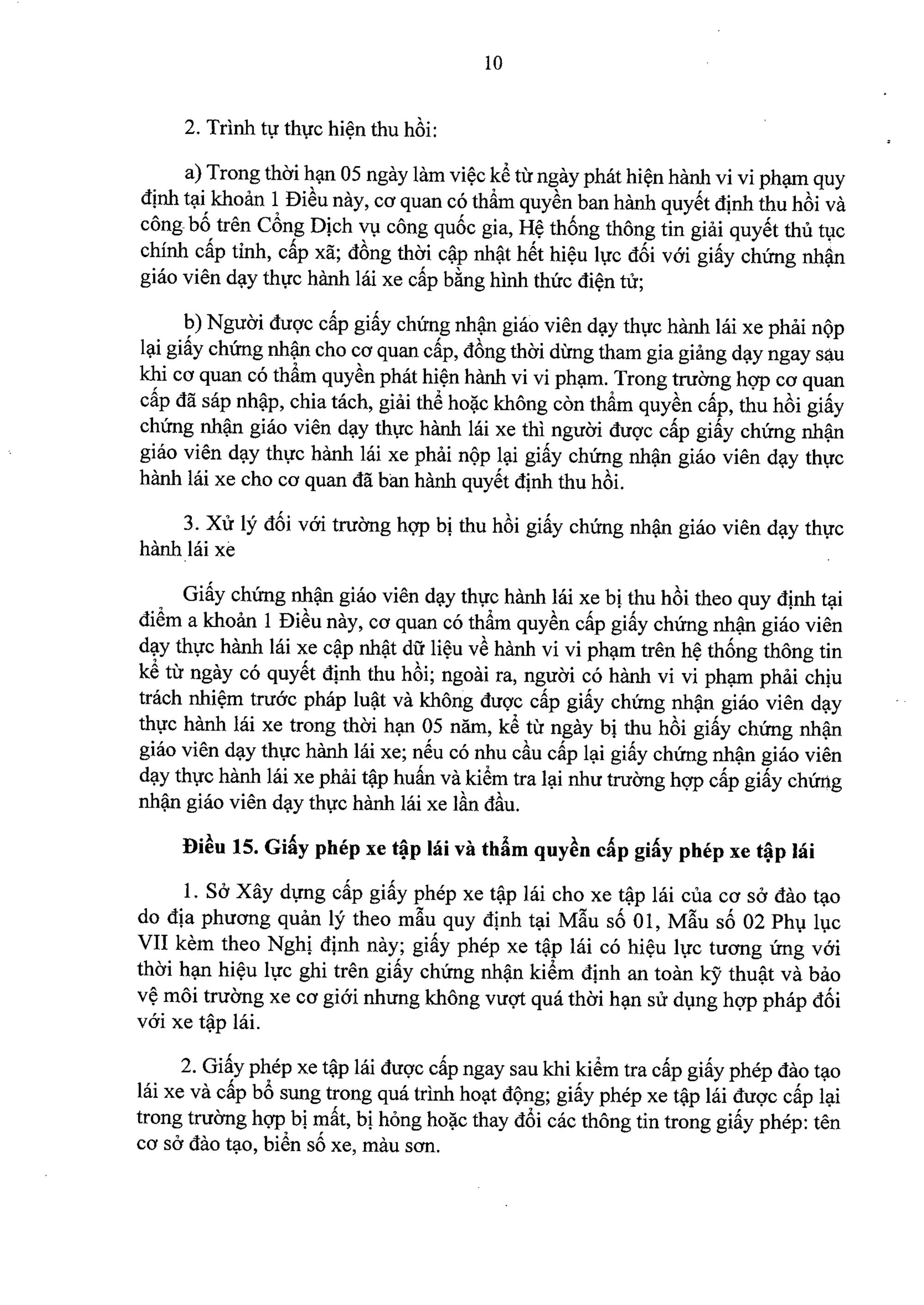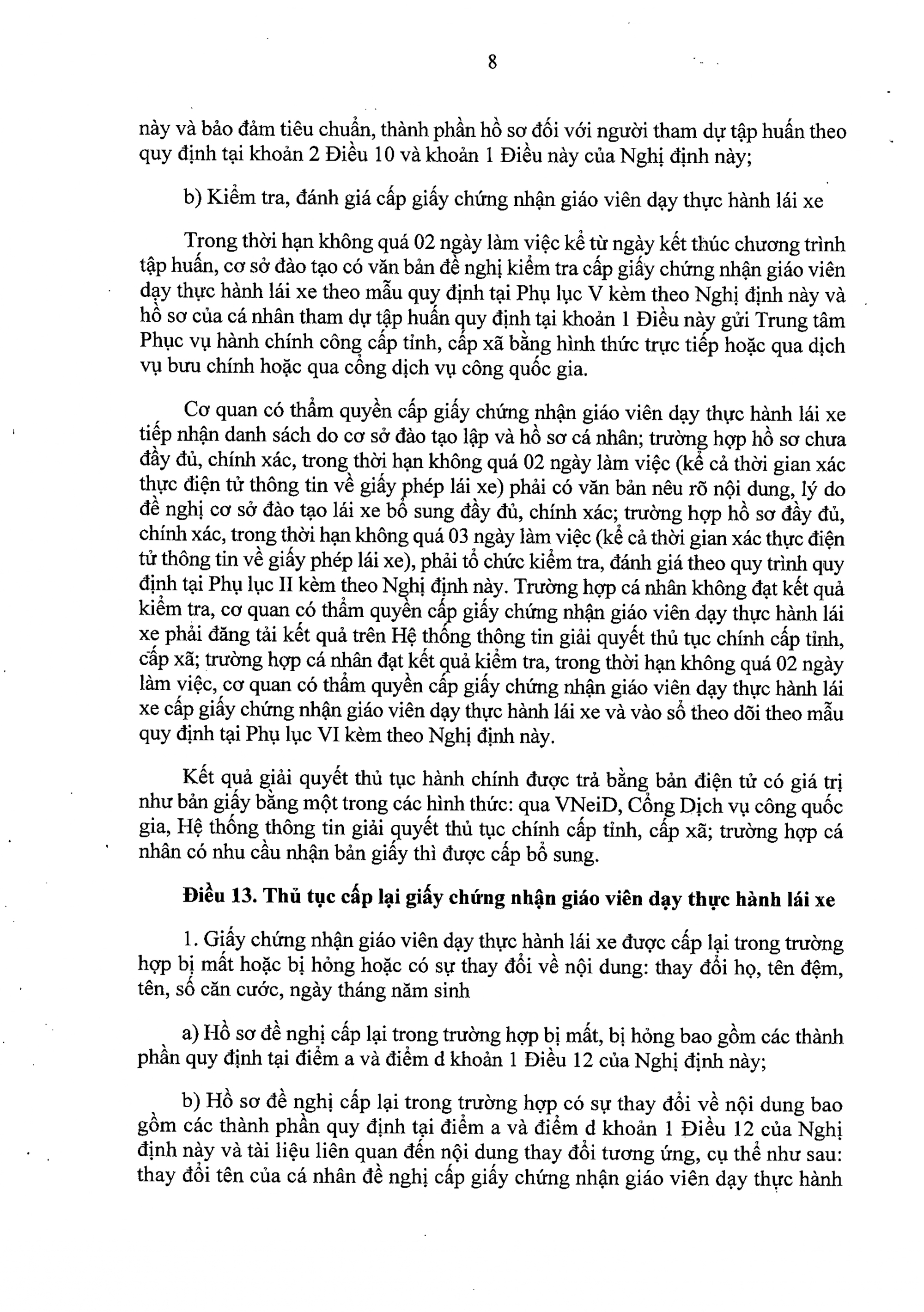 Trường hợp cá nhân đạt kết quả kiểm tra, trong thời hạn không quá 02 ngày làm việc, cơ quan có thẩm quyền cấp giấy chứng nhận giáo viên dạy thực hành lái xe cấp giấy chứng nhận giáo viên dạy thực hành lái xe và vào sổ theo dõi theo mẫu quy định tại Phụ lục VI kèm theo Nghị định này.