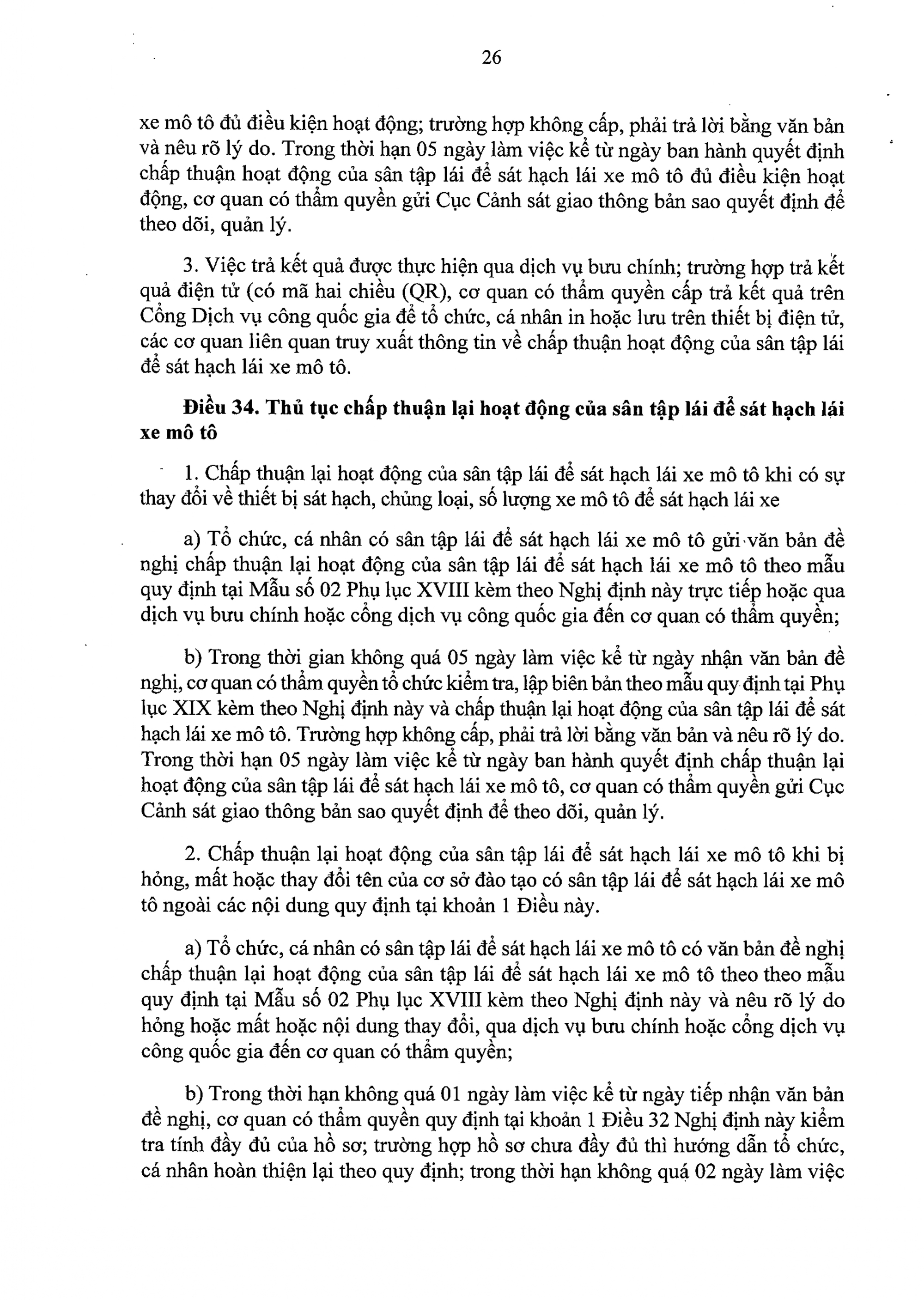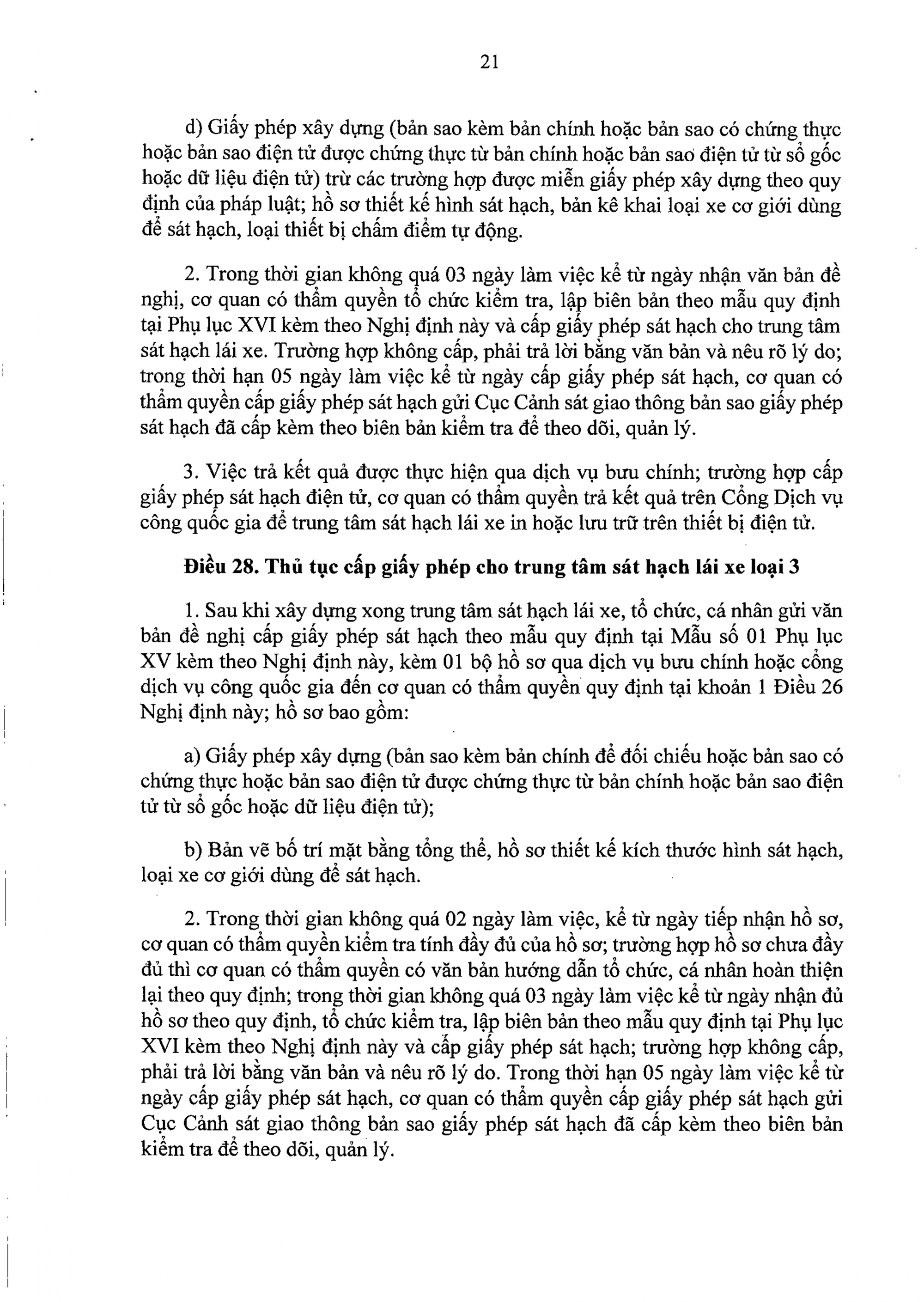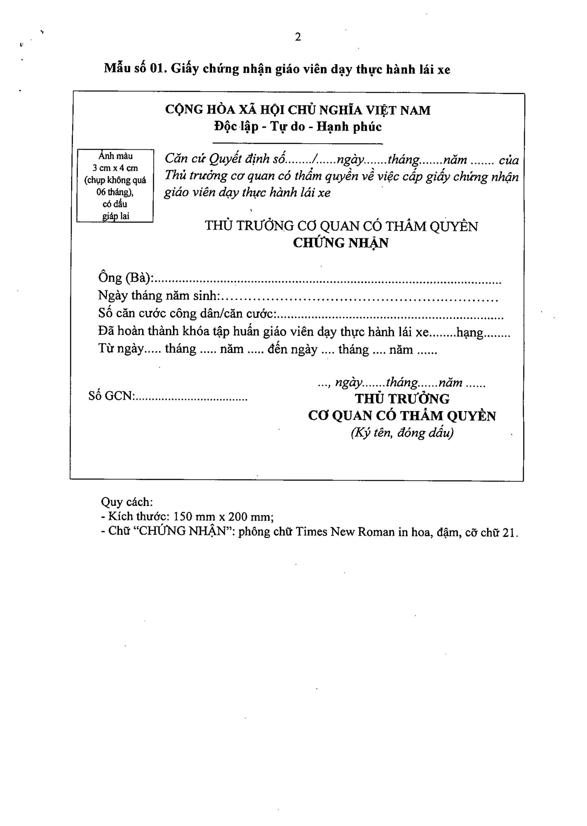 Trường hợp cá nhân đạt kết quả kiểm tra, trong thời hạn không quá 02 ngày làm việc, cơ quan có thẩm quyền cấp giấy chứng nhận giáo viên dạy thực hành lái xe cấp giấy chứng nhận giáo viên dạy thực hành lái xe và vào sổ theo dõi theo mẫu quy định tại Phụ lục VI kèm theo Nghị định này.