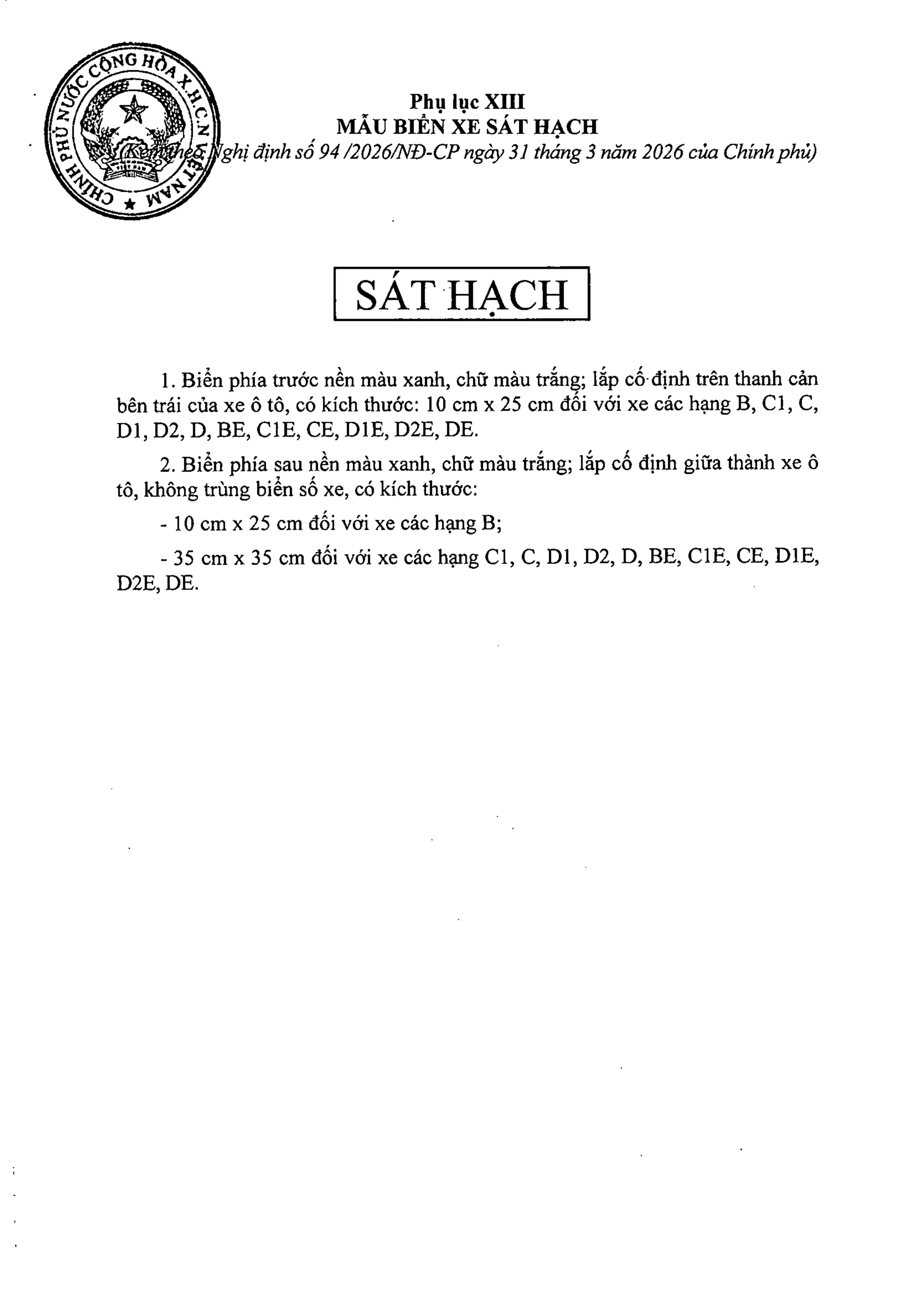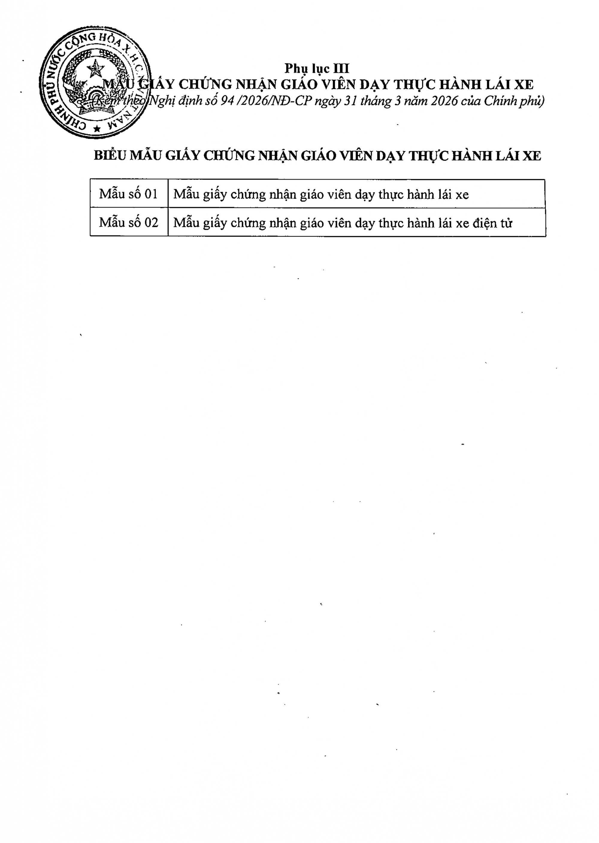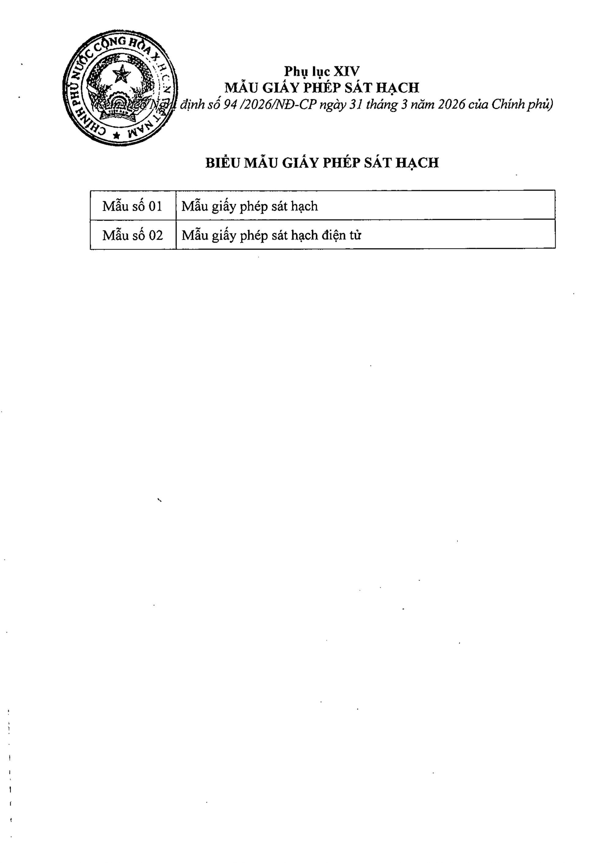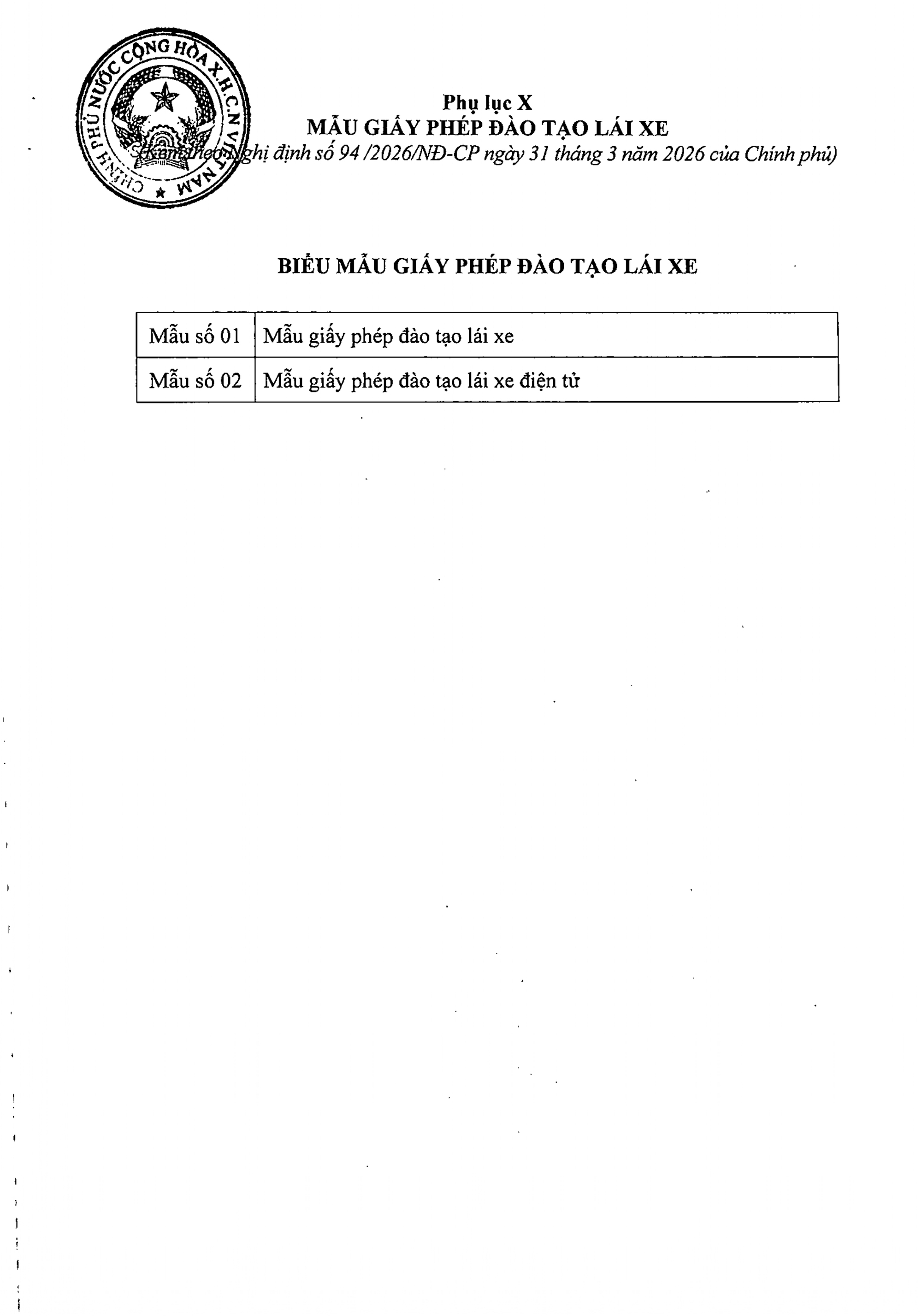 TOÀN VĂN: Nghị định 94/2026/NĐ-CP Quy định về hoạt động đào tạo và sát hạch lái xe