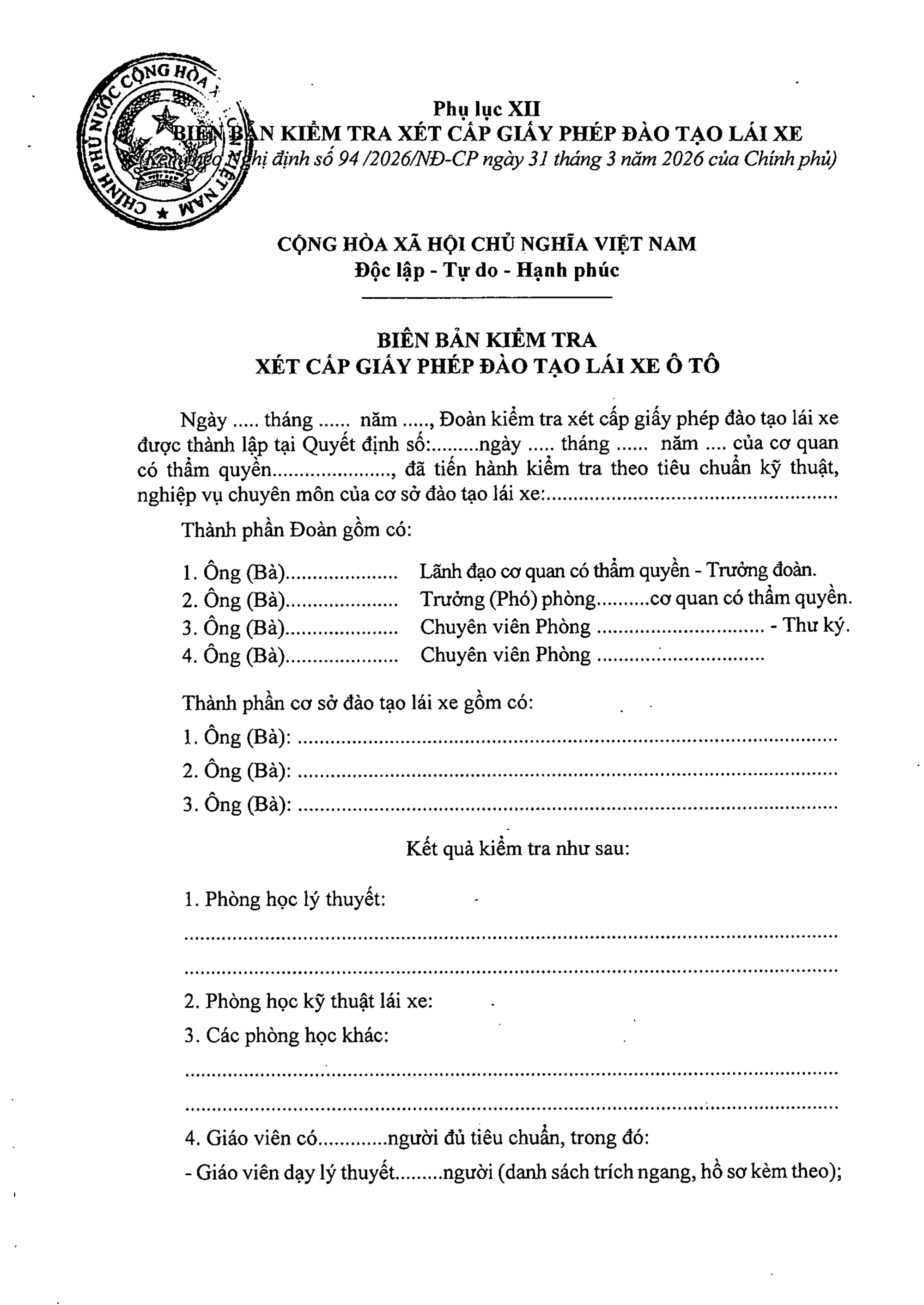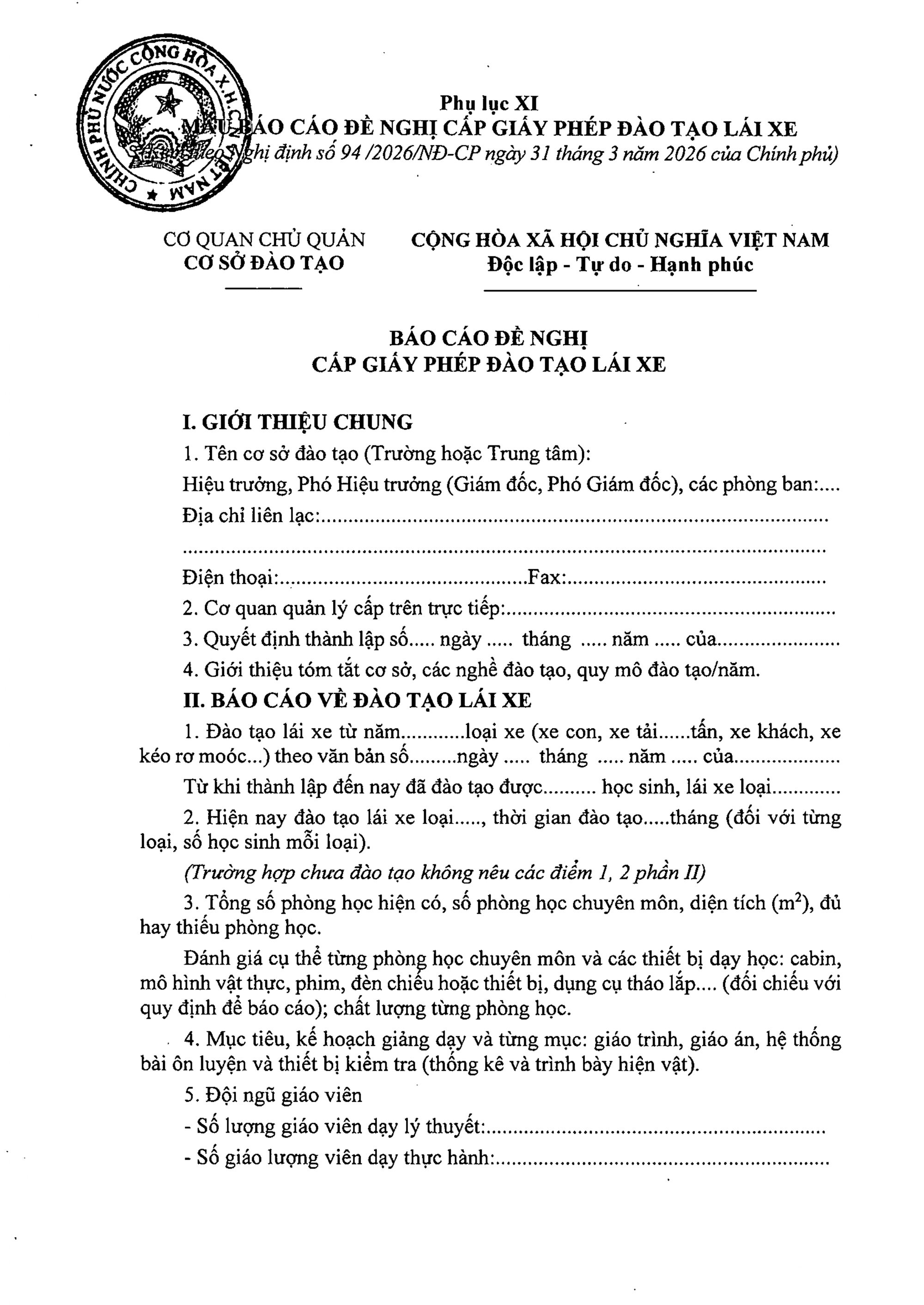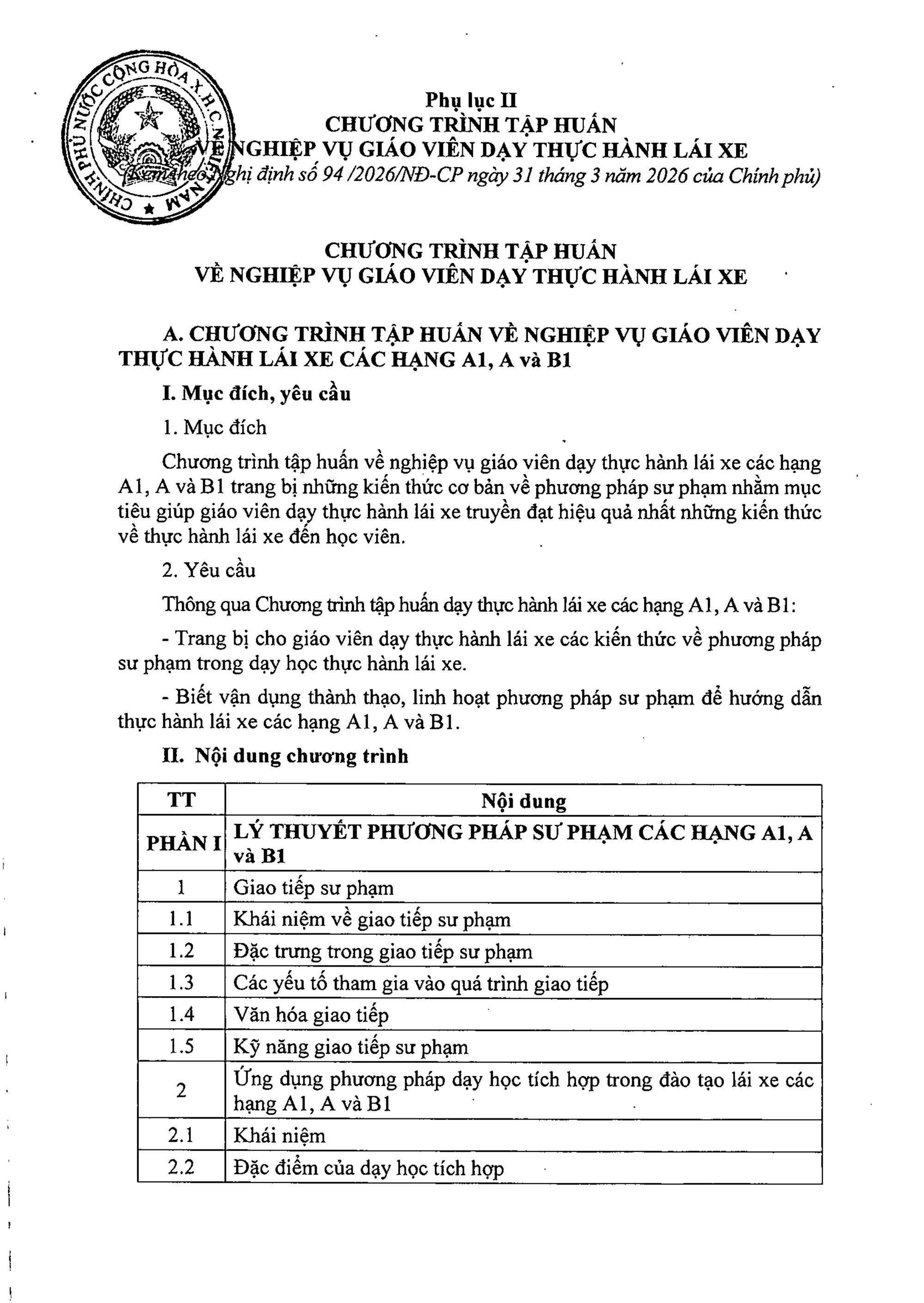 TOÀN VĂN: Nghị định 94/2026/NĐ-CP Quy định về hoạt động đào tạo và sát hạch lái xe