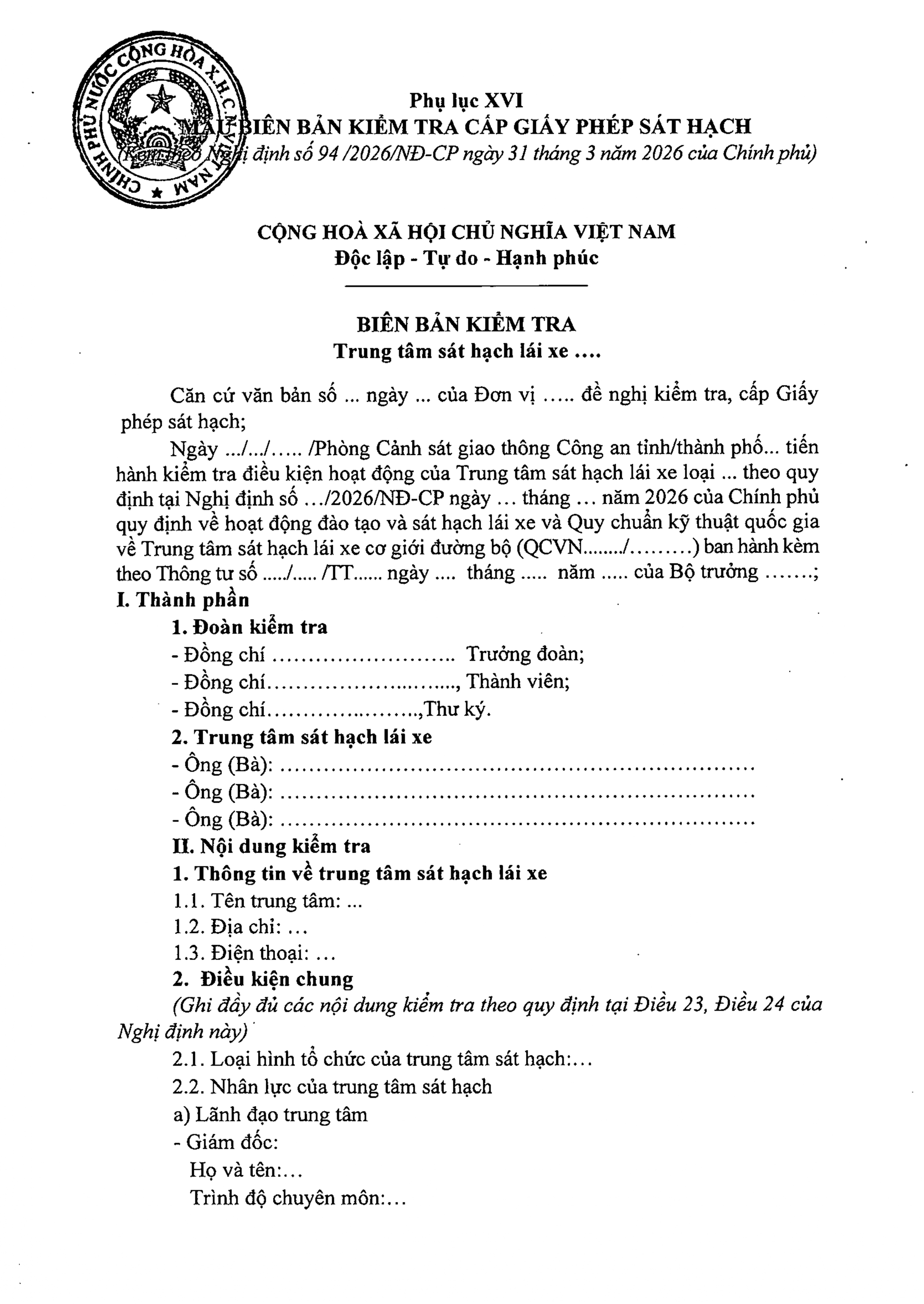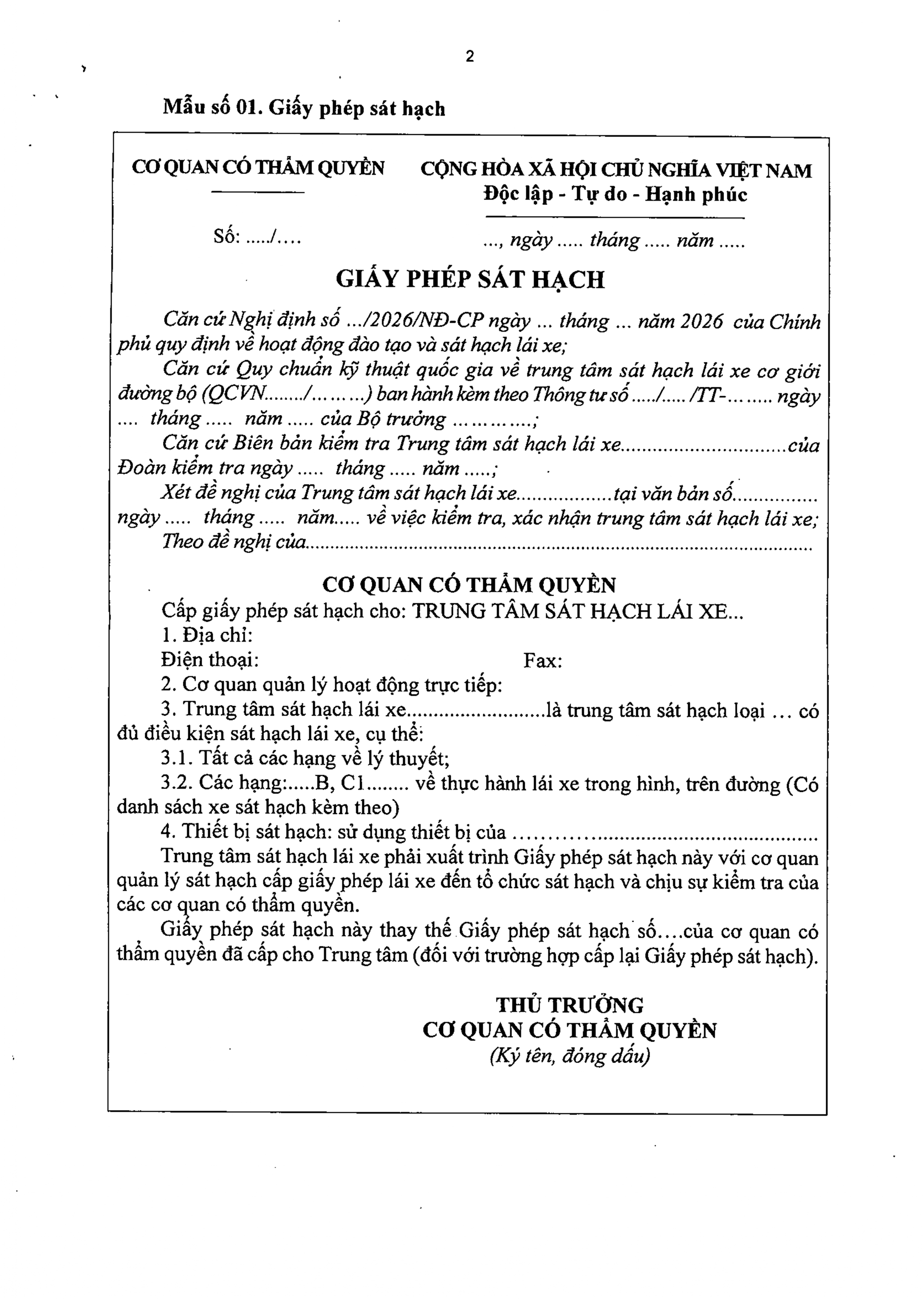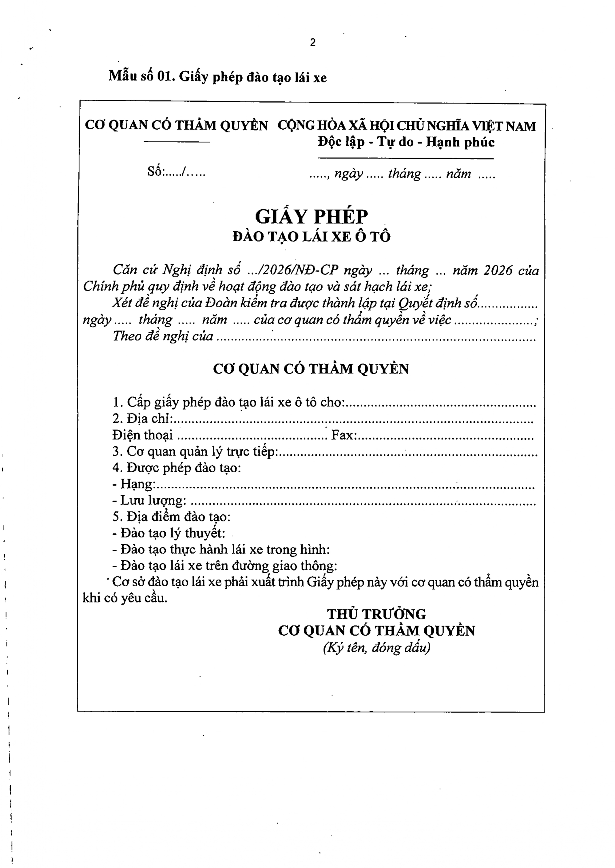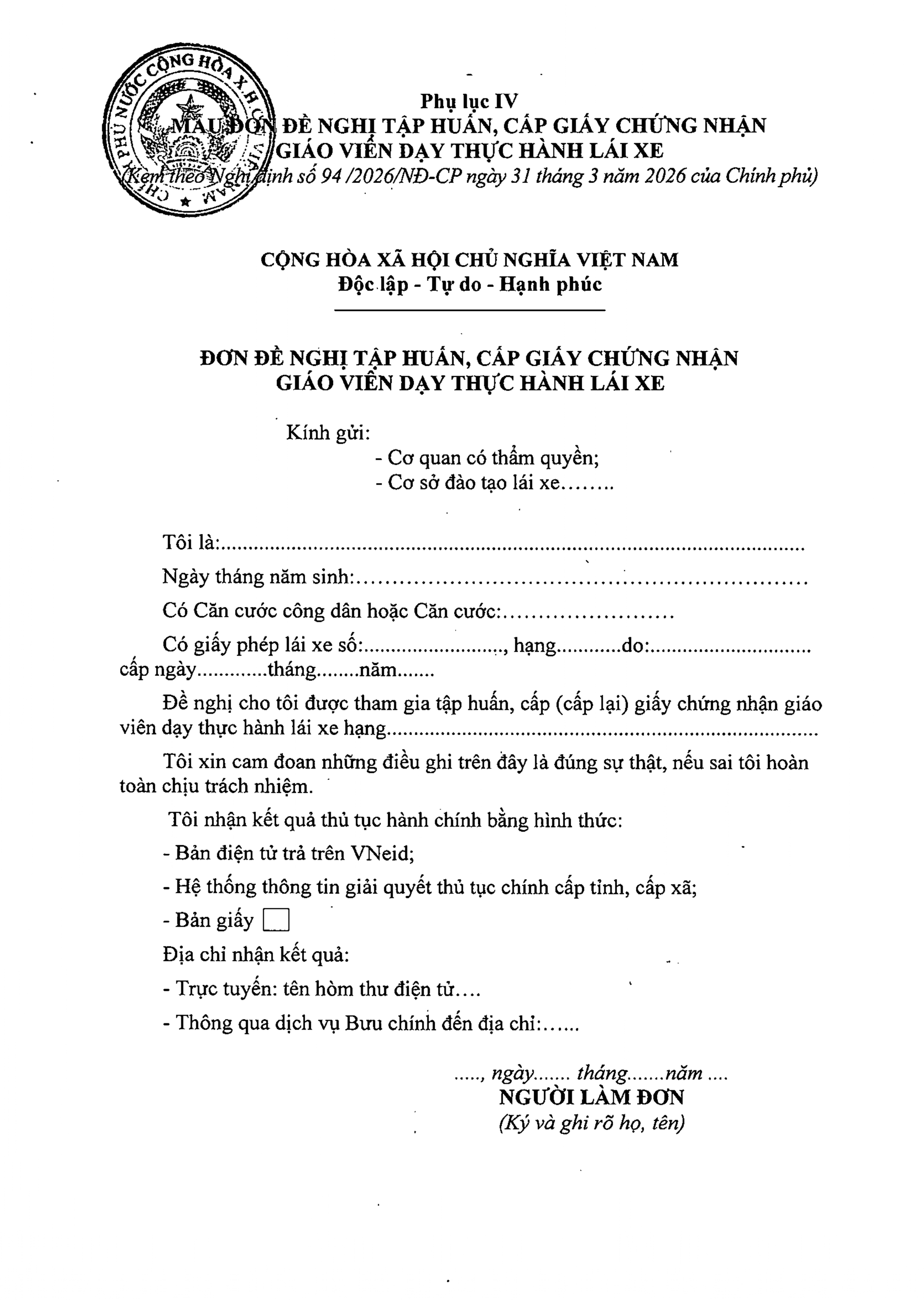 TOÀN VĂN: Nghị định 94/2026/NĐ-CP Quy định về hoạt động đào tạo và sát hạch lái xe