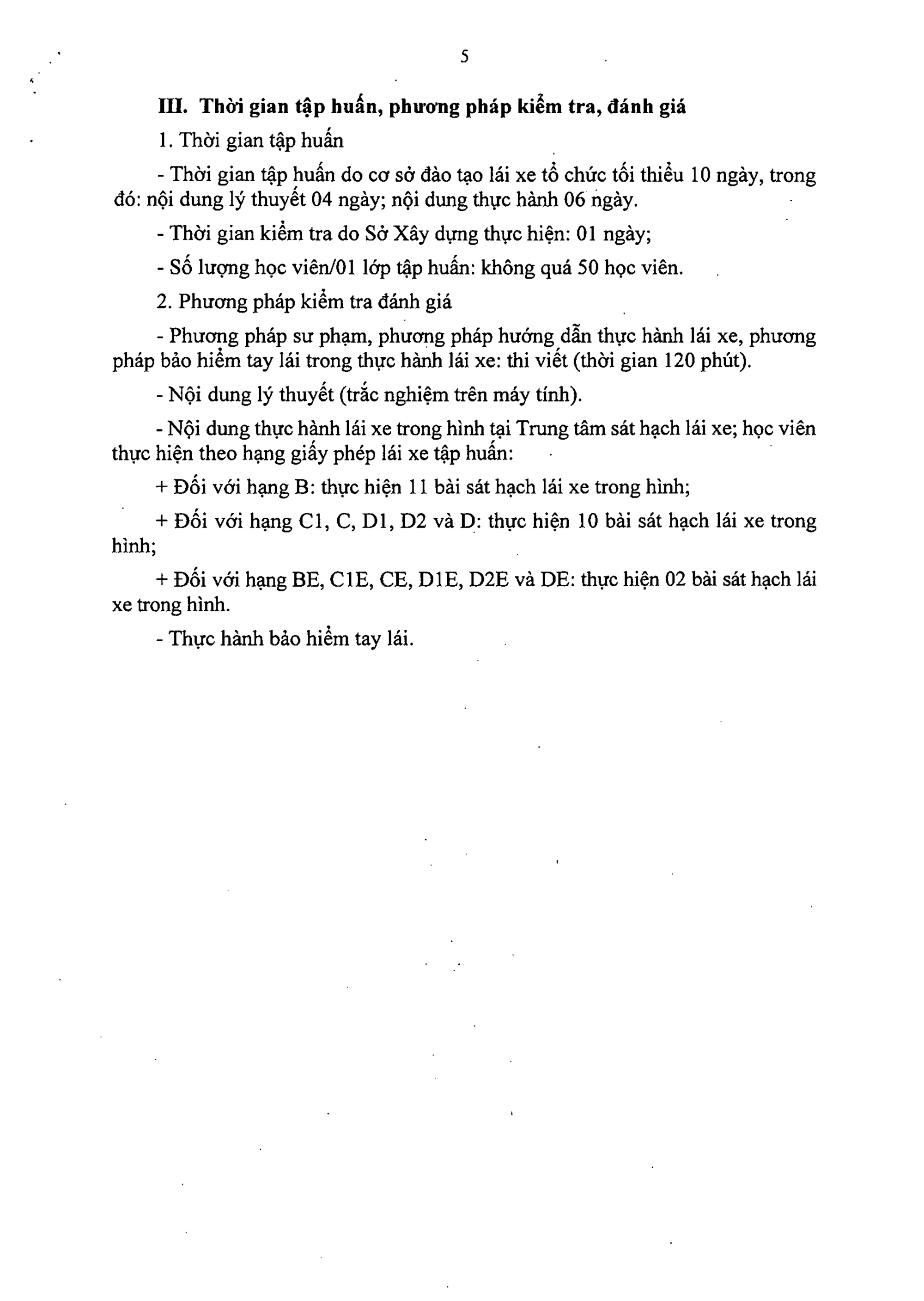 b) Kiểm tra, đánh giá cấp giấy chứng nhận giáo viên dạy thực hành lái xe