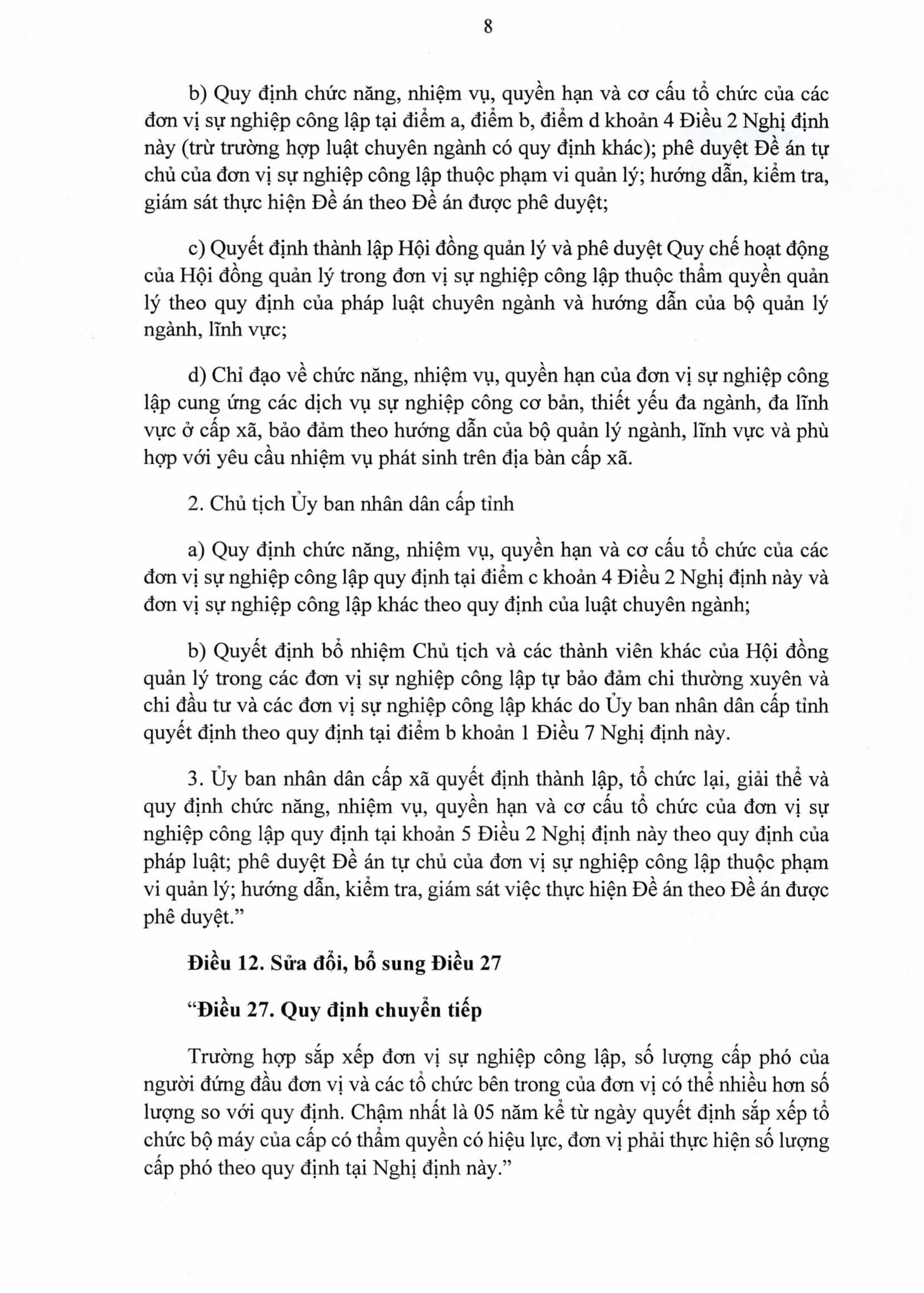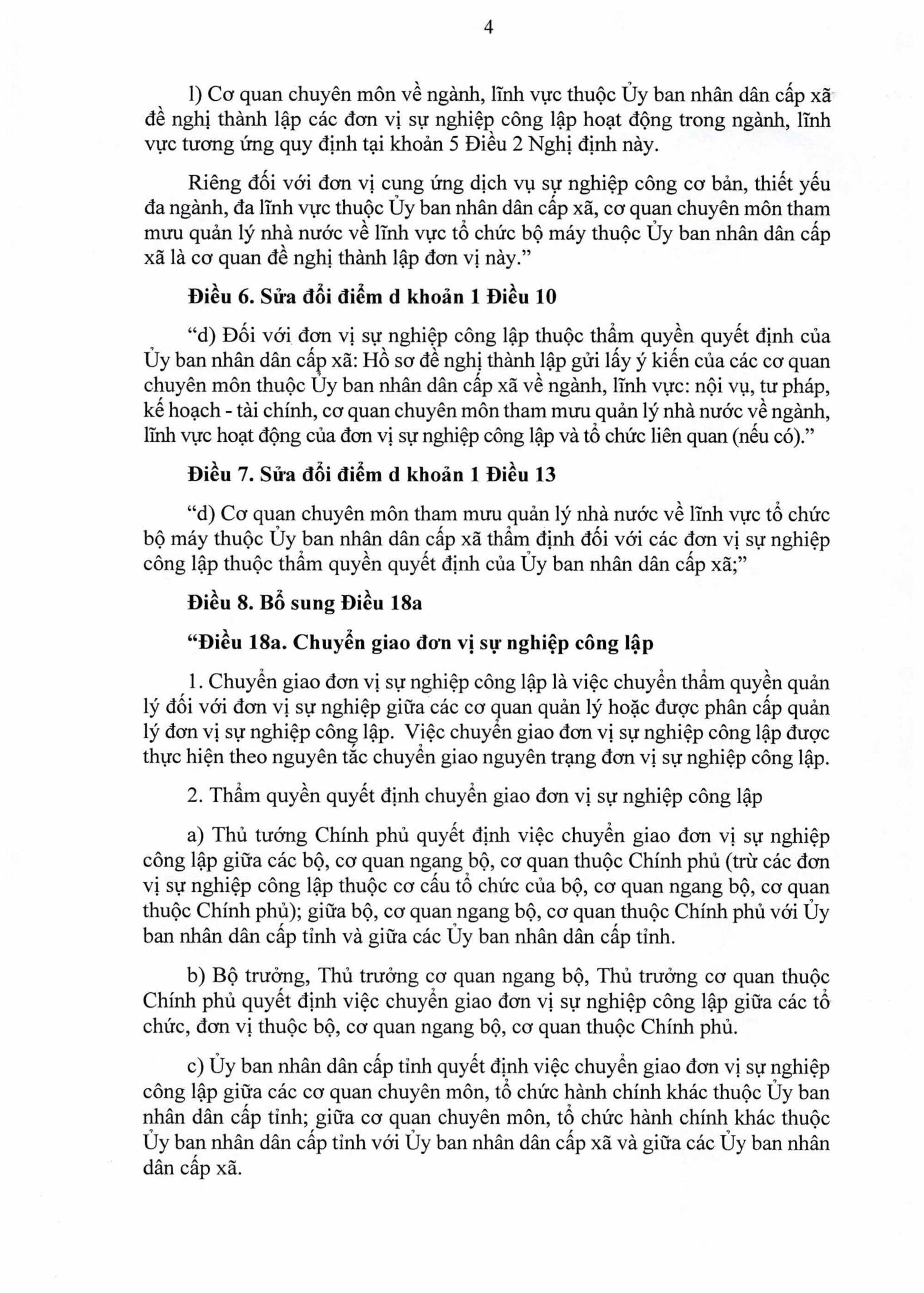 Nghị định quy định cụ thể thẩm quyền quyết định chuyển giao đơn vị sự nghiệp công lập: