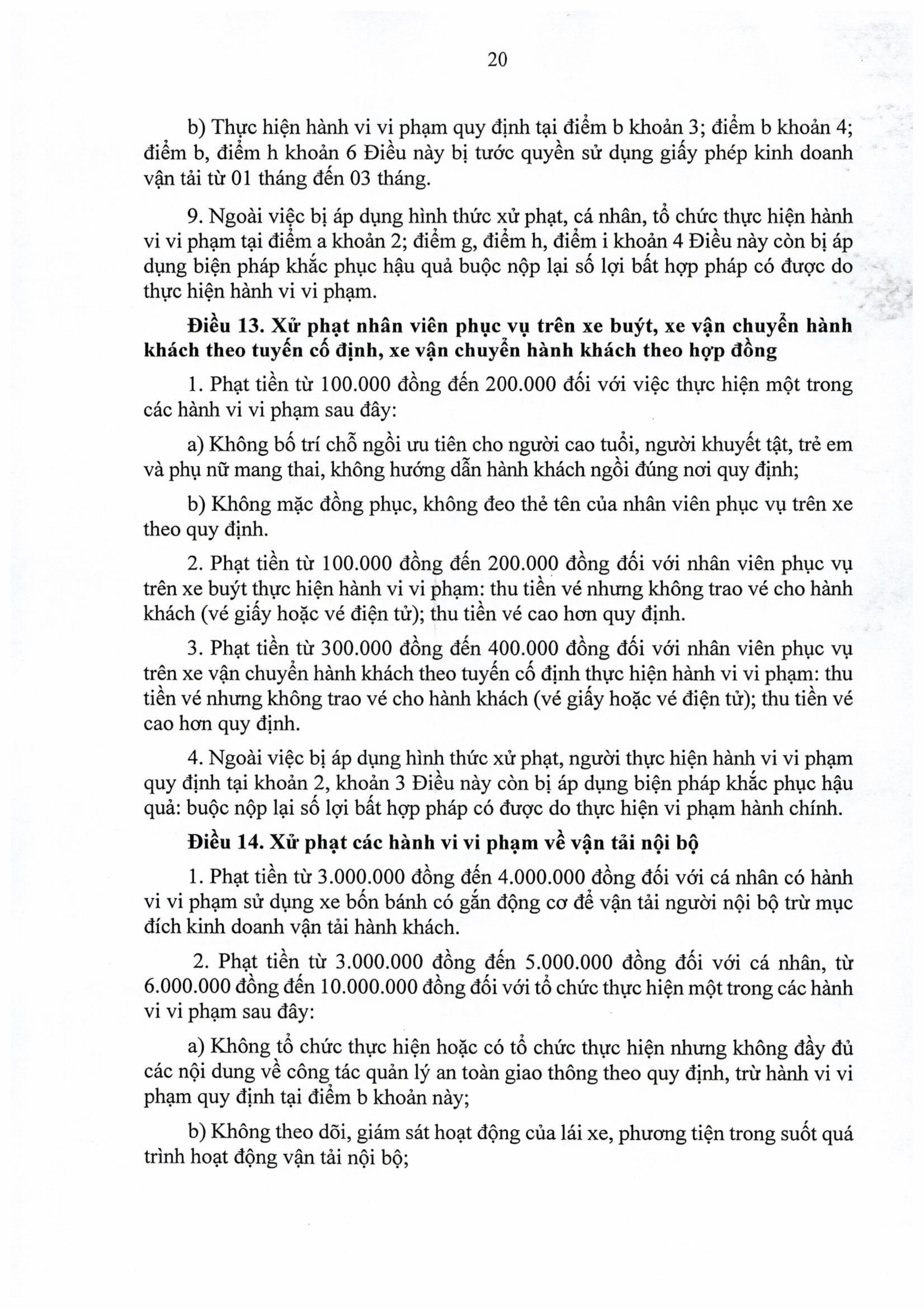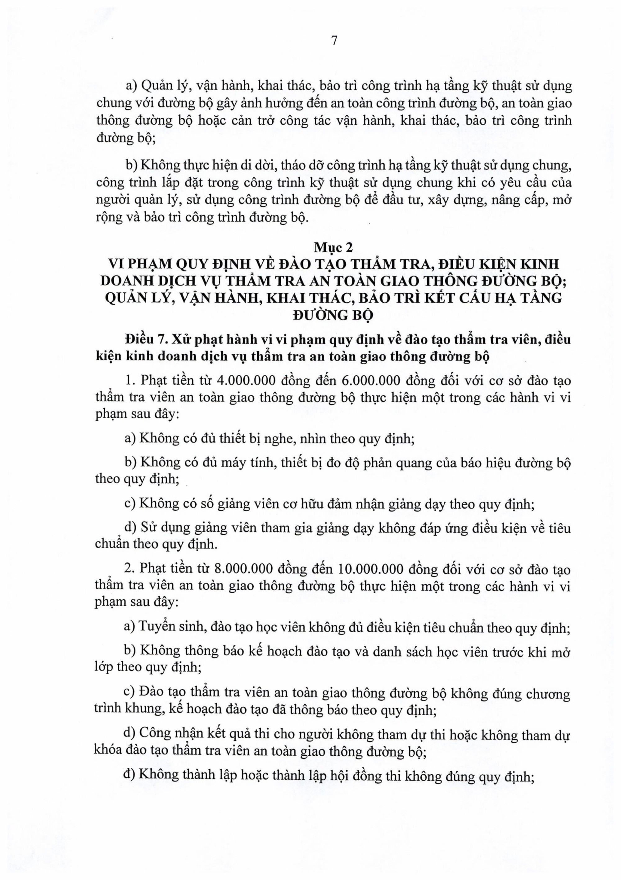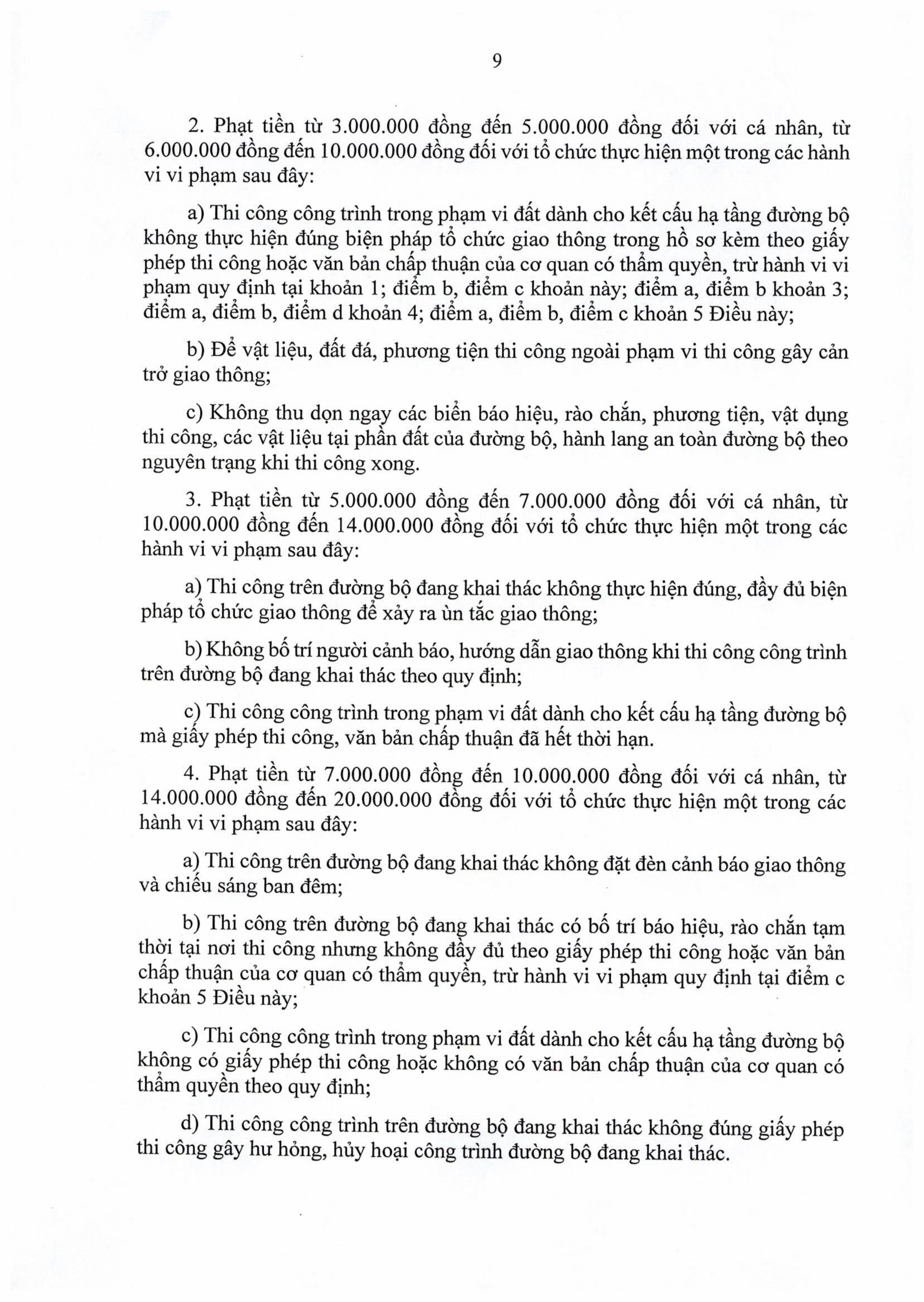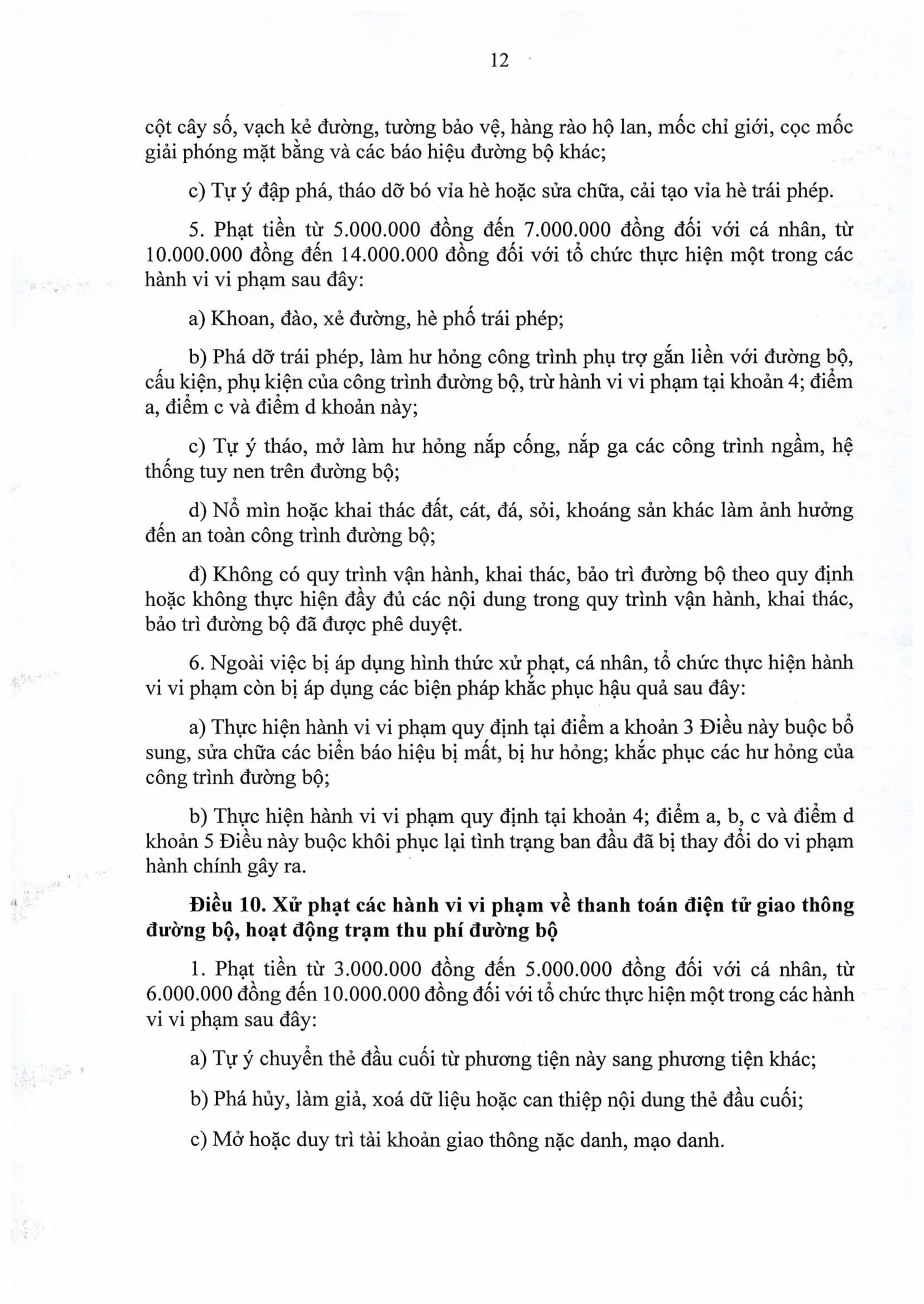 Nghị định cũng quy định rõ đối tượng bị xử phạt; thẩm quyền xử phạt, mực phạt tiền cụ thể theo từng chức danh; thẩm quyền lập biên bản đối với vi phạm hành chính; việc thi hành các hình thức xử phạt vi phạm hành chính, các biện pháp khắc phục hậu quả trong hoạt động đường bộ thuộc lĩnh vực giao thông đường bộ.