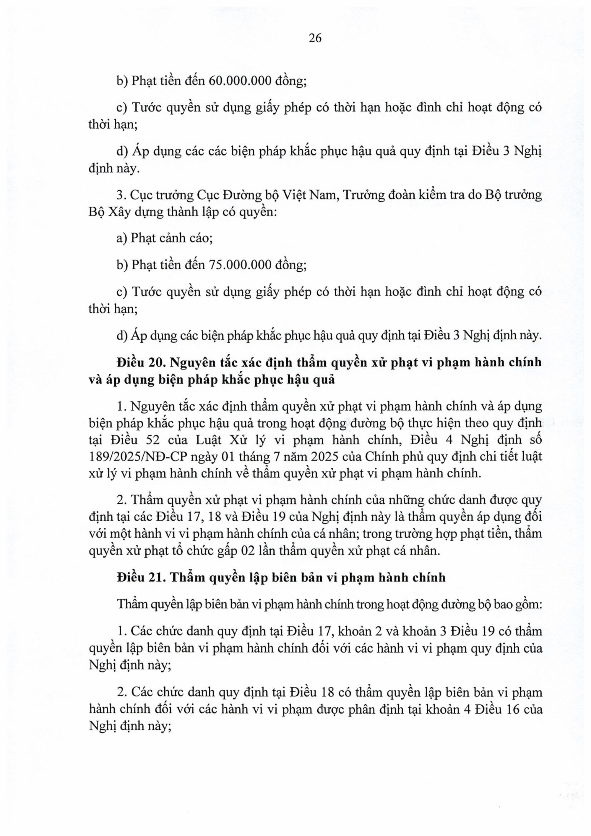 Nghị định số 336/2025/NĐ-CP ngày 22/12/2025 quy định xử phạt vi phạm hành chính trong hoạt động đường bộ gồm 4 chương, 28 Điều, có hiệu lực từ ngày 1/3/2026.