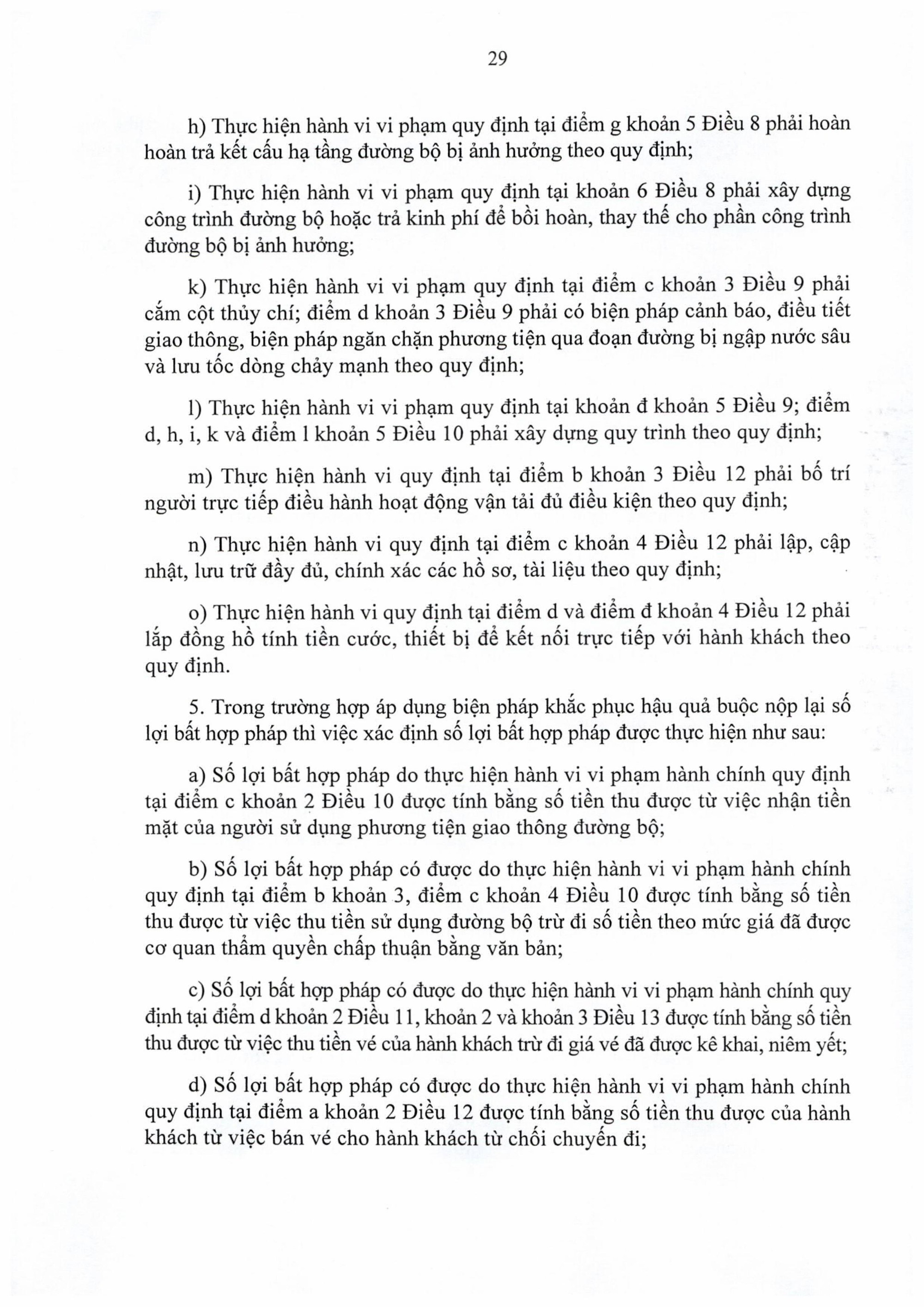 Trong đó, Chương I (từ Điều 1 đến Điều 4), quy định chung về phạm vi điều chỉnh; đối tượng bị xử phạt; mức phạt tiền, hình thức xử phạt vi phạm hành chính, biện pháp khắc phục hậu quả và nguyên tắc áp dụng; hành vi vi phạm hành chính đã kết thúc, hành vi vi phạm hành chính đang thực hiện.