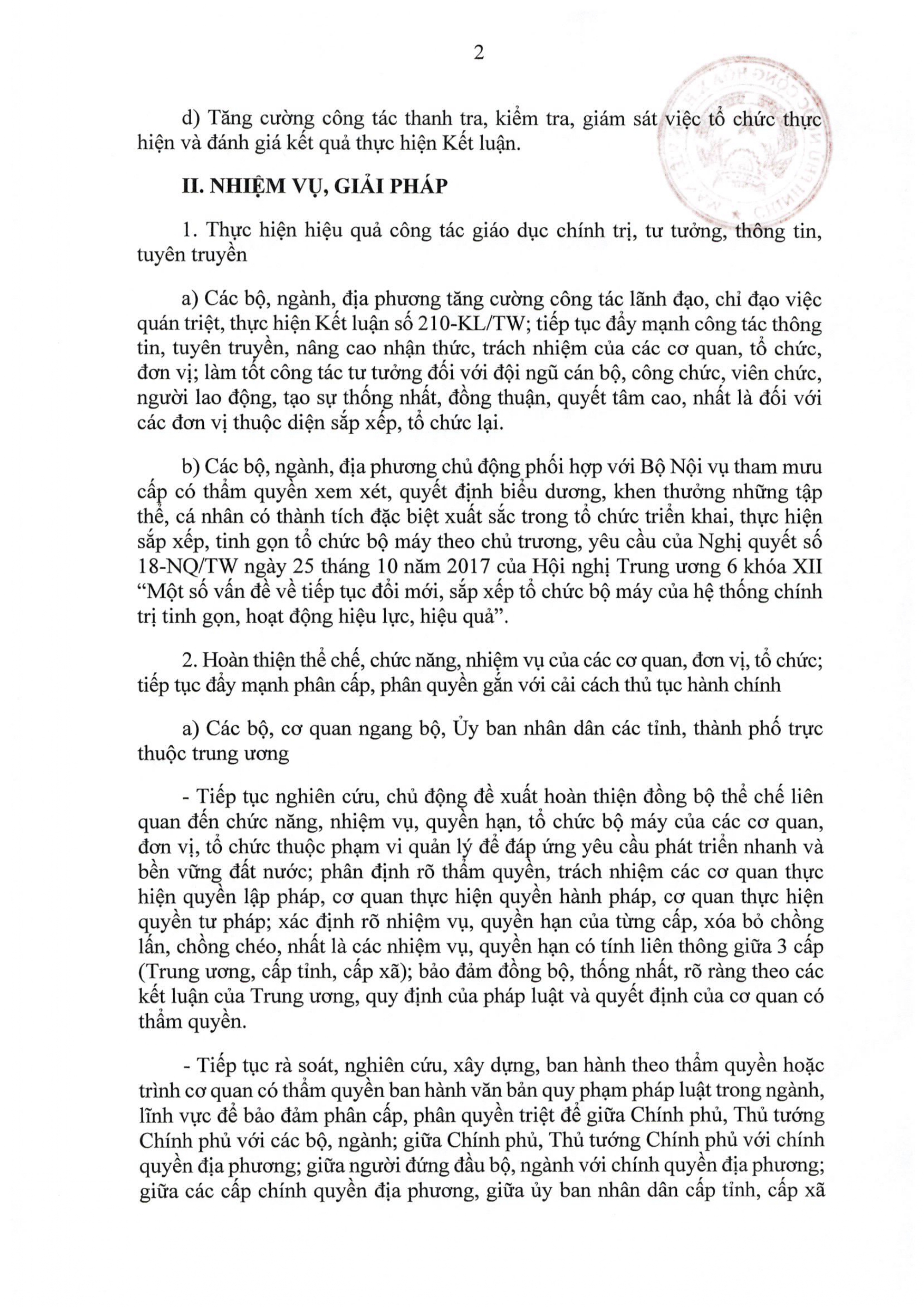 TOÀN VĂN: Nghị quyết số 105/NQ-CP ban hành Chương trình hành động thực hiện Kết luận số 210-KL/TW về tiếp tục xây dựng, hoàn thiện tổ chức bộ máy của hệ thống chính trị